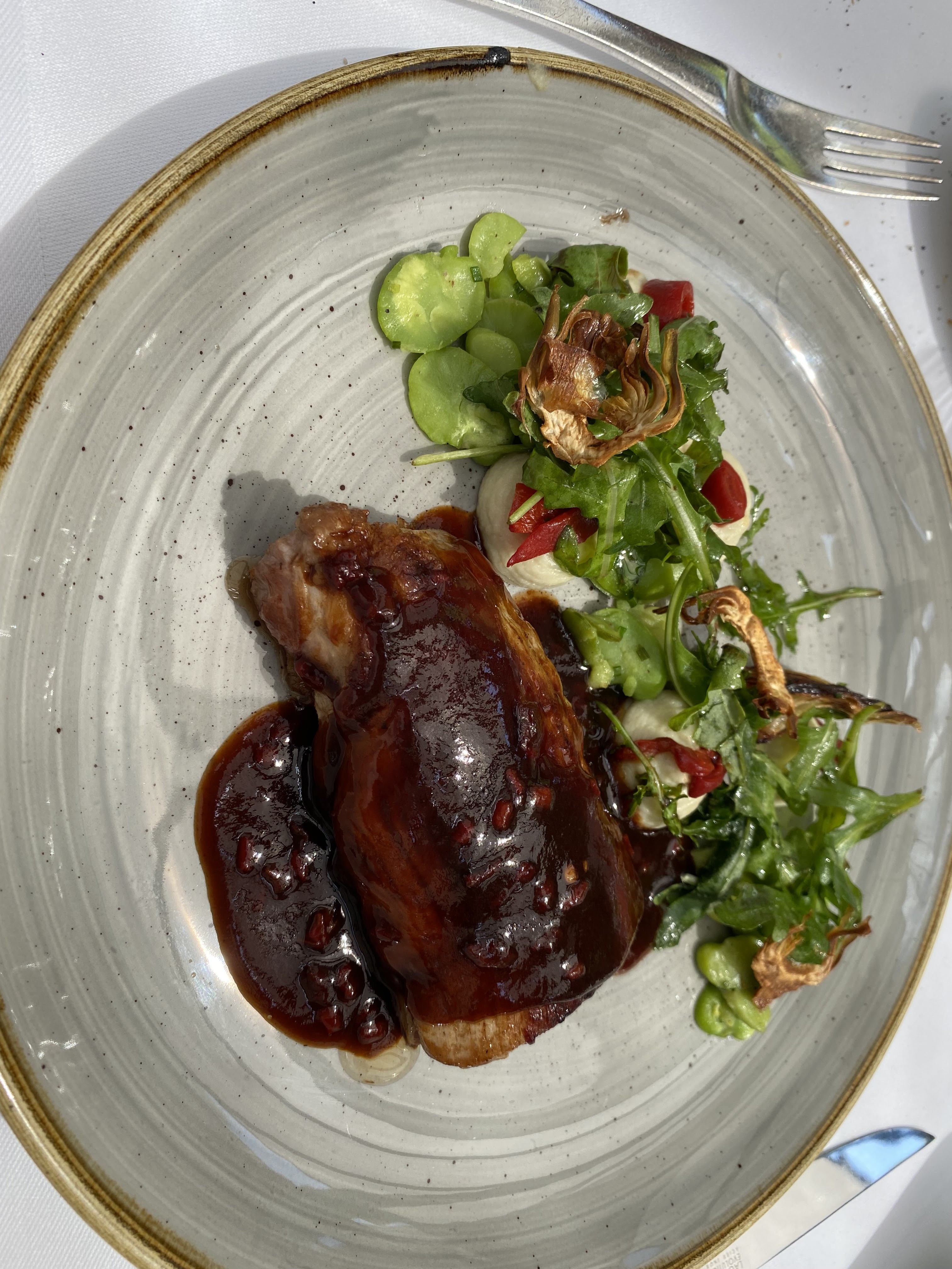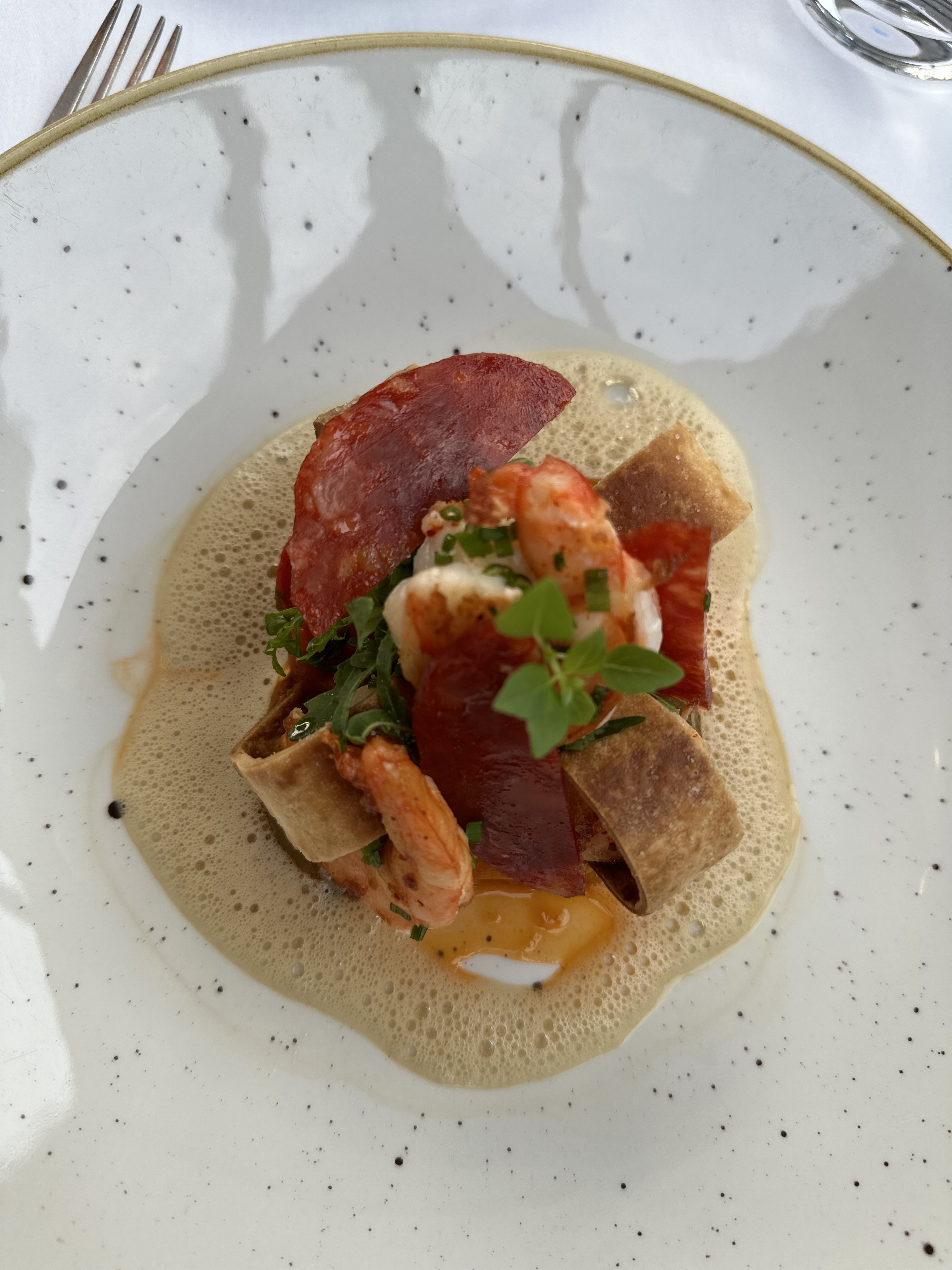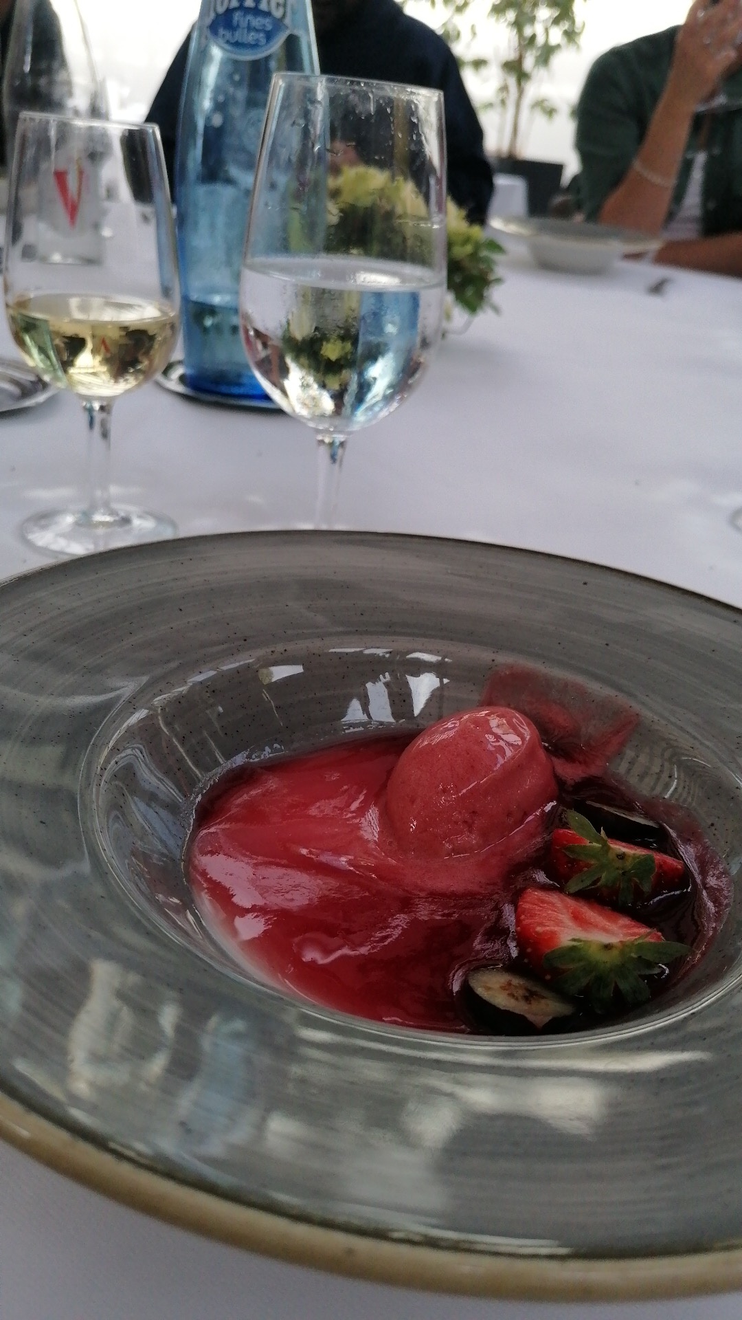 L’entrée (dorade en ceviche était à tomber idem pour le foie grand poêlé) en revanche poisson en légère sur cuisson idem pour la viande demandée saignante. Le dessert était beaucoup beaucoup trop sucré (fraise façon bavlova idem pour le dessert fruits rouge) ça casse tout le palais du repas, dommage Le cadre est idyllique (peut être découvrir la terrasse le soir quand il n’y a plus de soleil cela la rendrait moins bruyante)