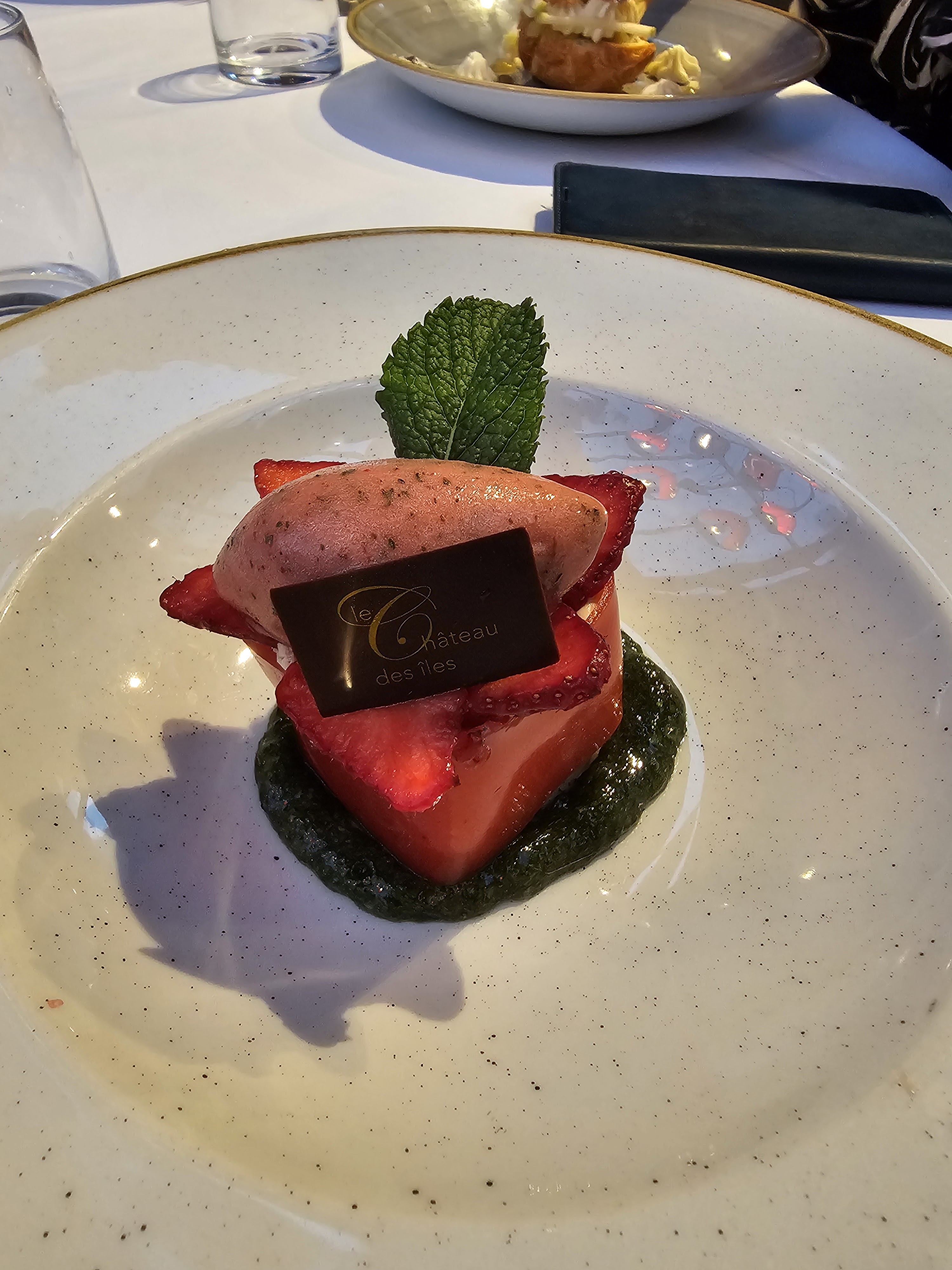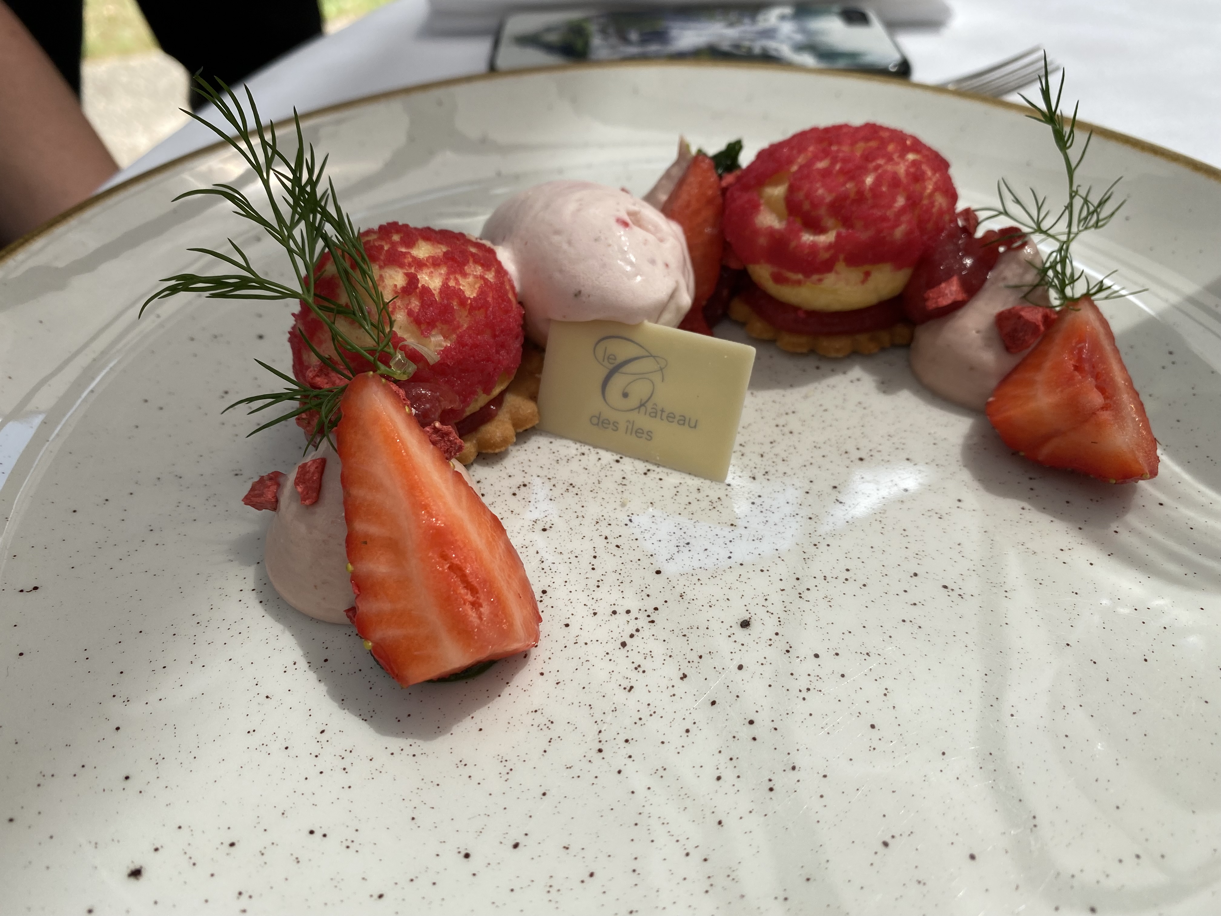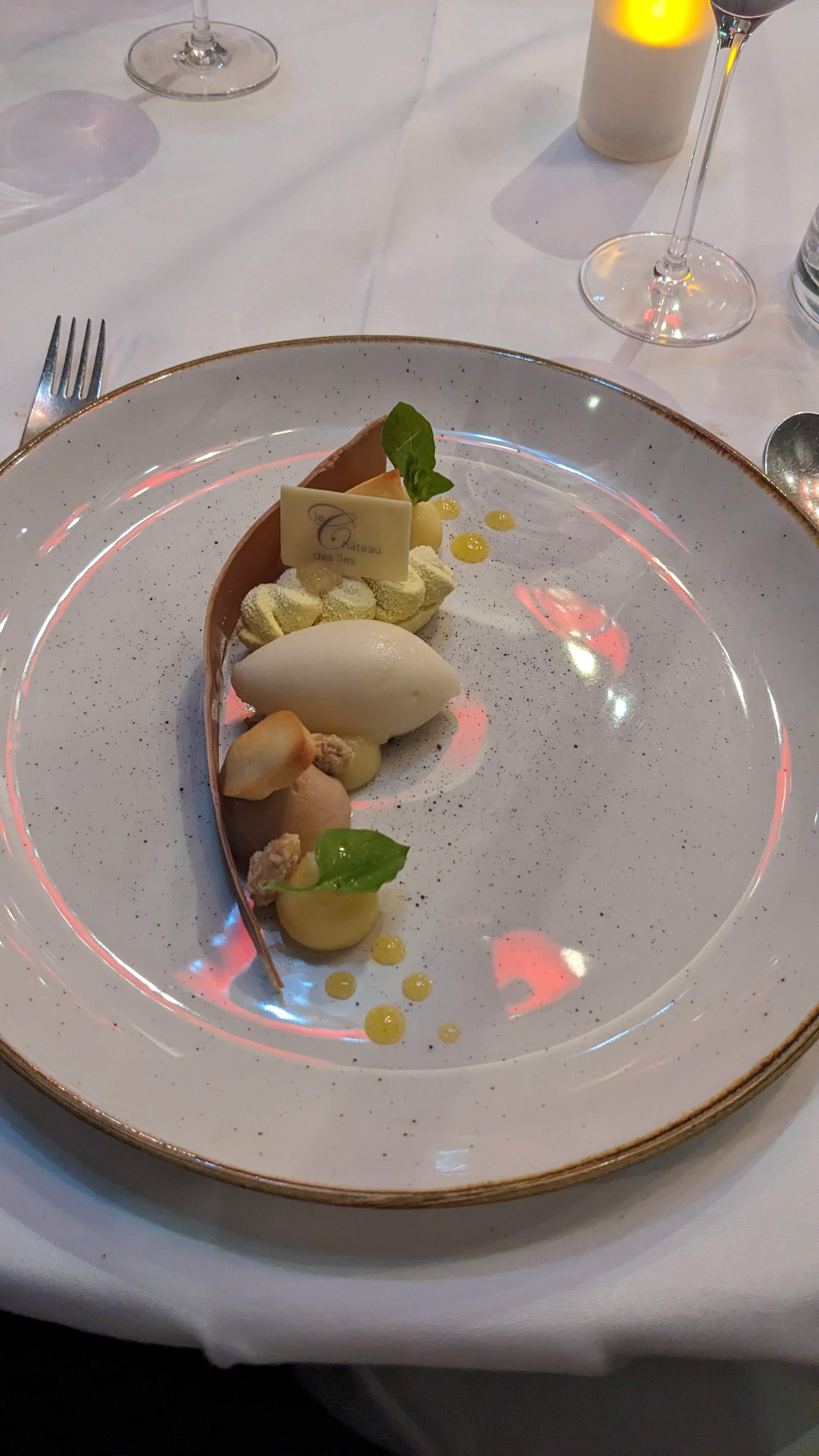 Très décevant… Nous sommes venus uniquement pour déjeuner et nous n’avons pas eu l’impression d’être dans un restaurant gastronomique tant par les plats servis que le service. Nous avons pris le menu en 4 temps. Commencons par les plats : Visuellement ca passe, gustativement ca casse ! - Symbiose des ingrédients ratée pour l’entrée froide, - Les ravioles étaient ok mais sans plus, - Non respect de la cuisson de la viande bien trop cuite et légumes fades, - Dessert composé d’éléments par-ci par-là qui ne peuvent que être dégustés qu’à tour de rôle et dont les goûts, hormis la qualité de l’ingrédient, dépendent du coulis/chantilly à la pistache qui à mon goût manquait de puissance. La glace était cependant très bonne. Pourquoi ne pas avoir mélangé ces ingrédients sous forme de pavlova glacée ? Le service était passable. Les serveurs ont été un peu abrupts tout au long du déjeuner. Le cadre quant à lui est plutôt sympatique, la véranda est agréable quand il fait beau. En somme, le Château des Iles n’a pas réussi à se distinguer d’un restaurant contemporain français, sauf par le prix. Peut-être qu’il excelle en terme d’hotellerie…