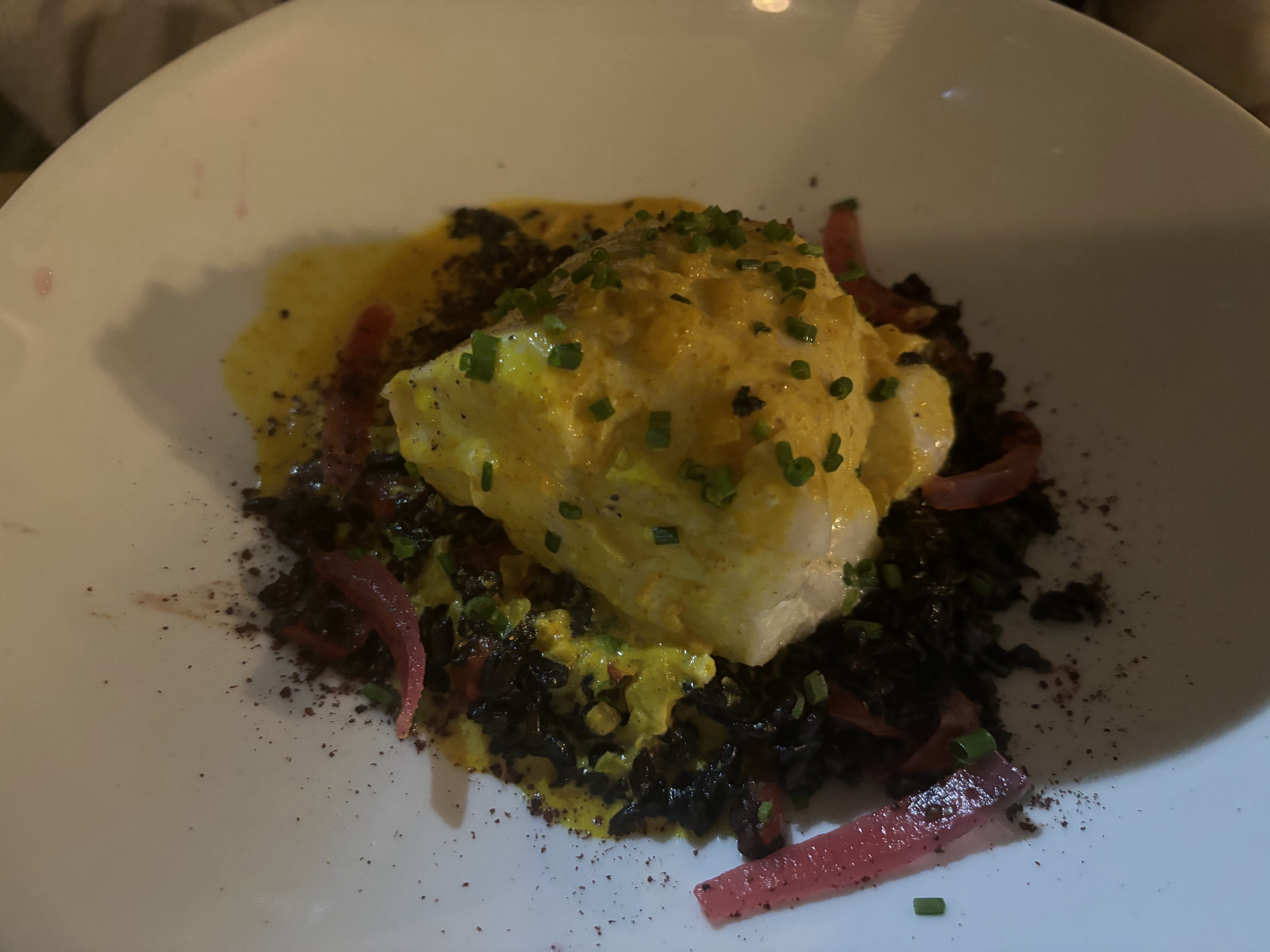 Cuisine Agréable, éclairage de la salle tout en finesse,,baba au rhum sans rhum decevant, un peu Cher quand même.
