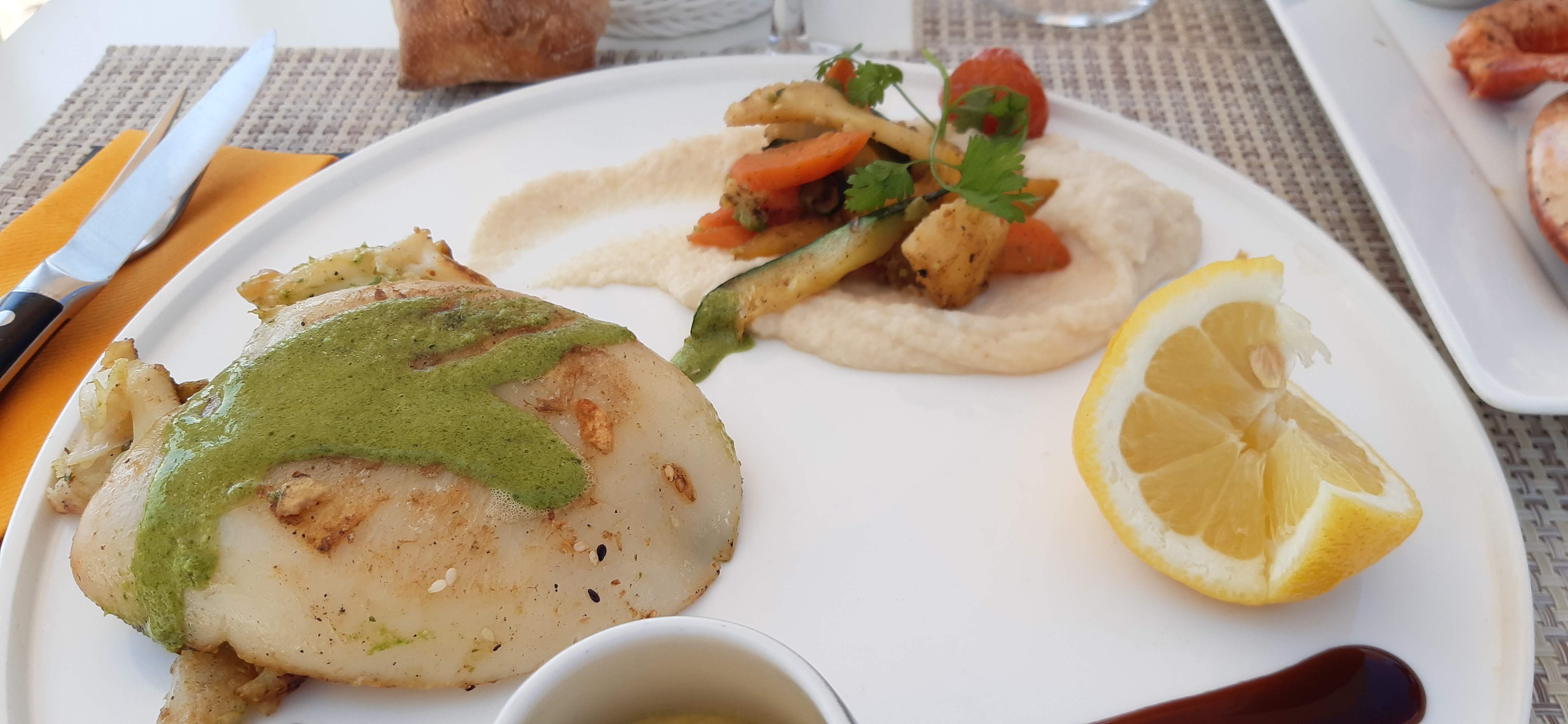 Très beau front de mer mais cuisine très moyenne et prix élevés. Suggestion d entrée à +30 e Dessert largement préparé d avance résultat des choux tout ramolli Spaghettis aux coques ou il reste encore du sable Ceviche de dorade très moyen Bref cuisine à revoir et bcp d autres restaurants bien meilleurs dans le coin.