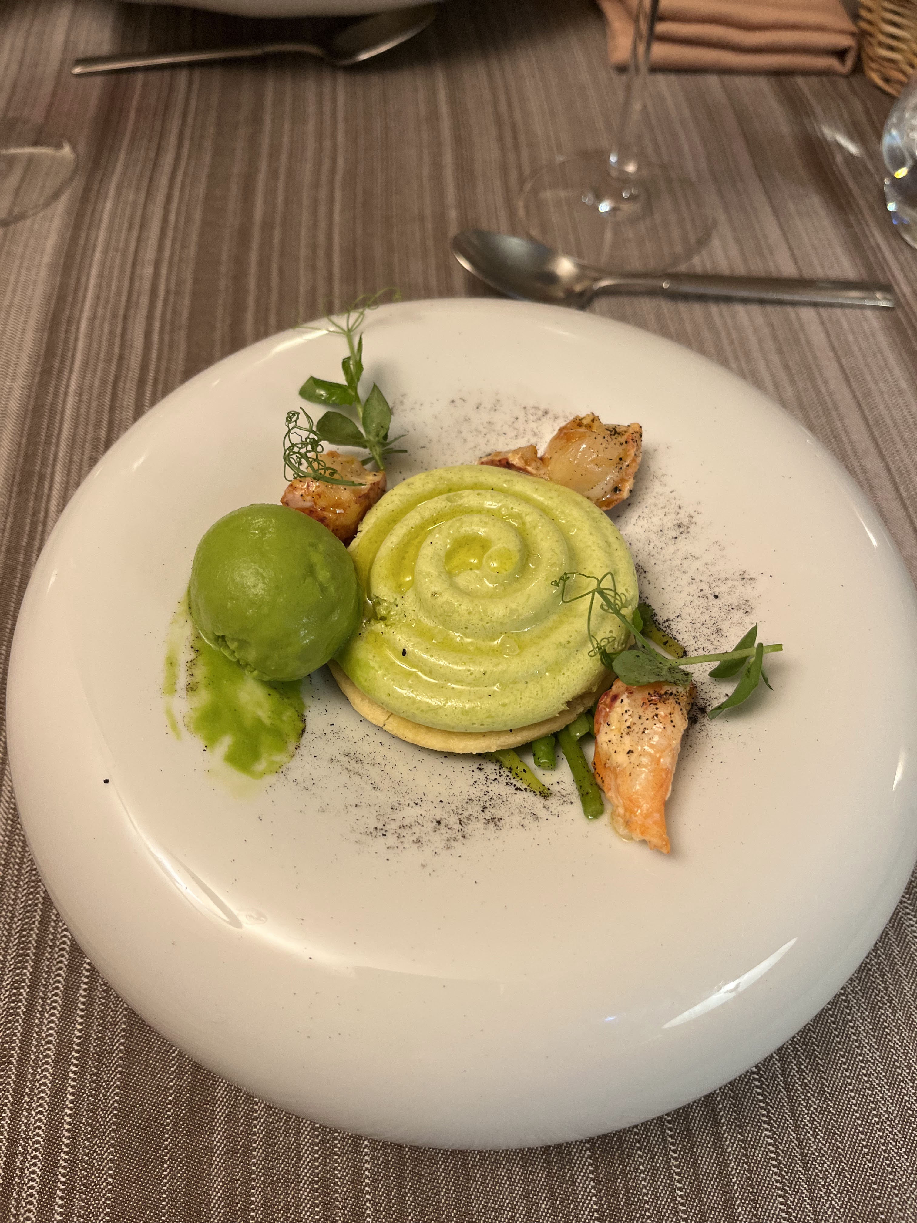 Un pur bonheur de fraîcheur non seulement dans l assiette mais aussi au niveau des conseils de la part du service . Un grand raffinement dans les plats élaborés avec les produits locaux et de saison . Merci pour ce moment .