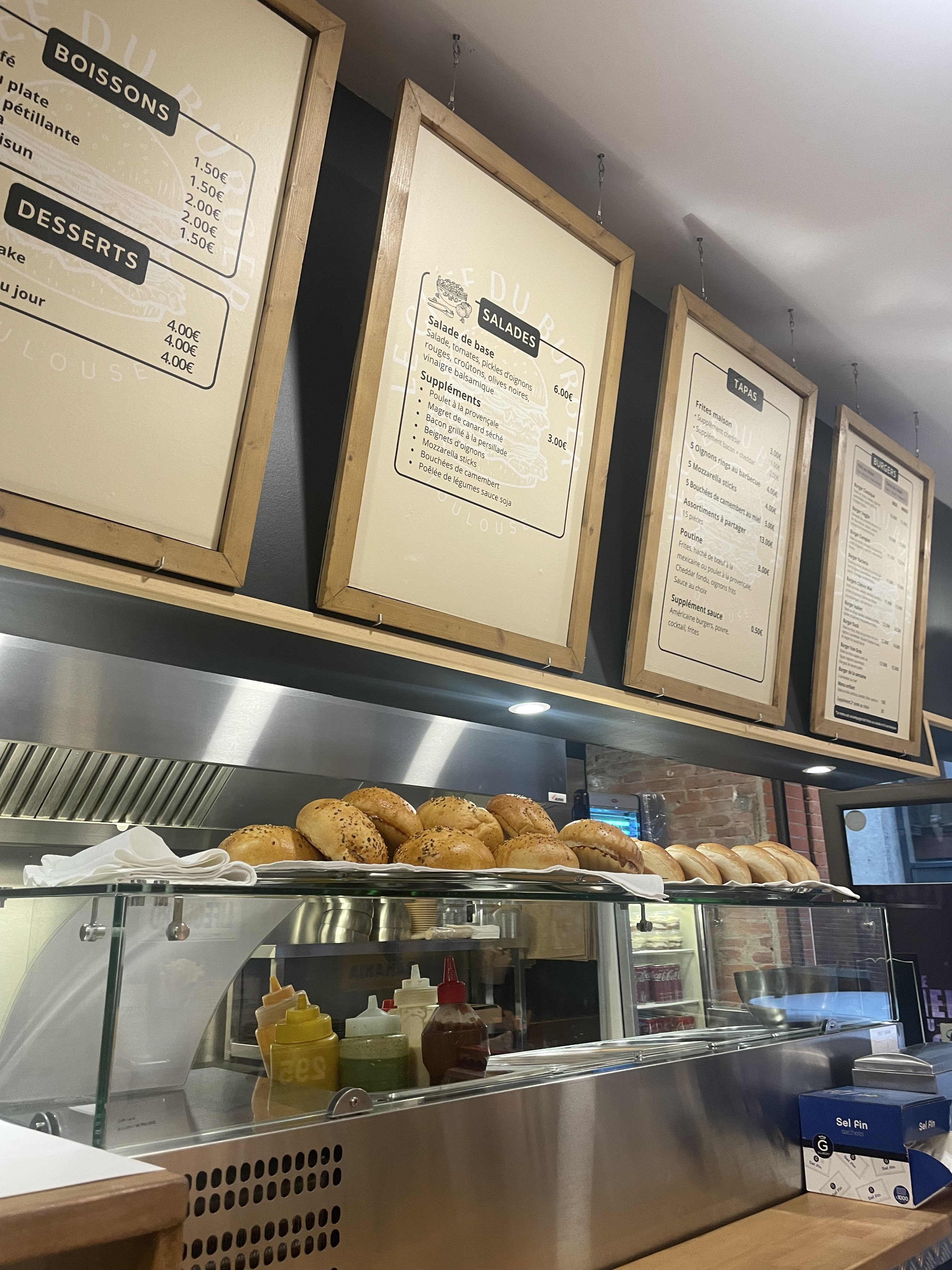 Désolé pour cette note plutôt mauvaise Mais non, ce restaurant burger est plus un boui boui qu'autre chose. Il saura satisfaire étudiants et fêtards. Mais niveau cuisine, qualité des produits et carte (Menus) il y a mieux.. Ça se passe bien messieurs dames? Difficile de dire à ce cher monsieur que non. Une salade avec une sauce vinaigrette digne d'une aire d'autoroute. Le truc vite fait. Un pain pas terrible. Et un steak.. pas terrible non plus. Pour vous essuyer, vous vous contenterez de mouchoirs en papier. Ceux que vous achetez en supermarché dans leur boîte en carton. Pas de serviettes. Les burgers sont quand mêmes bien faits. Les produits se marient bien entre eux. Les frites sont bonnes. Aspergées de sauce barbecue... Donc voilà, faites-vous votre propre opinion. Mais pour moi, ils ne me reverront plus.