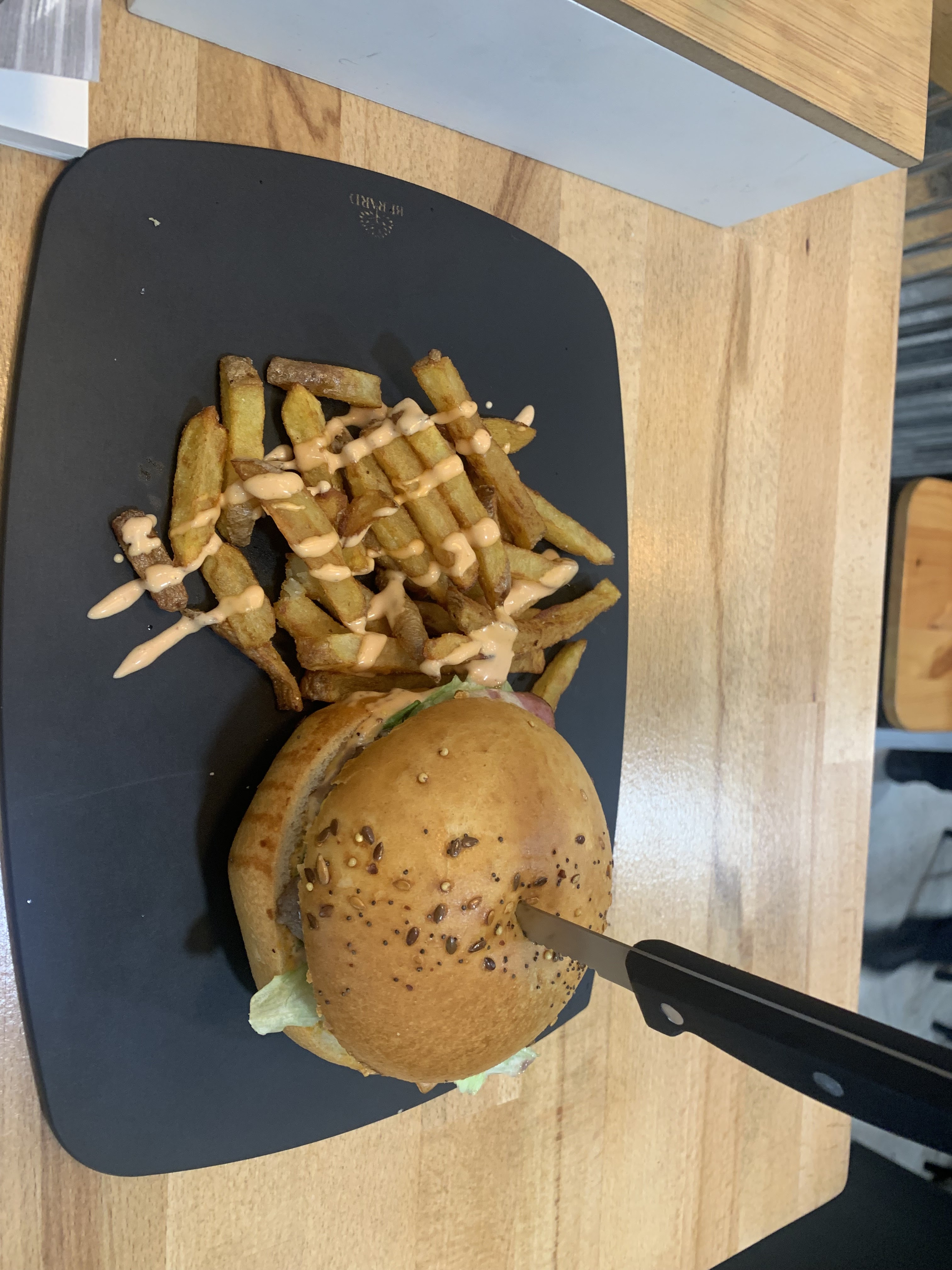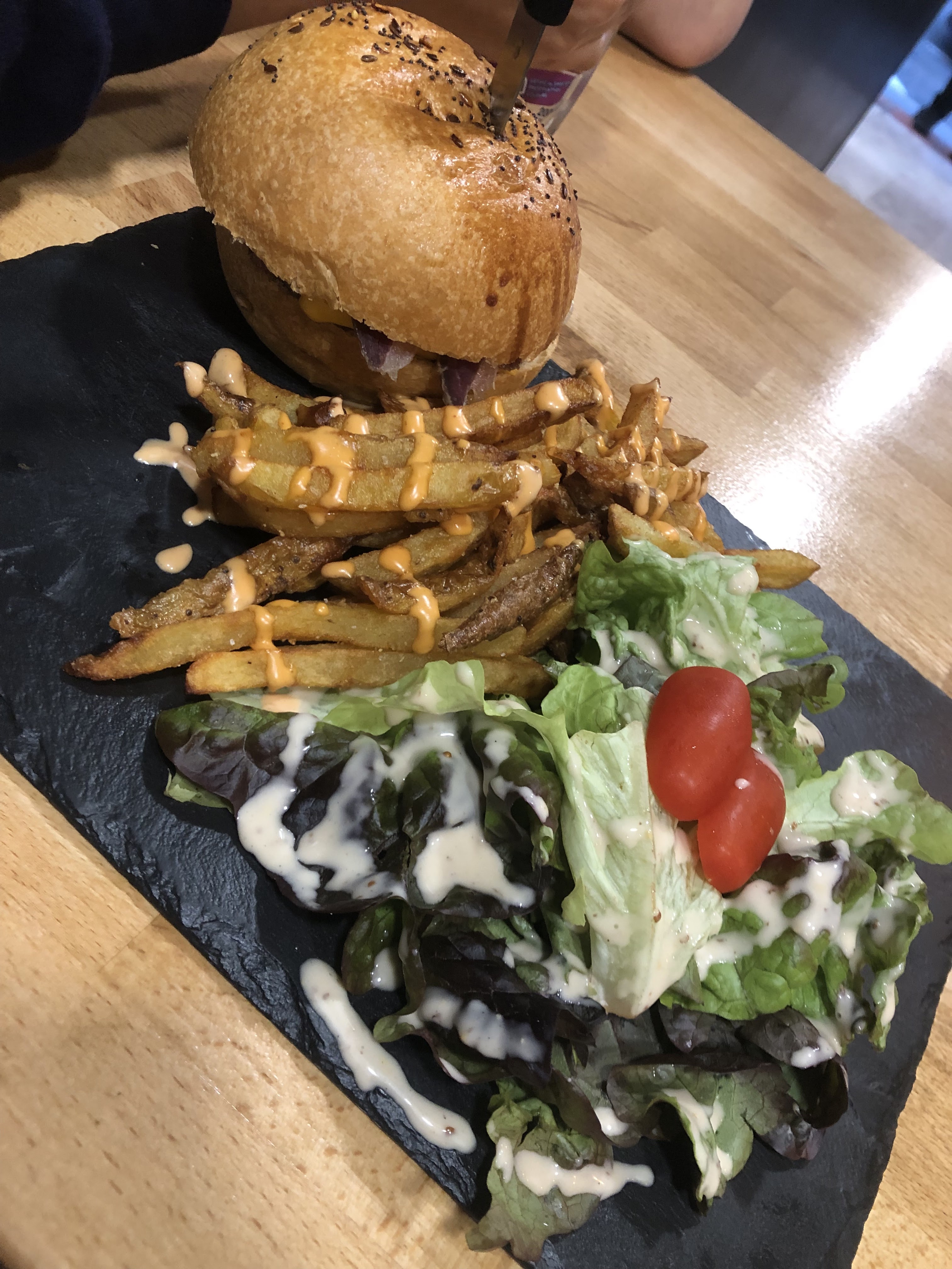 Super découverte je passais par là et pas déçu. Bon burger, viande impec le pain tient bien le tout, la sauce est bonne et bien reparti. Frite maison et petit supplément salade pour se sentir healthy.