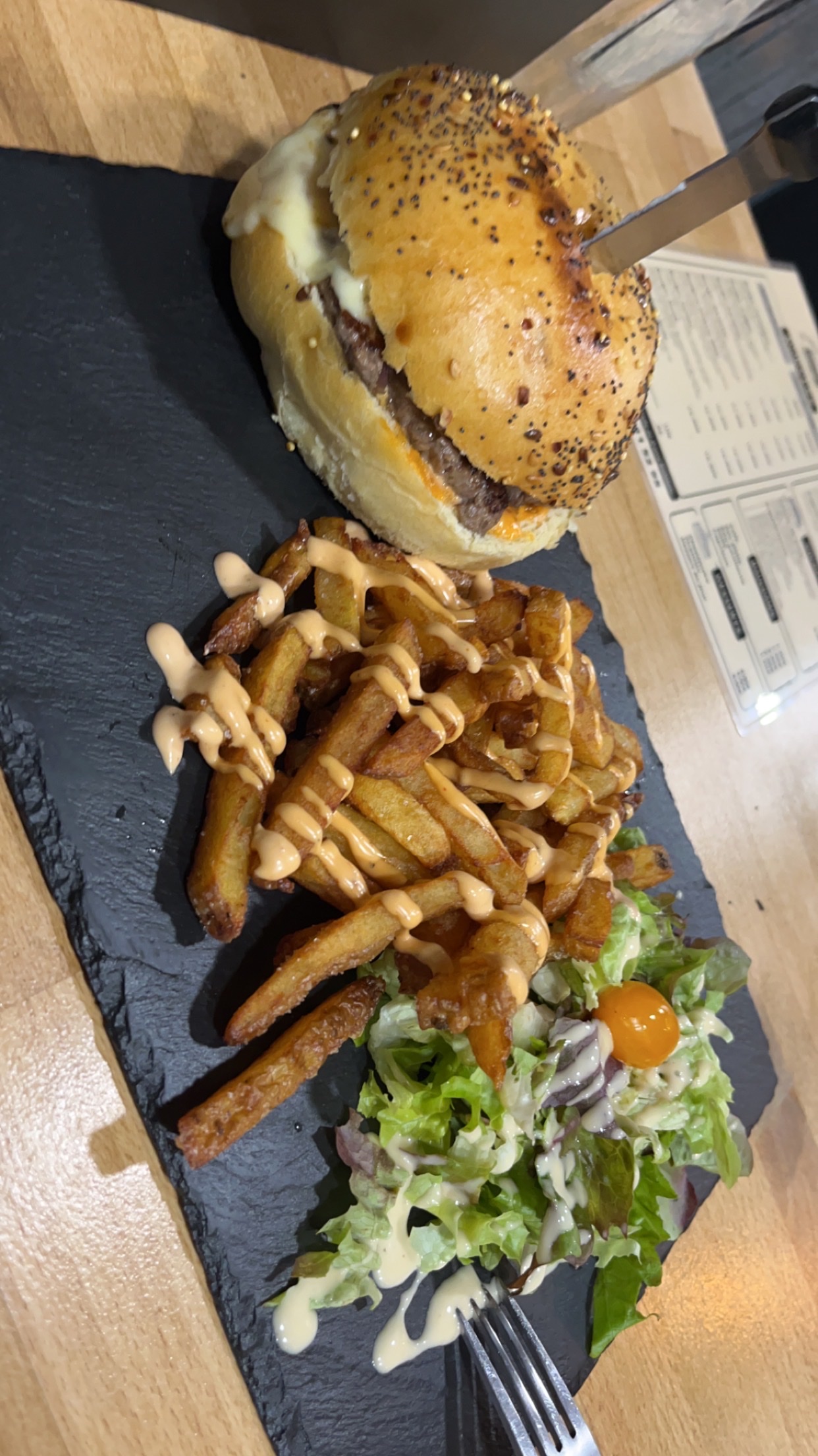 Tout était parfait !! Nous nous sommes régalés avec le menu burger raclette ! Je recommande 🙂