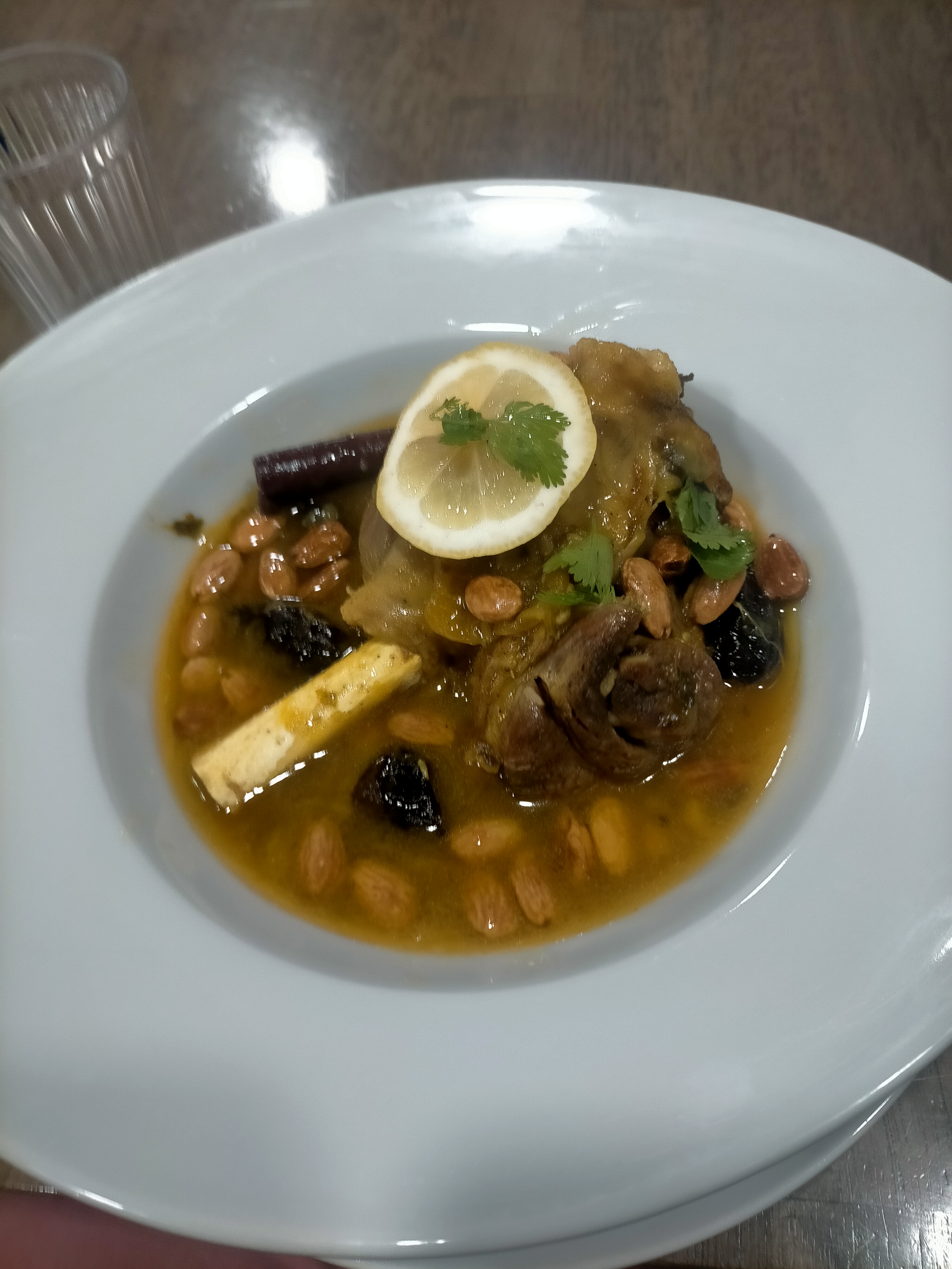 L'accueil est très sympathique. J' ai testé le tajine d'agneau aux pruneaux et amandes, servis avec du pain fait maison pour ne rien rater de la sauce, il est vraiment délicieux.