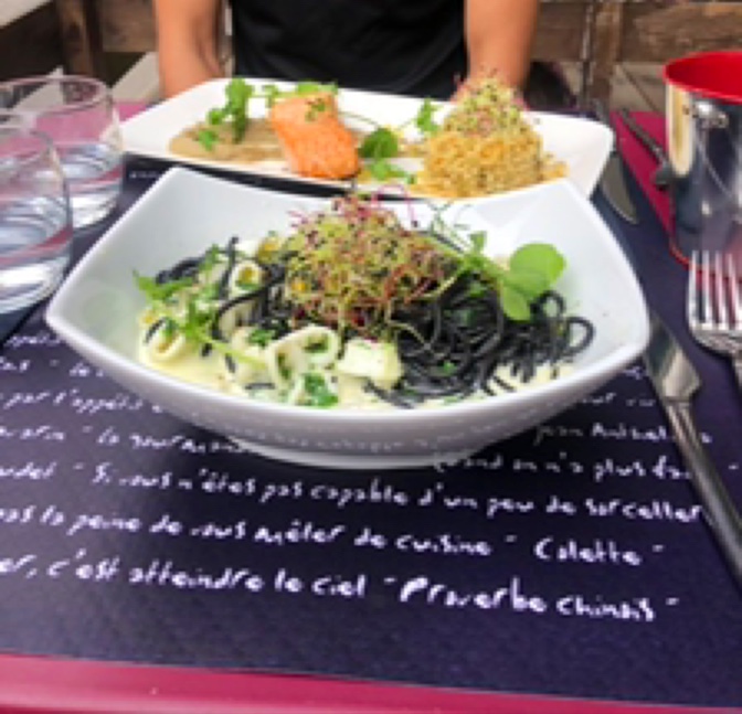 On a failli en partir à cause du refus (inexpliqué et inexplicable !) du restaurateur de servir la carte du restaurant en terrasse. Ca aurait été dommage car en dépit de notre grande déception de ne pas pouvoir déjeuner au soleil, nous avons trouvé les plats bons, surprenants et originaux et le service pro. Gros plus pour l'amabilité générale et le sourire de la serveuse, petit bémol pour les sets de table pas très propres et le pain coupé trop longtemps à l'avance qui était sec sur les côtés.