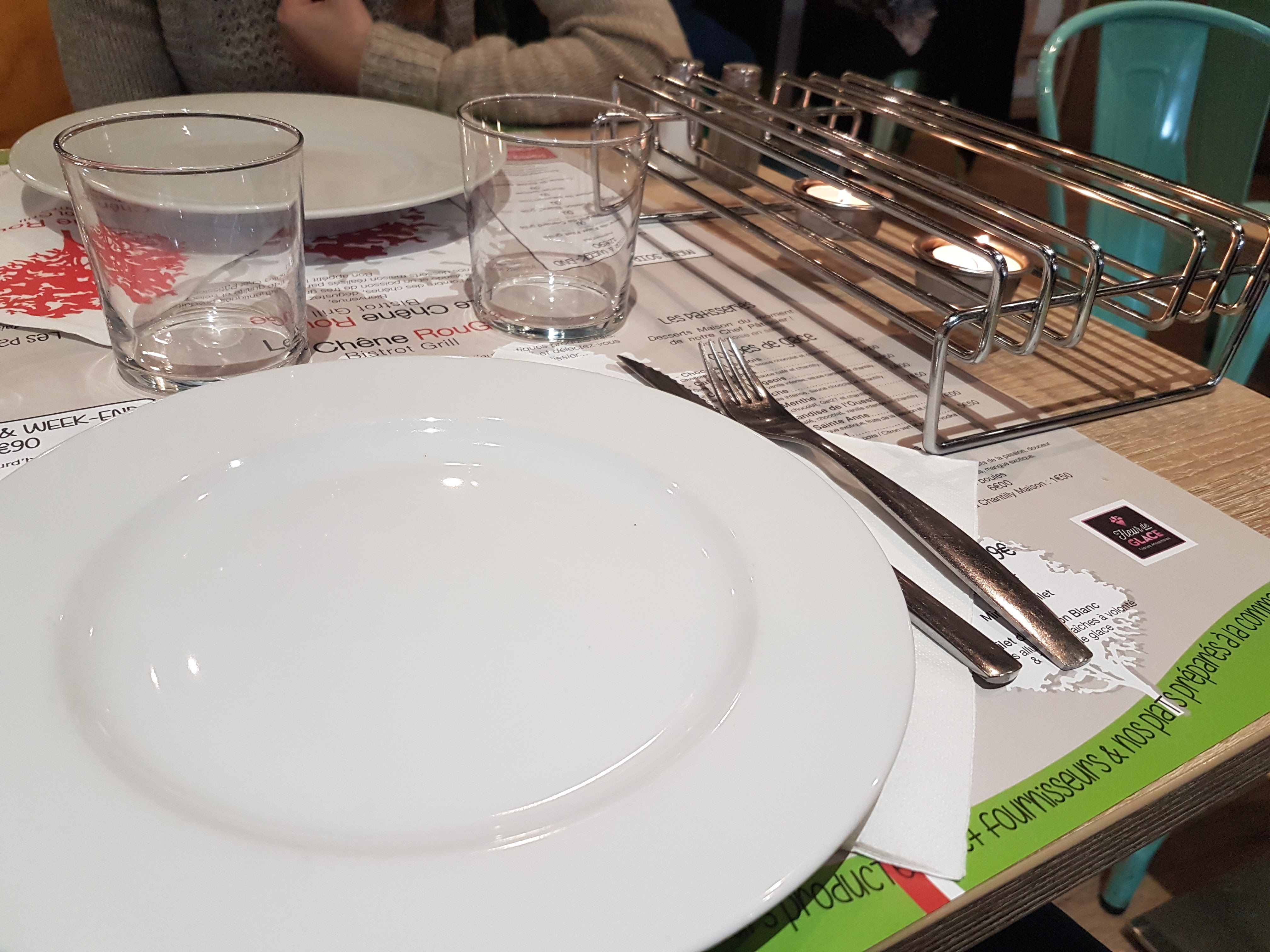 Dommage qu’il n’y ait pas un grand choix d’accompagnement sur la carte. On nous propose uniquement des frites, de manière illimitées, ainsi que de la salade verte. Elles sont Servies dans des sceaux en métal. La pièce de viande elle, est servie sur un plat déposé sur un chauffe plat. C’est original ! La viande et la sauce sont bonnes. (Mais le suppl. en sauce est payant.) Conclusion: C’est un p’tit restau convivial, un service original, petit bémol : le choix des plats et les frites trop petites. Et aussi pour avoir une viande cuite à point, il faut la demander bien cuite sinon elle arrivera saignante.