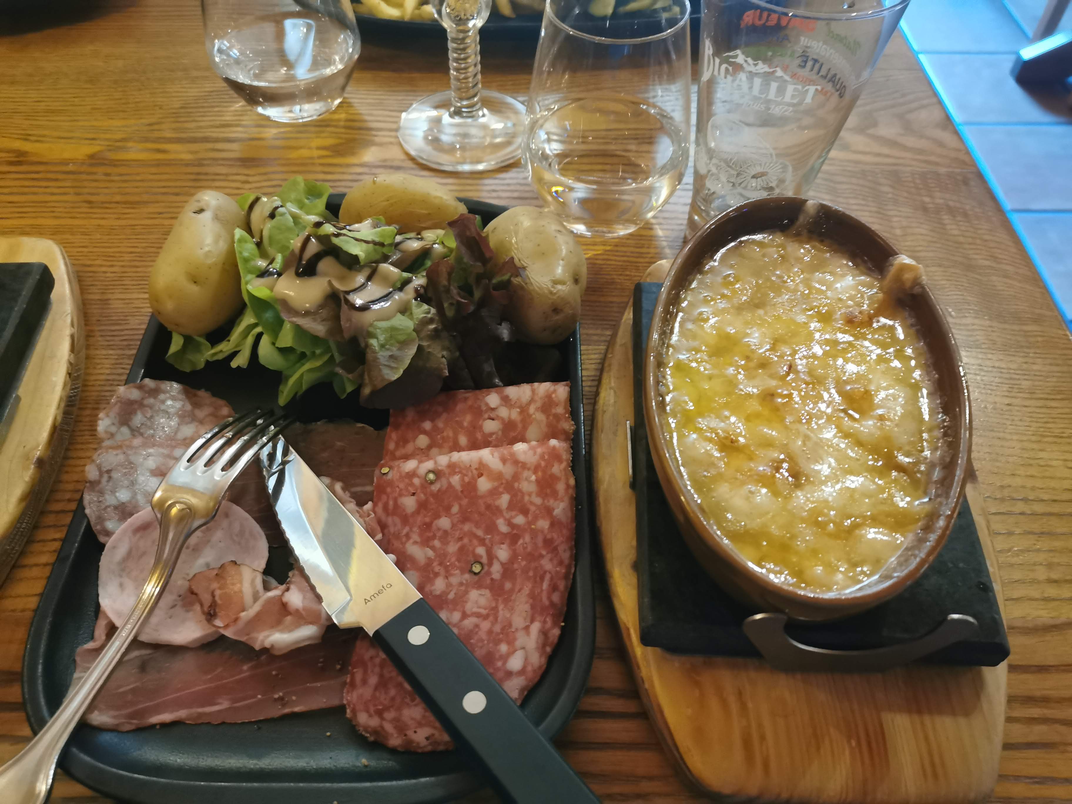 On a mangé une raclette, le fromage était bon mais la charcuterie était un peu légère (peu de produits et peu de variété, plutôt décevant). La serveuse était adorable et l'ambiance du resto sympa. Mon mari a pris une fondue savoyarde qu'il a apprécié.