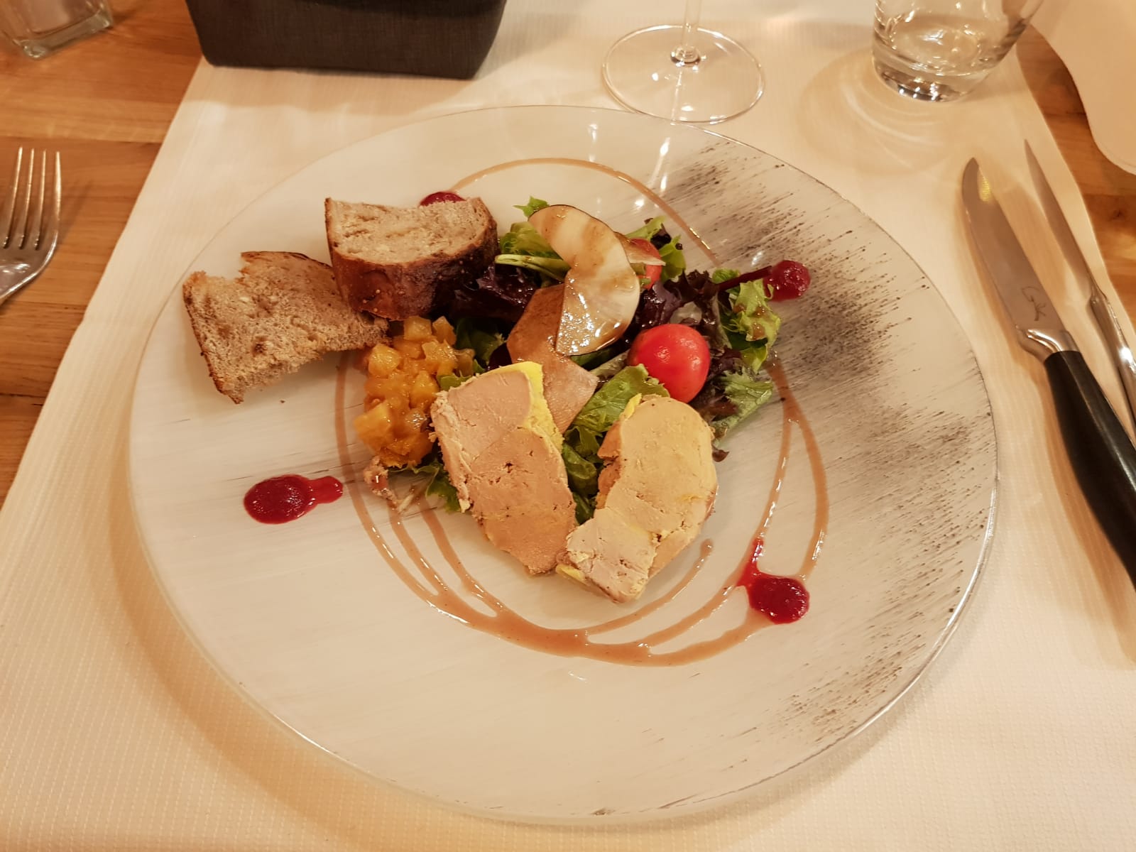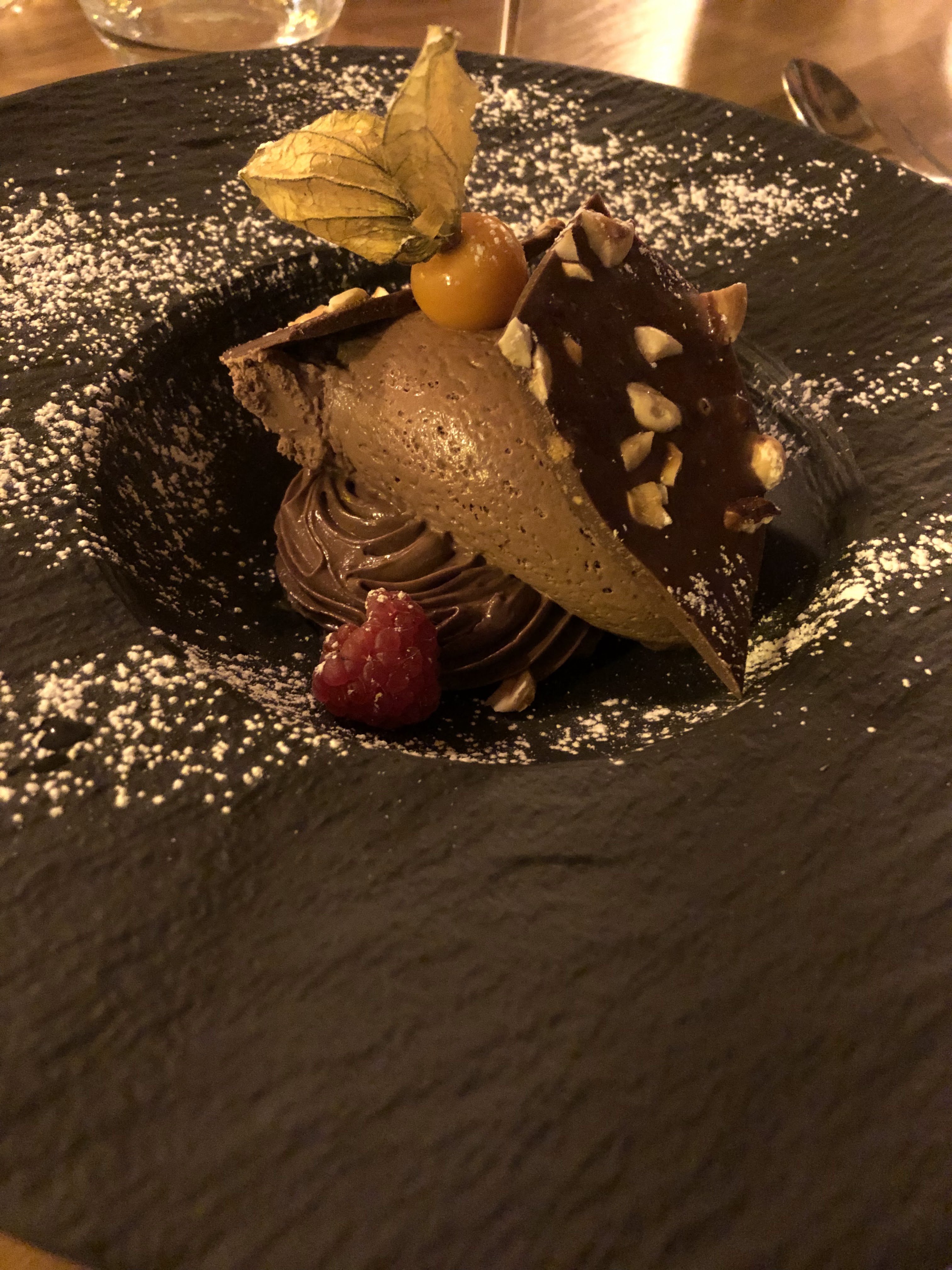 Franchement, le foie gras aux fruits rouges excellent, le tartare de bœuf alimenter au chocolat et aux amandes, viande d'origine finlandaise, le top du top le chef de rang super sympathique je recommande bravo