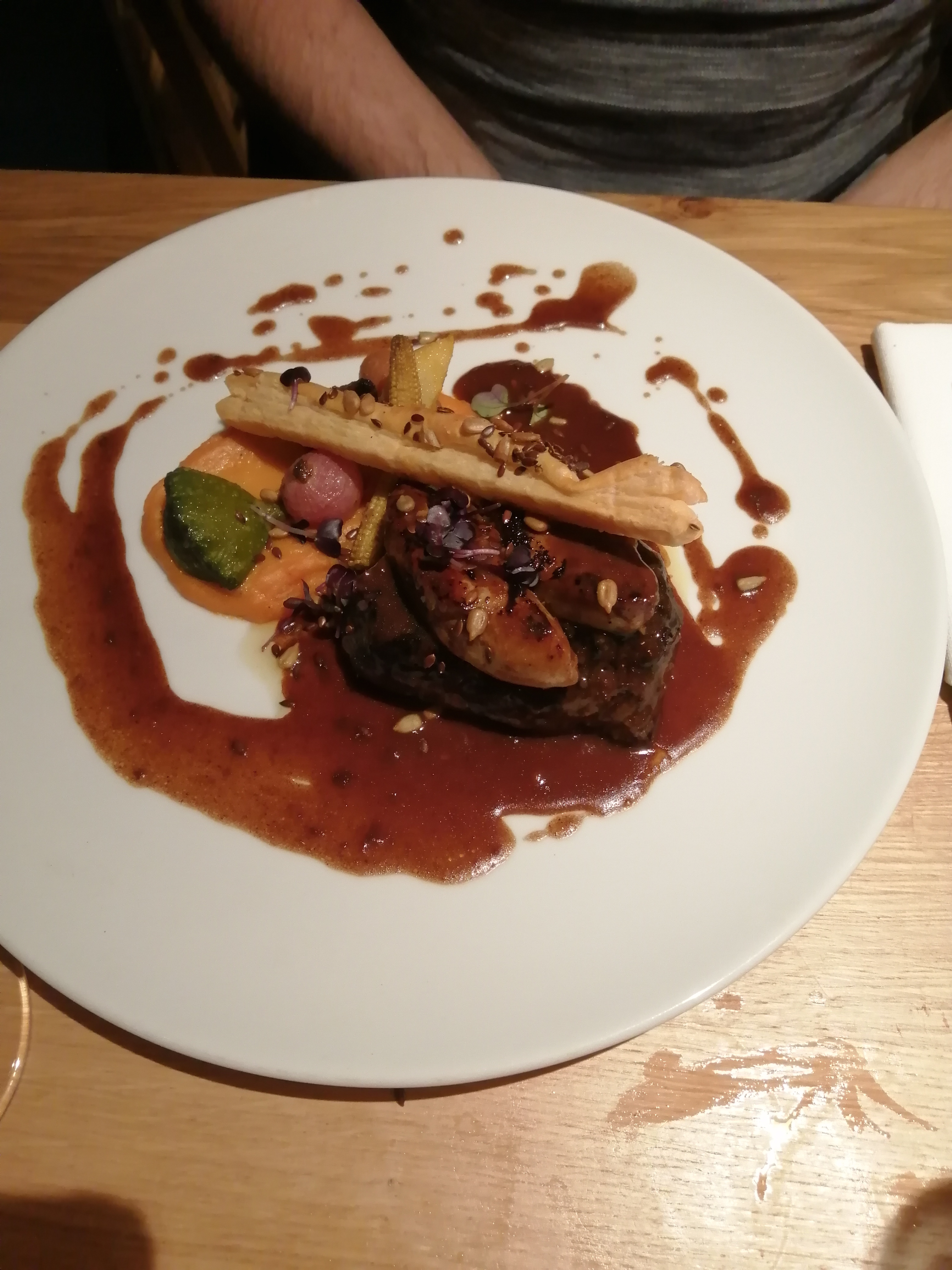 Quelle belle découverte !!! Cadre magnifique le restaurant donne sur une place avec de belles décorations. Le restaurant en lui même est très chaleureux on s'y sent très bien. Les plats étaient succulents c'était un bonheur gustatif accompagné de vin qui s'accordait parfaitement merci à la responsable de nous avoir si bien conseillé. Petite carte 3 entrées 3 plats 3 desserts produits frais locaux et de qualités. Personnel à l'écoute professionnel et très aimable .