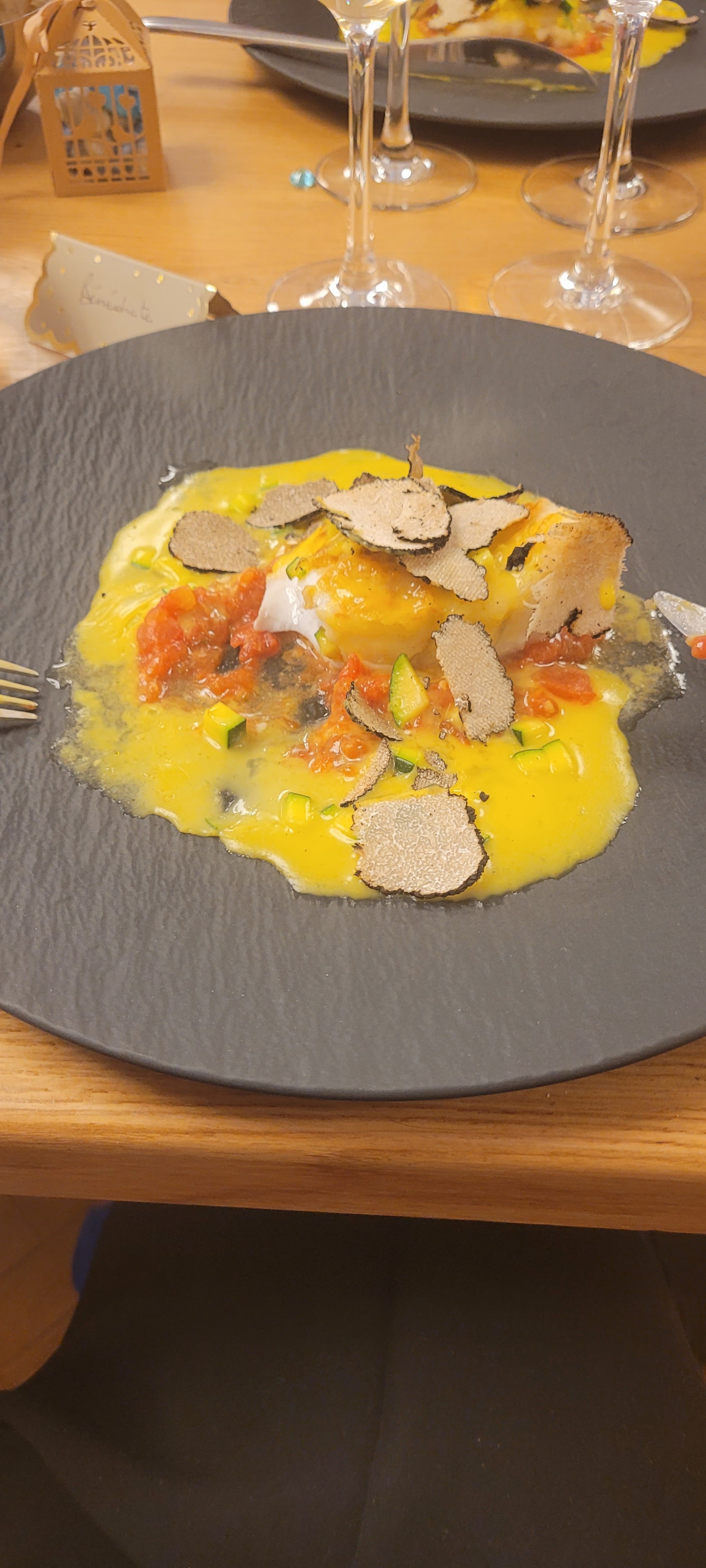 J'avais réservé pour le 24 décembre midi pour ma conjointe et moi-même, accompagnés de notre petit chien (accepté !) Repas incroyable, du début à la fin les plats étaient fins et recherchés. Le service au petit soin, conseil sur le choix du vin personnalisé. Le restaurant mérite une bien meilleure notr !