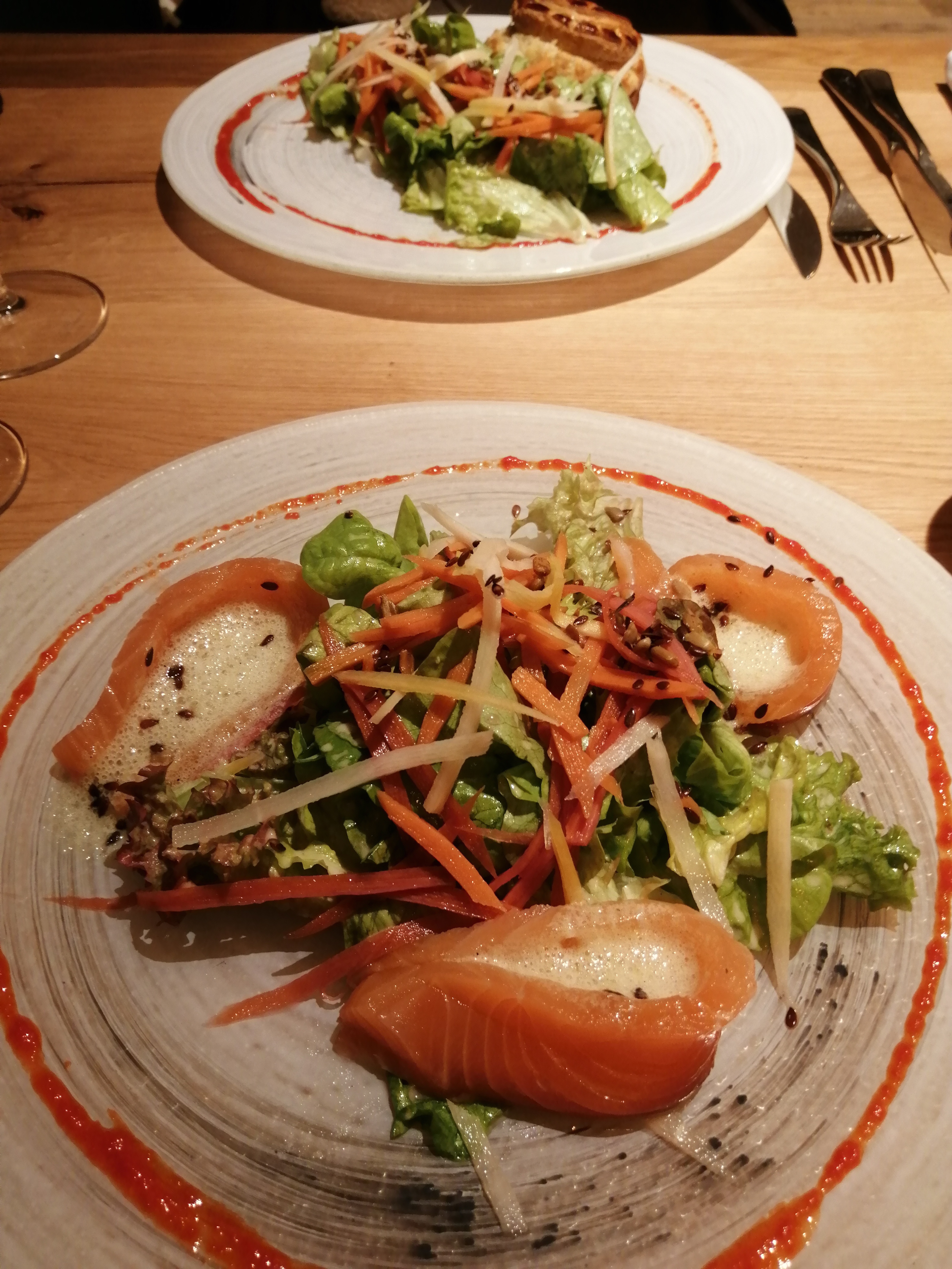 Une salade verte vinaigrette 3 coquilles st Jacques 3 gambas filaments de betterave et carotte 20€50......vraiment honteux...comparer à la salade saint jacques gambas agrumes du s'dorf stubel ou là bas il n'y a pas que de la salade et des véritables saveurs pour 18€90. première et dernière fois. Deux étoiles c'est surtout pour le pauvre serveur très gentil...et pro...
