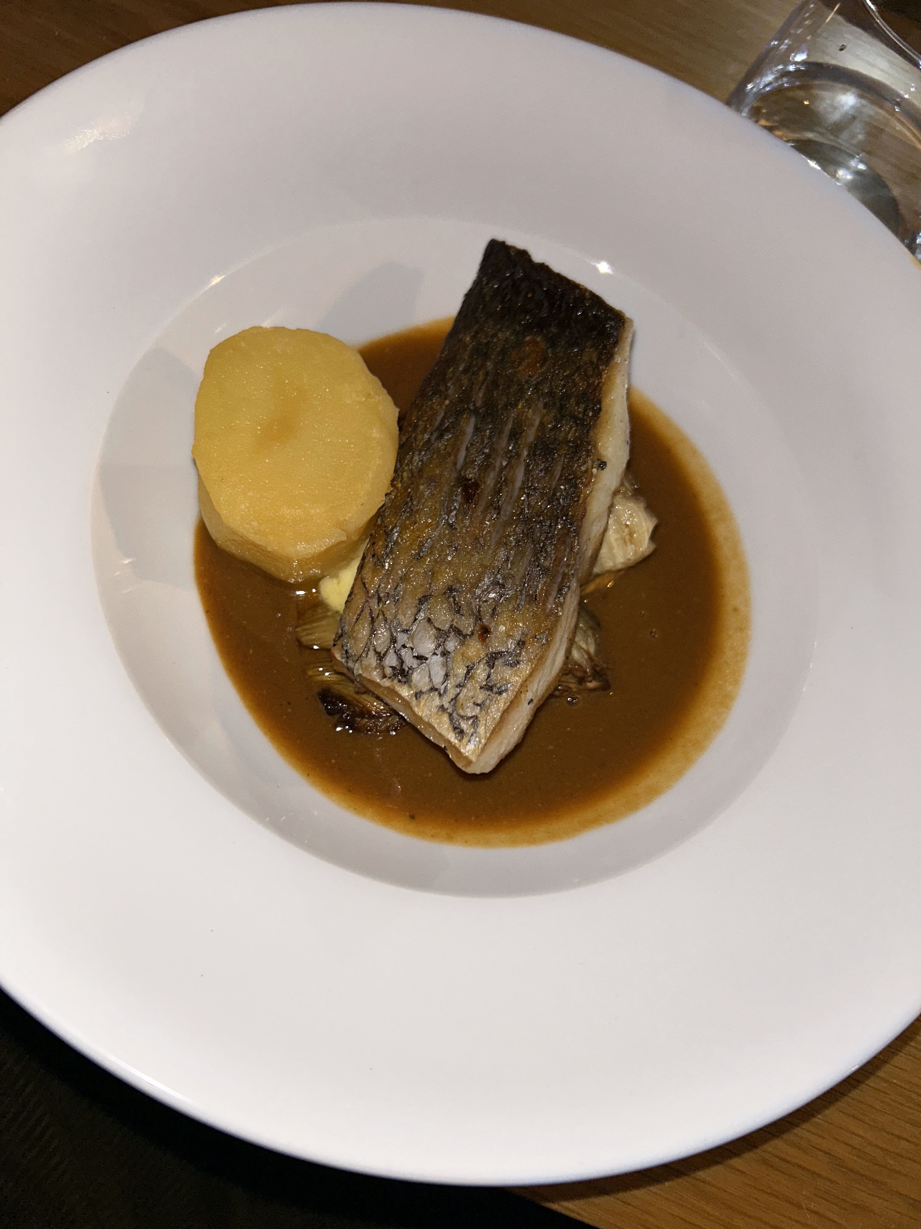 Agréable soirée. Service plein de douceur. Lieu charmant et reposant. Dans l'assiette, c'était qualitatif et bon. 41€ entrée plat dessert, je pense que 35 à 38€ serait un prix plus adapté ou quantité un peu + généreuse à prévoir pour 41 €? Entrée au saumon et courgettes sympa sans + . Plat de poisson très bon, belle cuisson et du gout également pour la garniture, j'ai apprécié. Pour le dessert : très belle surprise ! Un tiramisu glacé. Aussi, l'attention du pré-dessert (une cuillère de panna cotta ce soir là, était très agréable). belle continuation et au plaisir de revenir, PS : l'ambiance musicale était très agréable et ce restaurant est très joli (les sols, les meubles etc.)