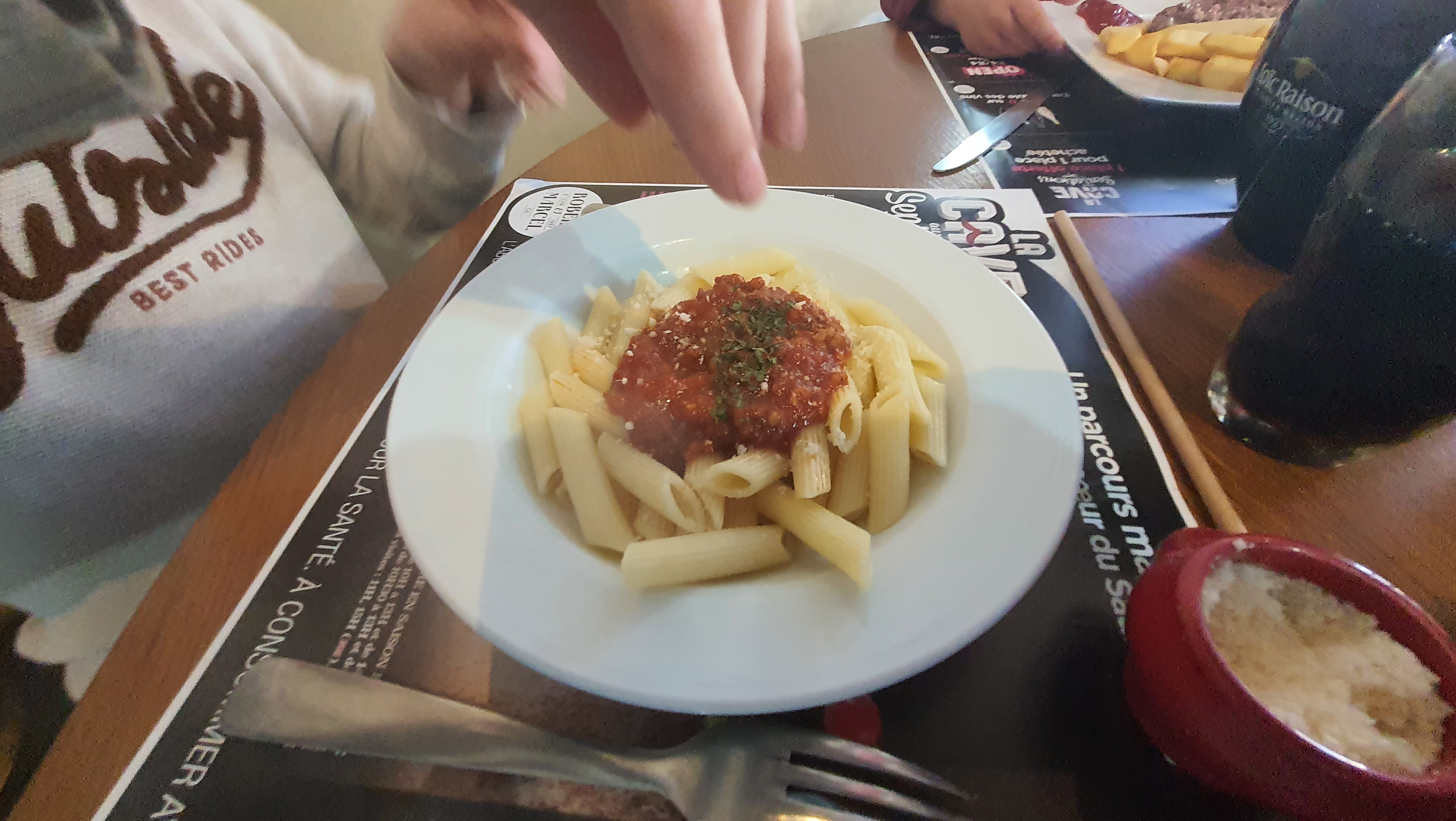 Vraiment dommage parce que c pas mauvais !!! Hormis les pâtes en garniture aussi froides que la salade verte et qu'il ne soit même pas proposé de parmesan... Par contre le patron mérite la palme d'or de l'accueil le plus désagréable... je vais prendre une escalope avec lard et fromage... il est 13h on m'annonce 25mn d'attente et que ça l'embête car il est tard... je change donc pour une salade de foies de volaille en entrée et des lasagnes... ah bin du coup autant prendre l'escalope ce sera plus rapide... 🙃 ensuite n'étant pas sourd, je l'entends dire à des gens à l'intérieur : je regrette d'avoir pris ce mec seul en terrasse à cette heure ci... mais, la crêperie voisine aurait été heureuse de m'accueillir... il faut vraiment arrêter ce métier qui n'est pas fait pour vous... Un café un dessert?... non non ça va aller !!! Pour le dessert j'ai été accueilli très gentiment par le salon de thé plus bas ...