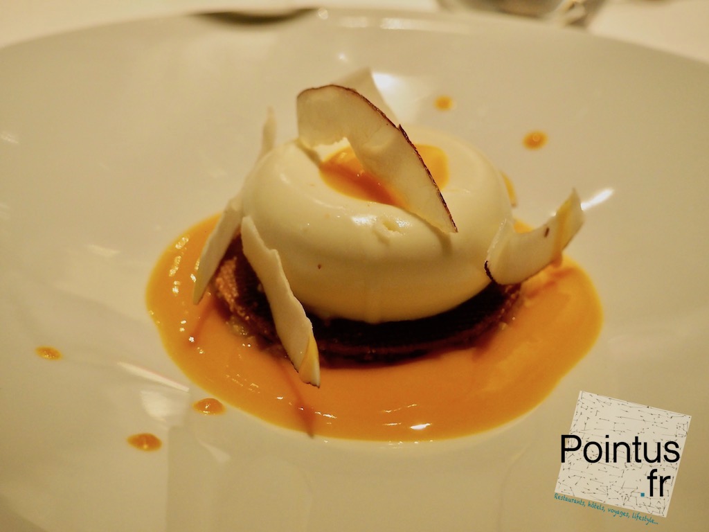 Le décor est chic sans ostentation. L’accueil est au top, les serveurs d’une grande attention. Le premier Menu Dégustation (hors truffe et caviar) s’est révélé parfaitement équilibré au niveau des portions. Les assiettes qui se succèdent délivrent à chaque fois un plaisir de grand raffinement, tout à fait en correspondance avec le niveau promis par l’étoile du fameux Guide. Peut-être les desserts sont-ils légèrement en-dessous de l’ensemble. De même le premier niveau (qui en compte deux) de l’Accord Mets et Vins m’a procuré grande satisfaction. On passe avec curiosité en allant aux toilettes entre deux murs de verres contenant des rangées de crus du sol au plafond.