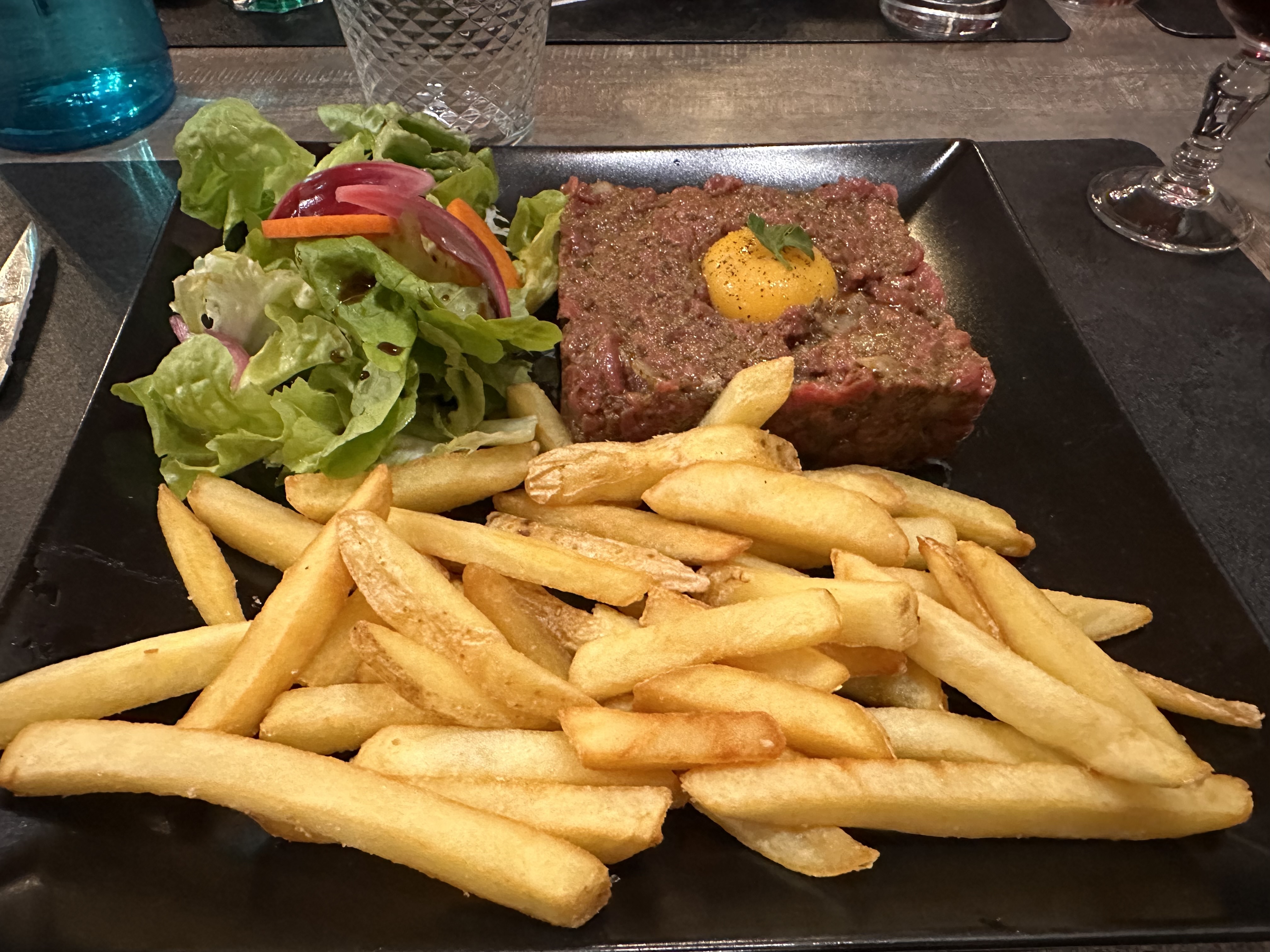 Steak tartare : parfait côté viande Pavé de bœuf : rien d'extraordinaire Accueil et service parfait