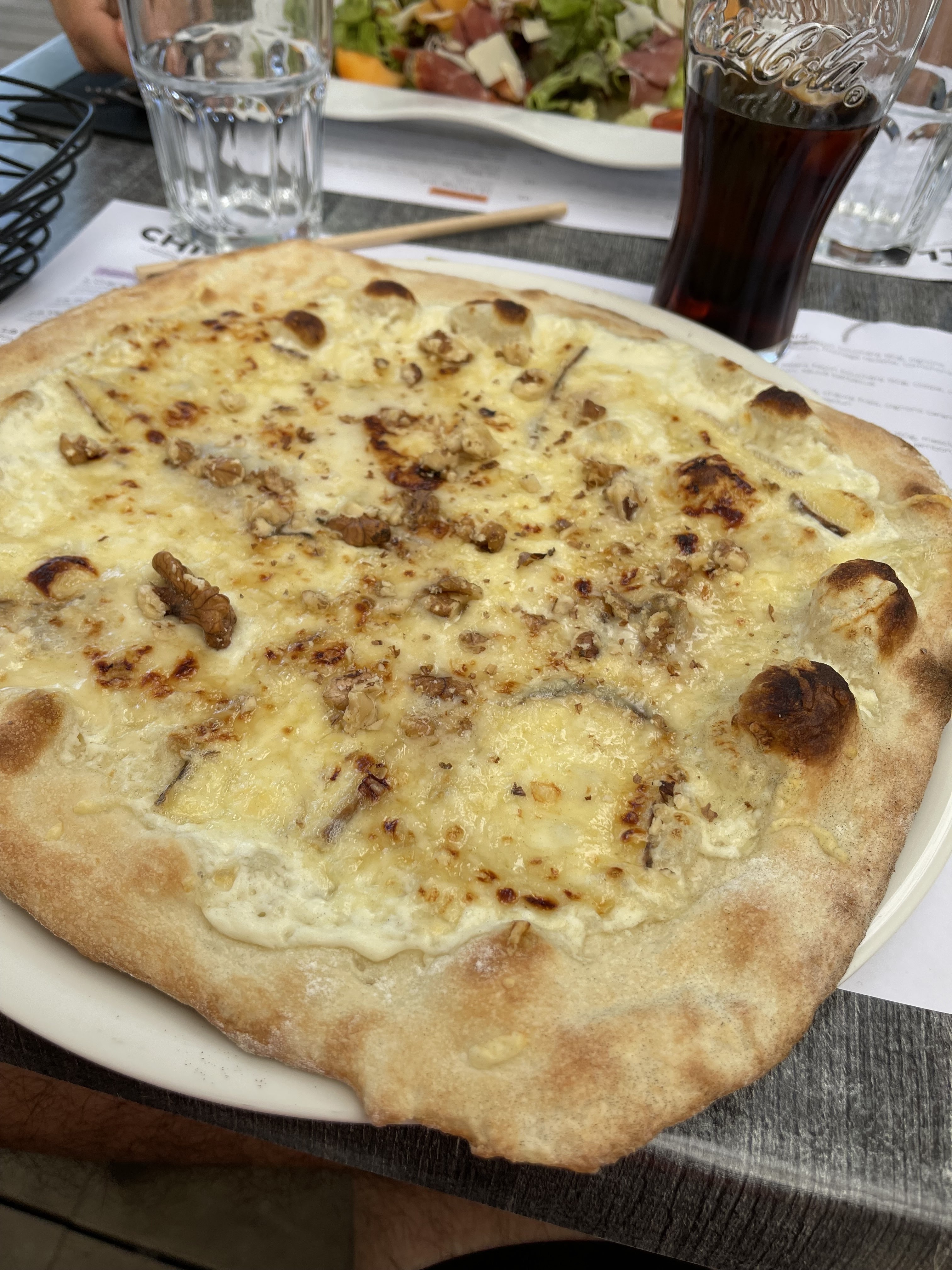 Nourriture Pas terrible…. J’ai commandé une pizza légumes grillées / roquette. La photo parle d’elle même… il manquait de la roquette sur ma pizza je l’ai donc signalé à la serveuse : j’ai eu droit à une poignée de salade en sachet. A part ça, le personnel est très sympathique.