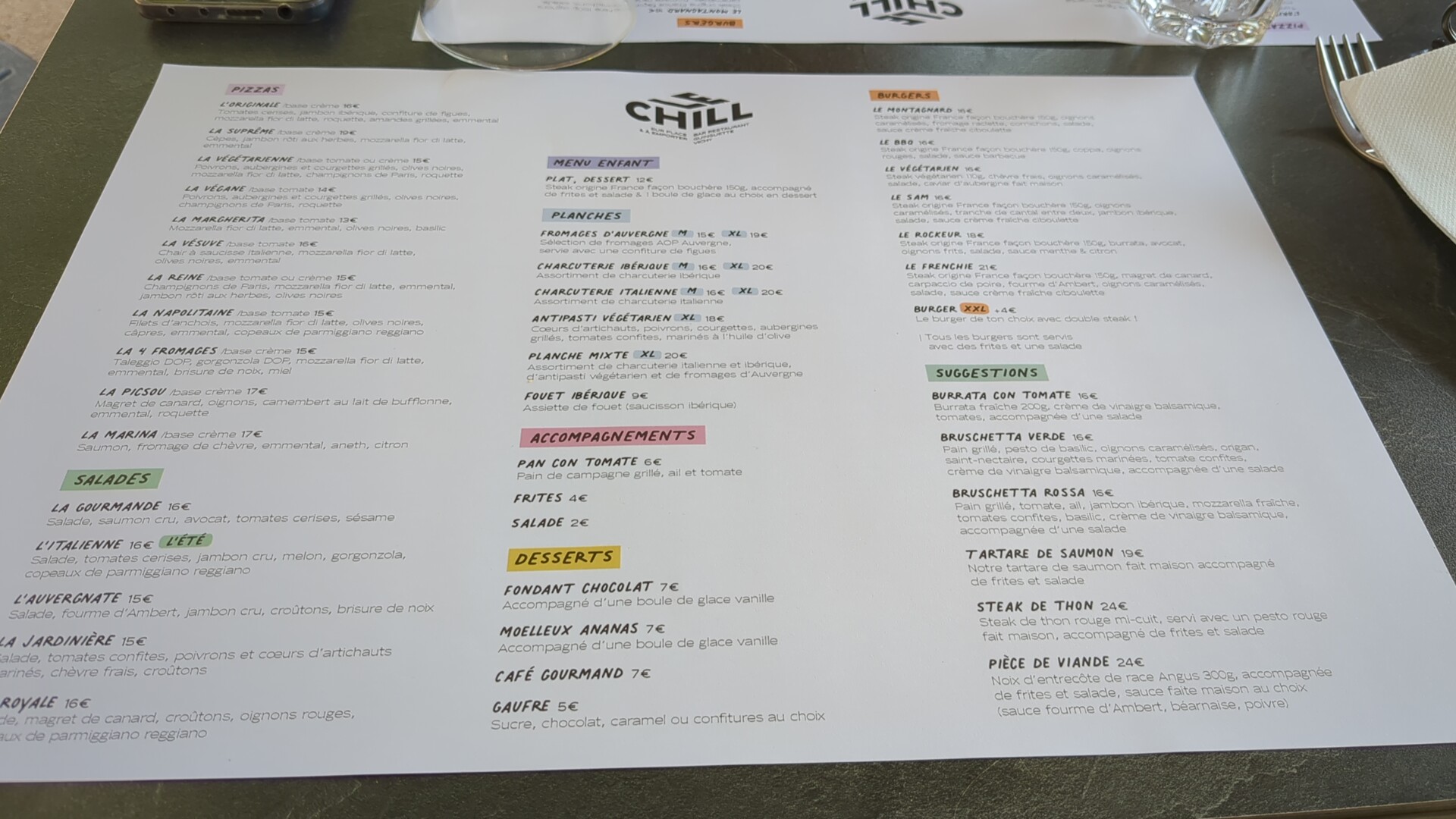 Un bon moment en famille. Le restaurant porte bien son nom, c’est très chill ! Un très bon rapport quantité/prix, la qualité était aussi au rdv (sauf pour la pizza, la truffe avait un goût assez particulier). Cela n’empêche qu’il est très bien situé sur les bords de rive de Vichy 👍🏻