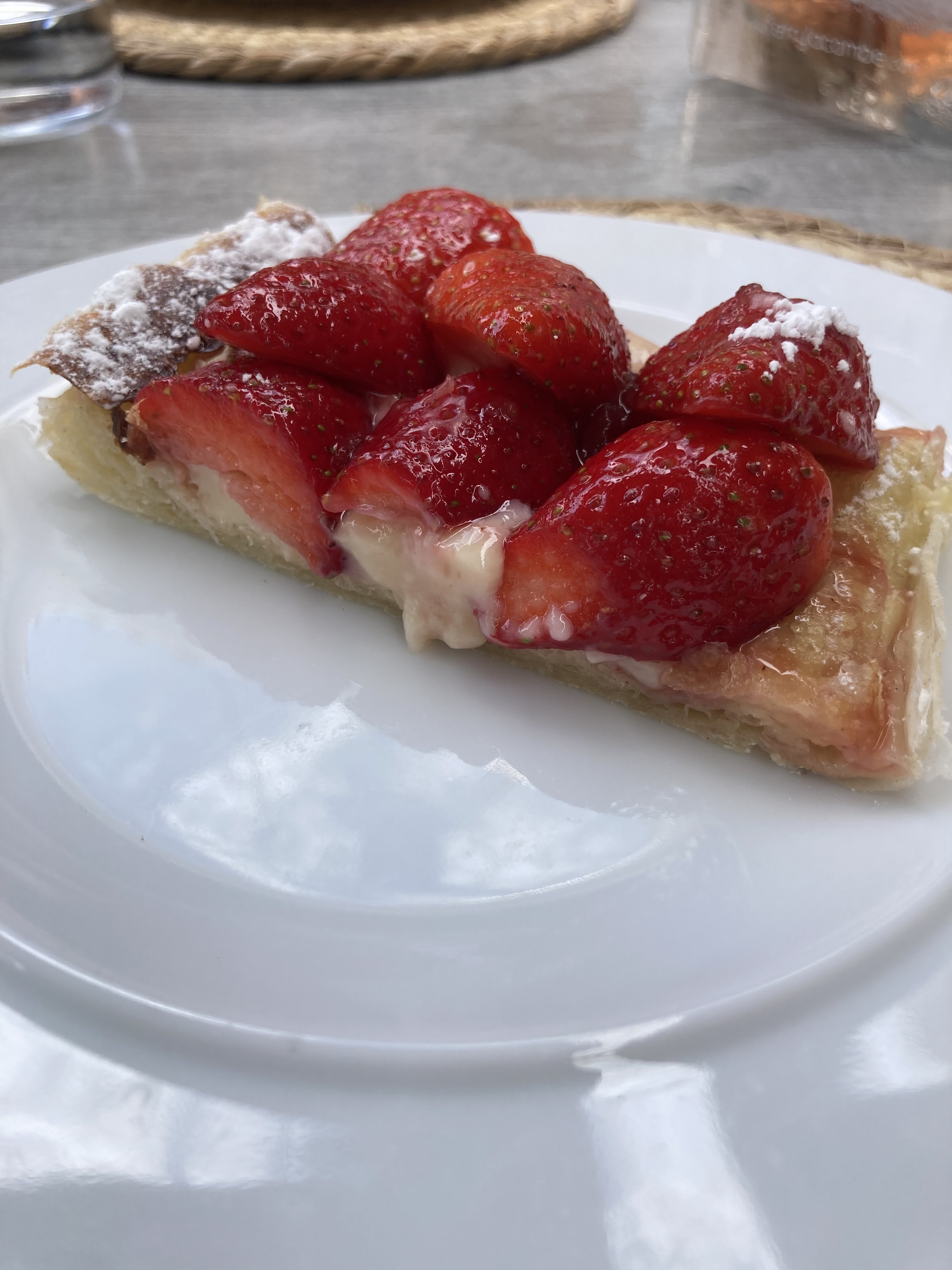 Topissime la terrasse au coucher de soleil et délicieux le contenu de l’assiette
