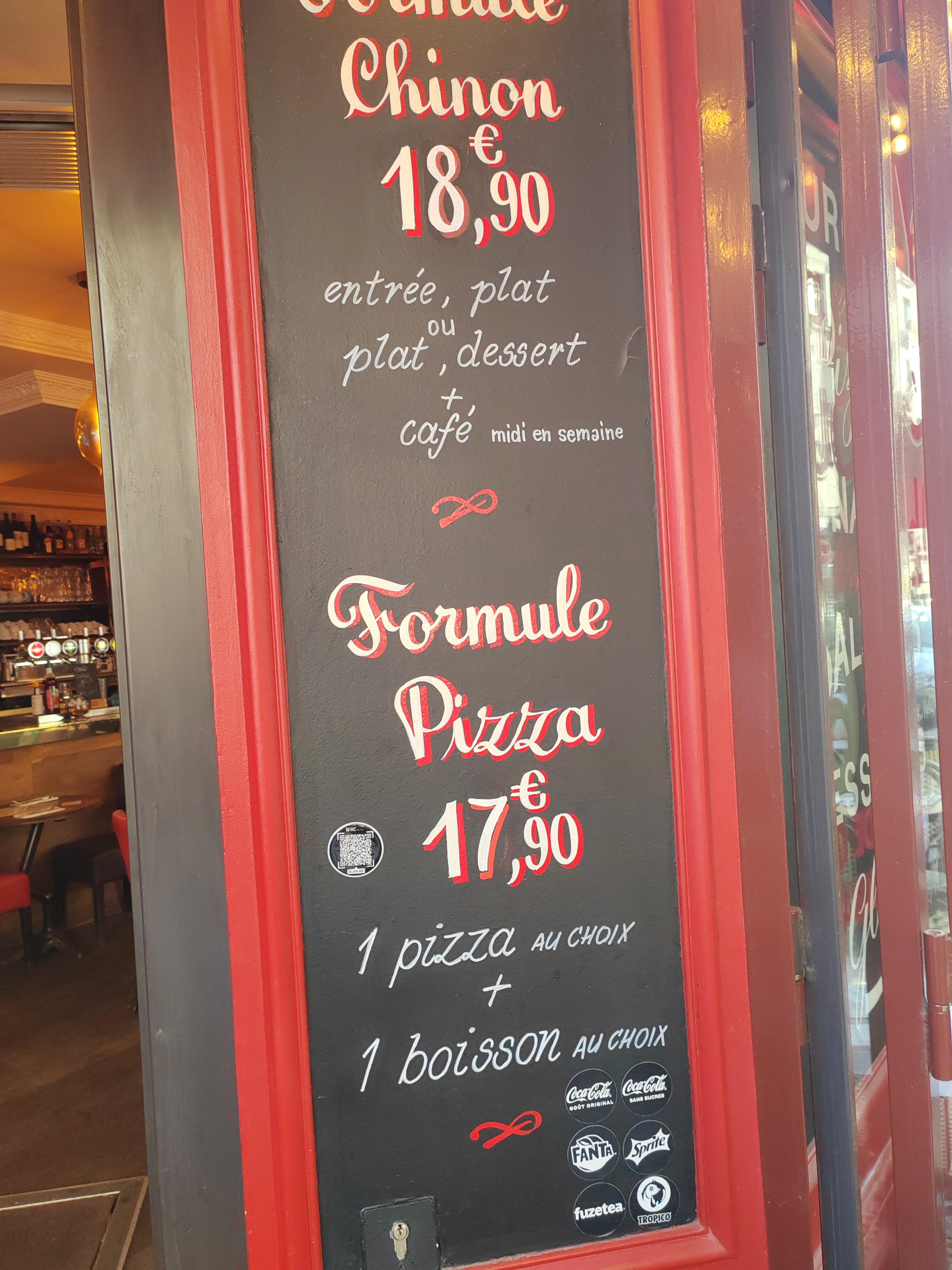 Il pleut à Paris et je cherche un endroit pour déjeuner.. quelle bonne idée de m’être arrêtée au « chinon ». Service rapide, efficace et souriant. Le plat du jour « souris d’agneau » était vraiment délicieux. Je recommande cet endroit qui a un côté « restaurant de quartier ». Merci pour ce bon moment et à. Oué tôt!