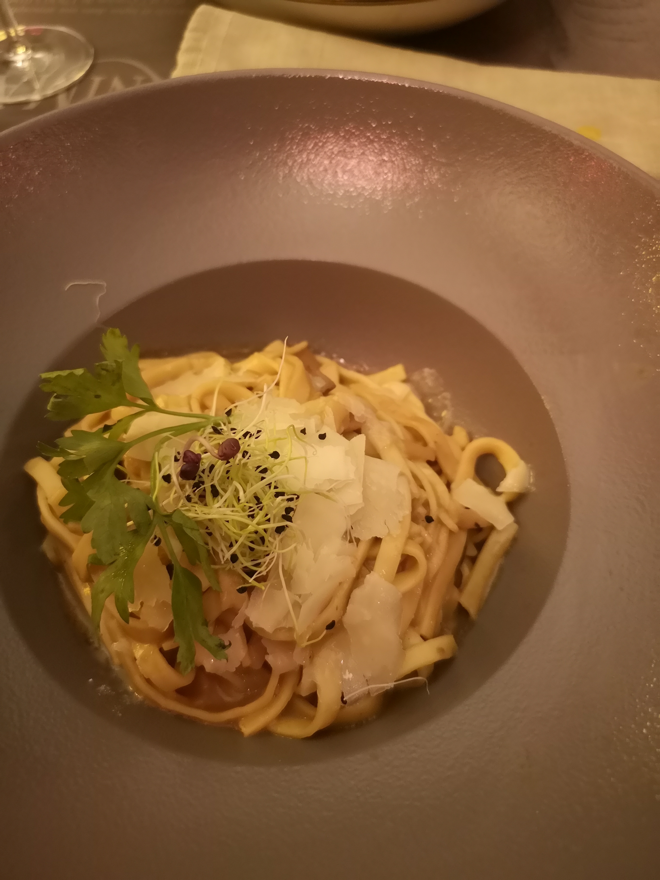 La note optimale serait probablement autour de 4,5. Nos attentes pour ce type de restaurant sont légèrement plus élevées. Le service est excellent, l'ambiance chaleureuse, et les plats sont bien présentés et savoureux. Cependant, mes tagliatelles aux champignons étaient un peu trop cuites, et il manquait un peu de parmesan. Dommage