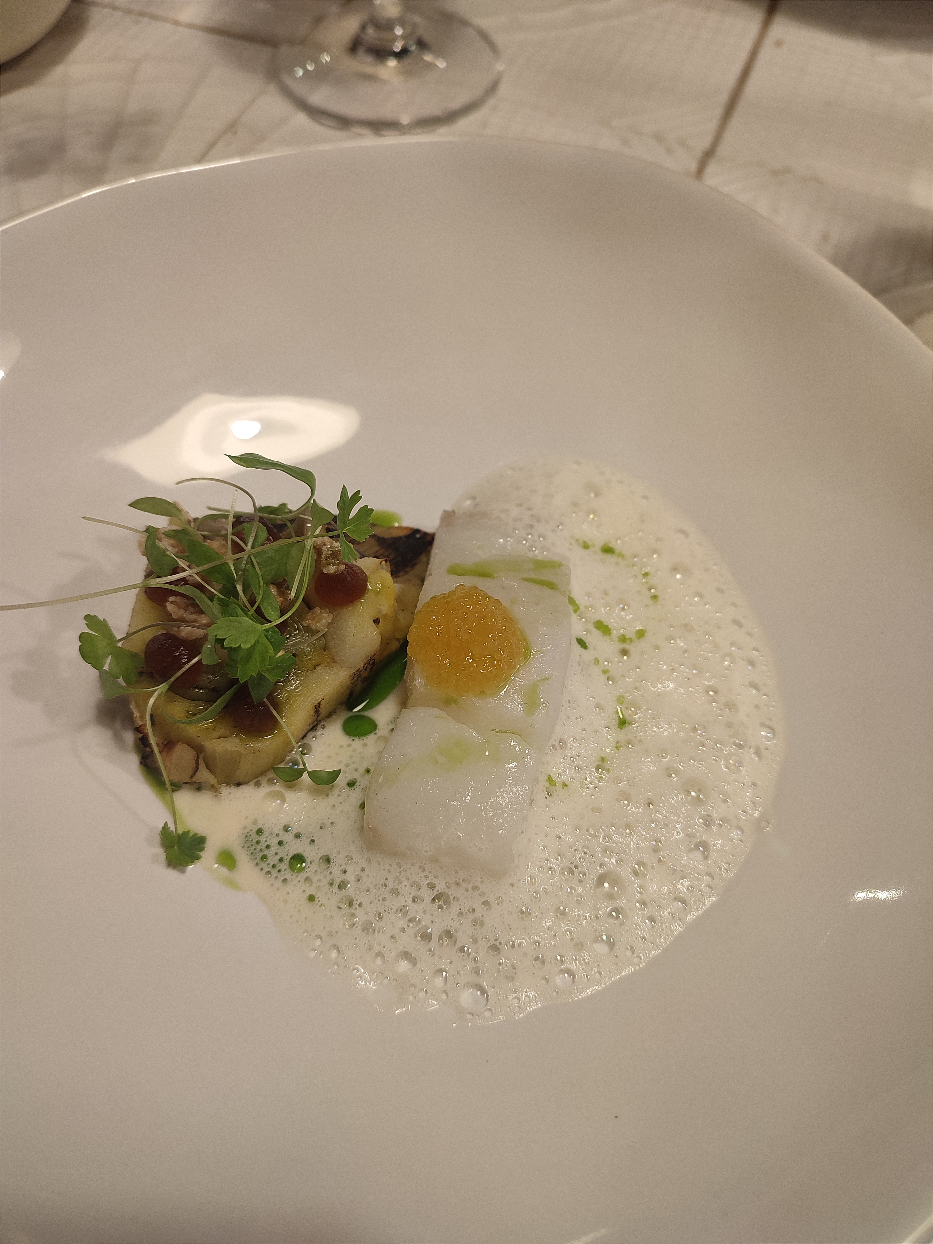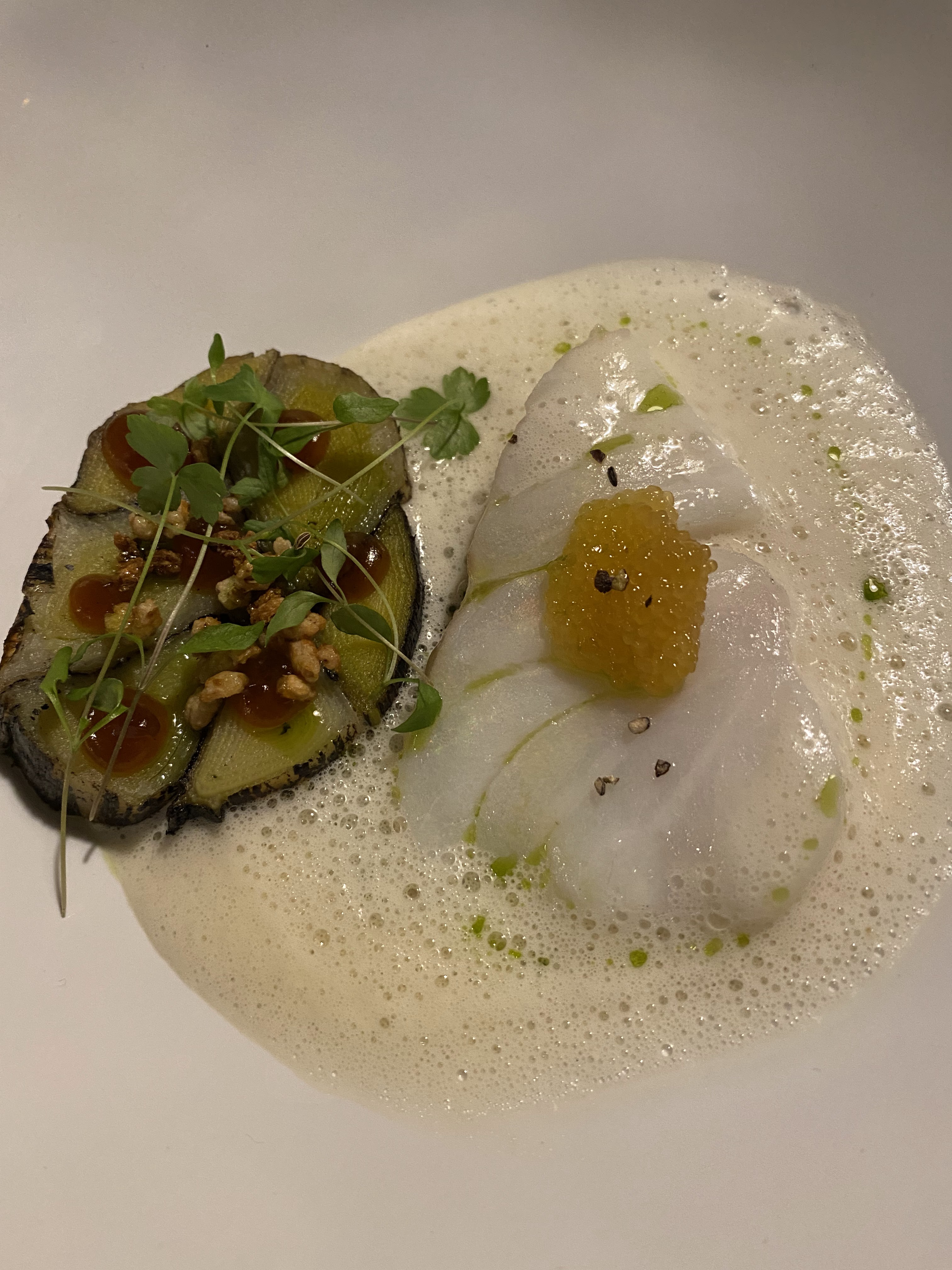 Je conseil ce restaurant, L’équipe est très sympa et le menu dégustation est très bon ( on a été un peu déçus sur la betterave) mais le poisson une vrai tuerie ça devrait être leurs plats signature je conseil 💯 : Cabillaud de Saint-Guénolé, oeuf de brochet, poireaux brûlé, sauce dashi, kombawa et gel ponzu
