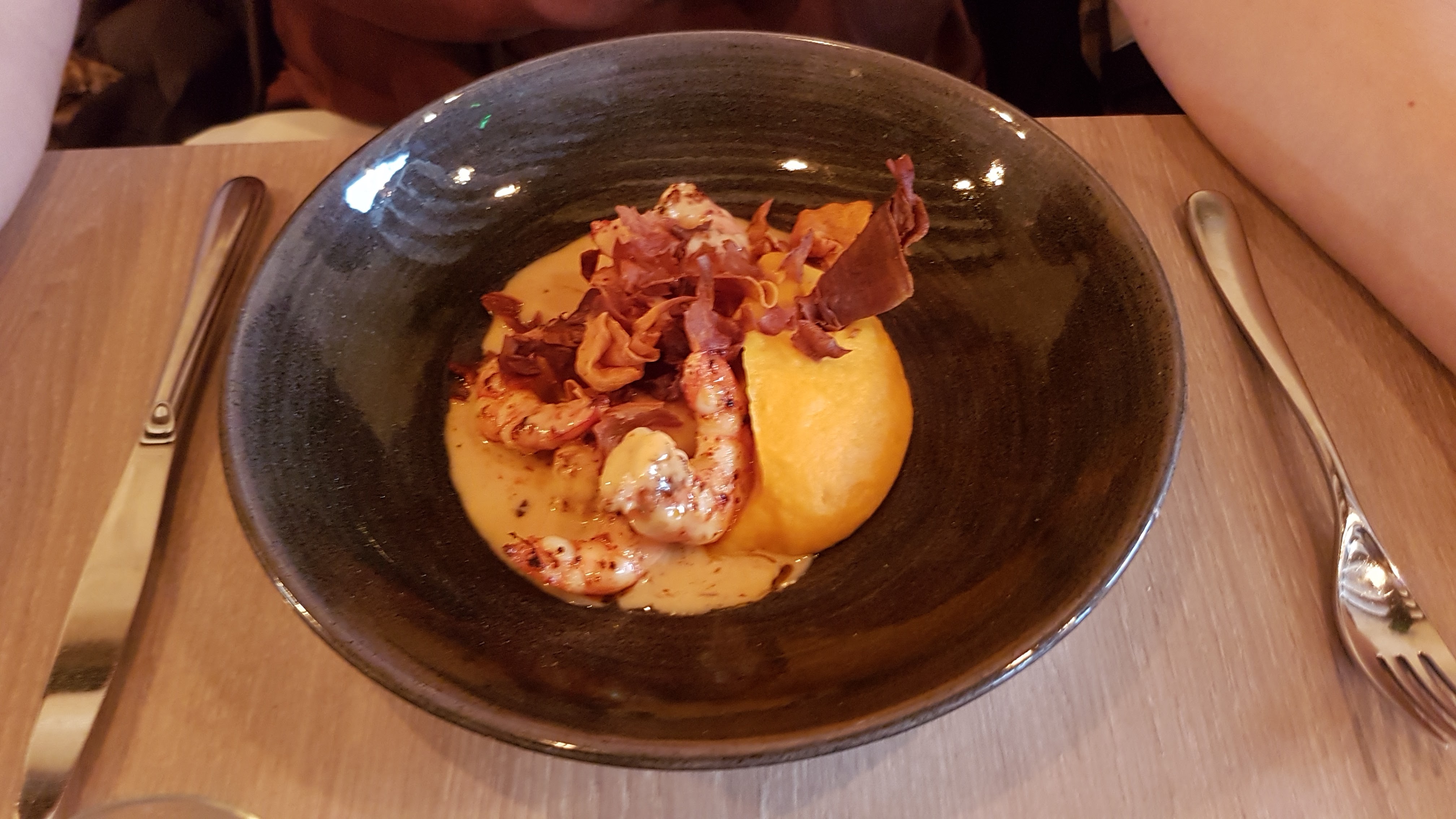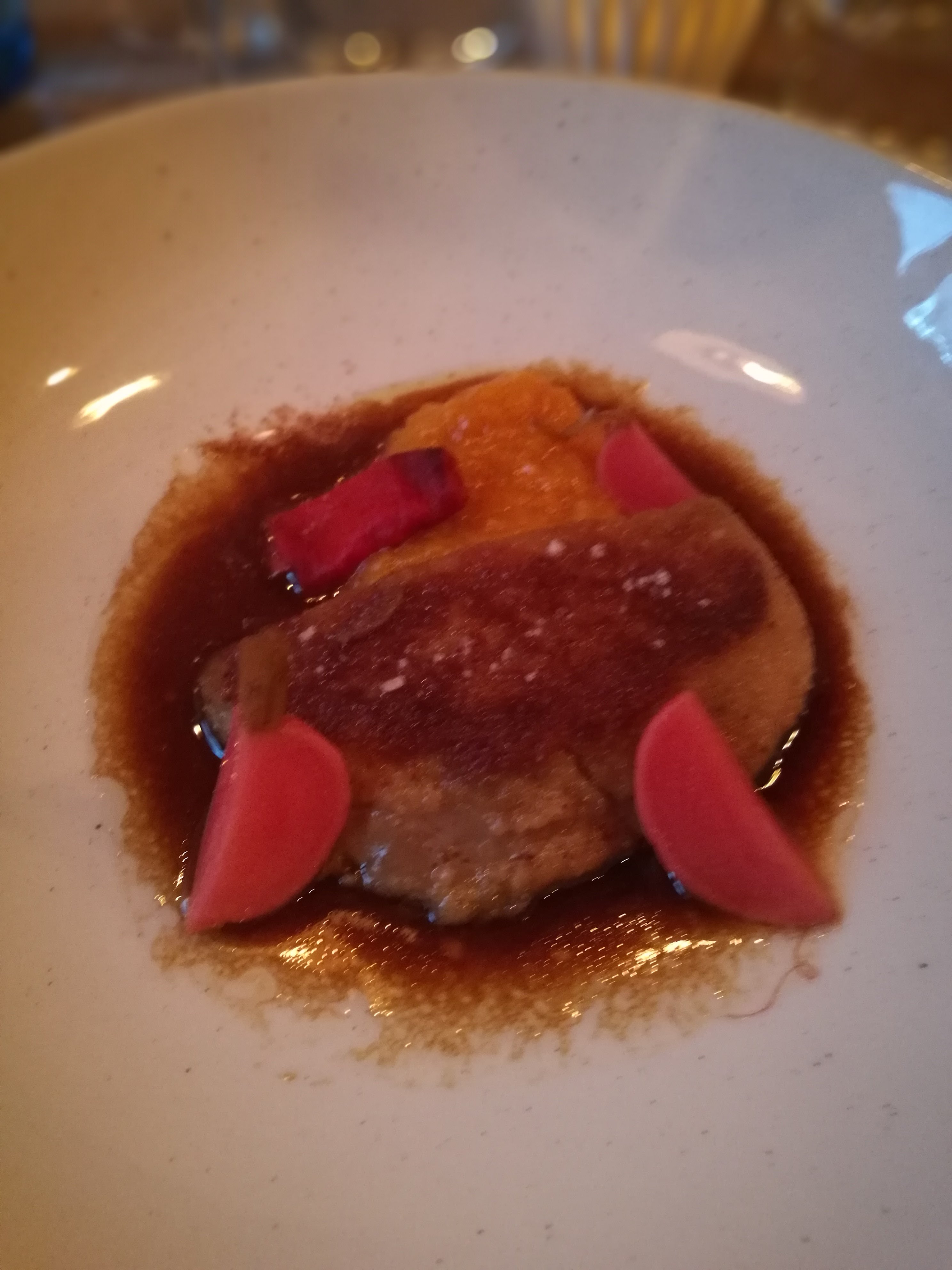 Resto cosy Très belles vaisselles Serveuse souriante mais à la ramasse au niveau de la carte des vins. Cuisine raffinée avec des aliments frais et de qualité à ce niveau là il n’y a rien à dire les aliments sont frais et sélectionnés et bien présenté mais il manque quelques choses de la cuisine ! Les produits sont bruts dans l’assiette pas suffisamment sublimé pour révéler toutes leurs saveurs dommage car on ressent la volonté du chef à vouloir faire plaisir mais il n’a pas d’explosion en bouche de miam Conclusion endroit chaleureux mais cuisine mal élaborée