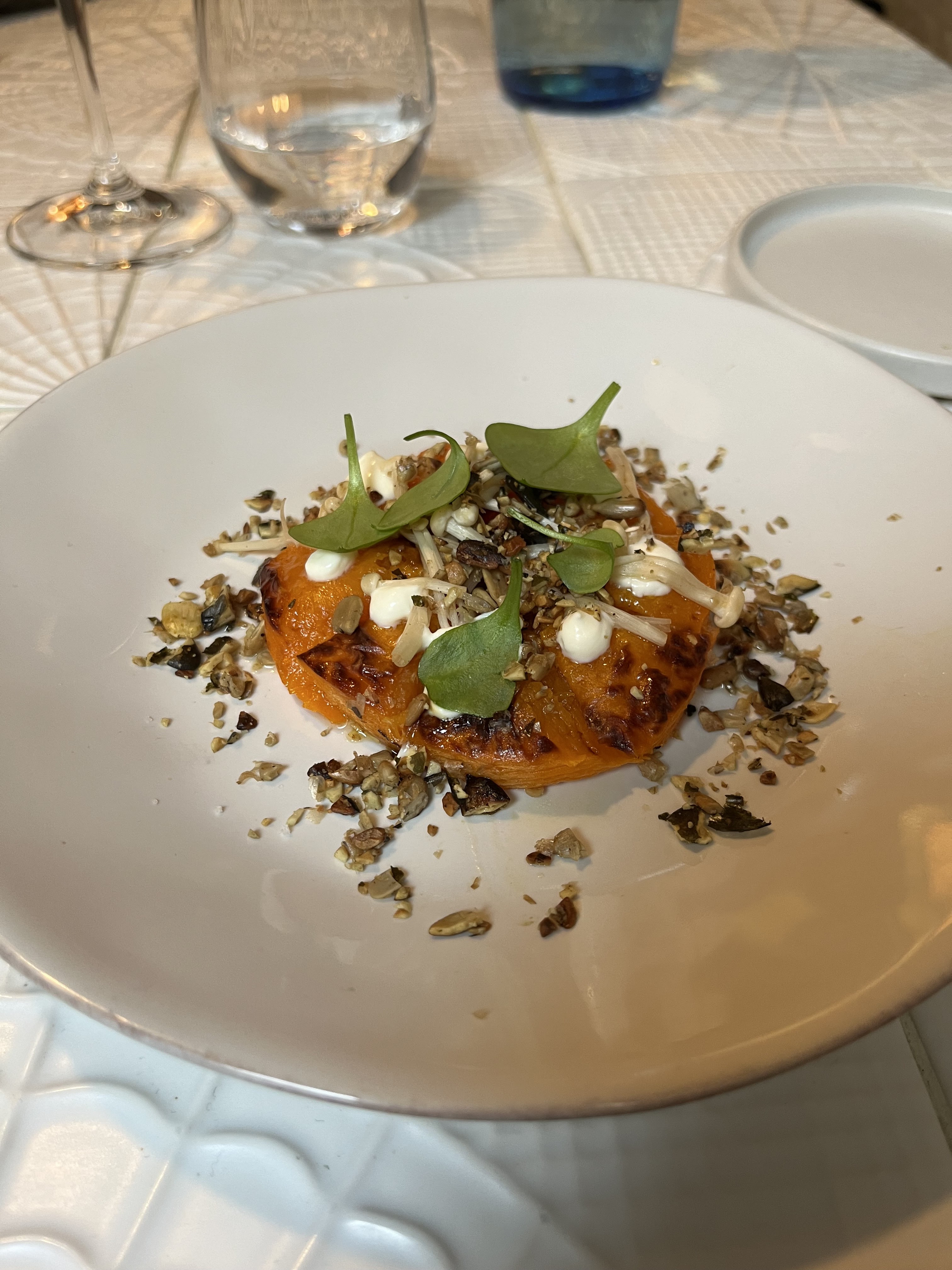Superbe restaurant français Cuisine raffinée et parfaitement exécutée Et pour un budget très accessible au vu du quartier Entrée avec la courge était incroyable !