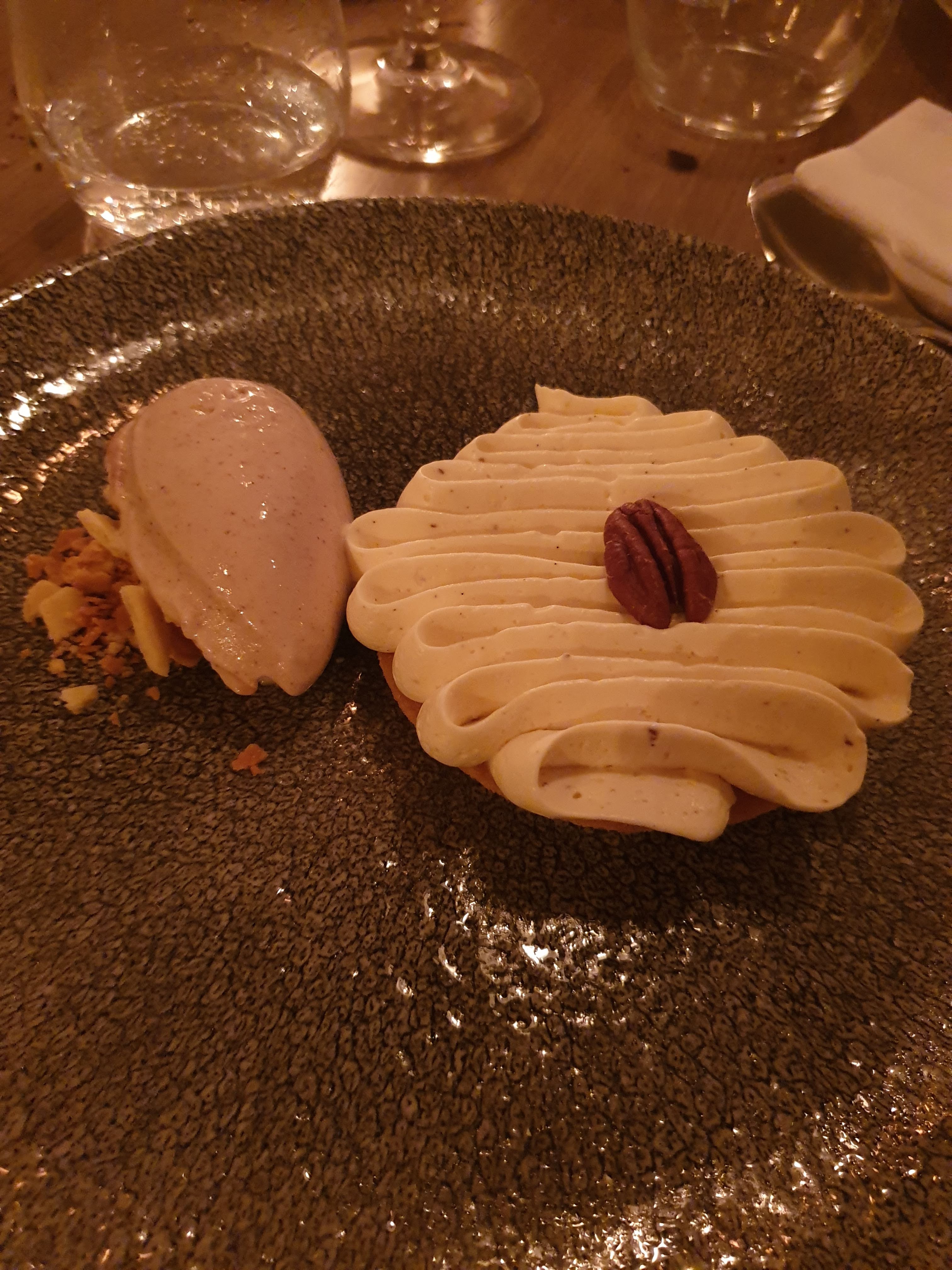 J'ai adoré l'accueil et le travail de présentation des plats. Le dessert, tout en contraste, était succulent ! J'ai néanmoins mois été séduite par le plat principal (couteaux aux champignons) mais il s'agit là de goûts personnels et salue le travail en cuisine.