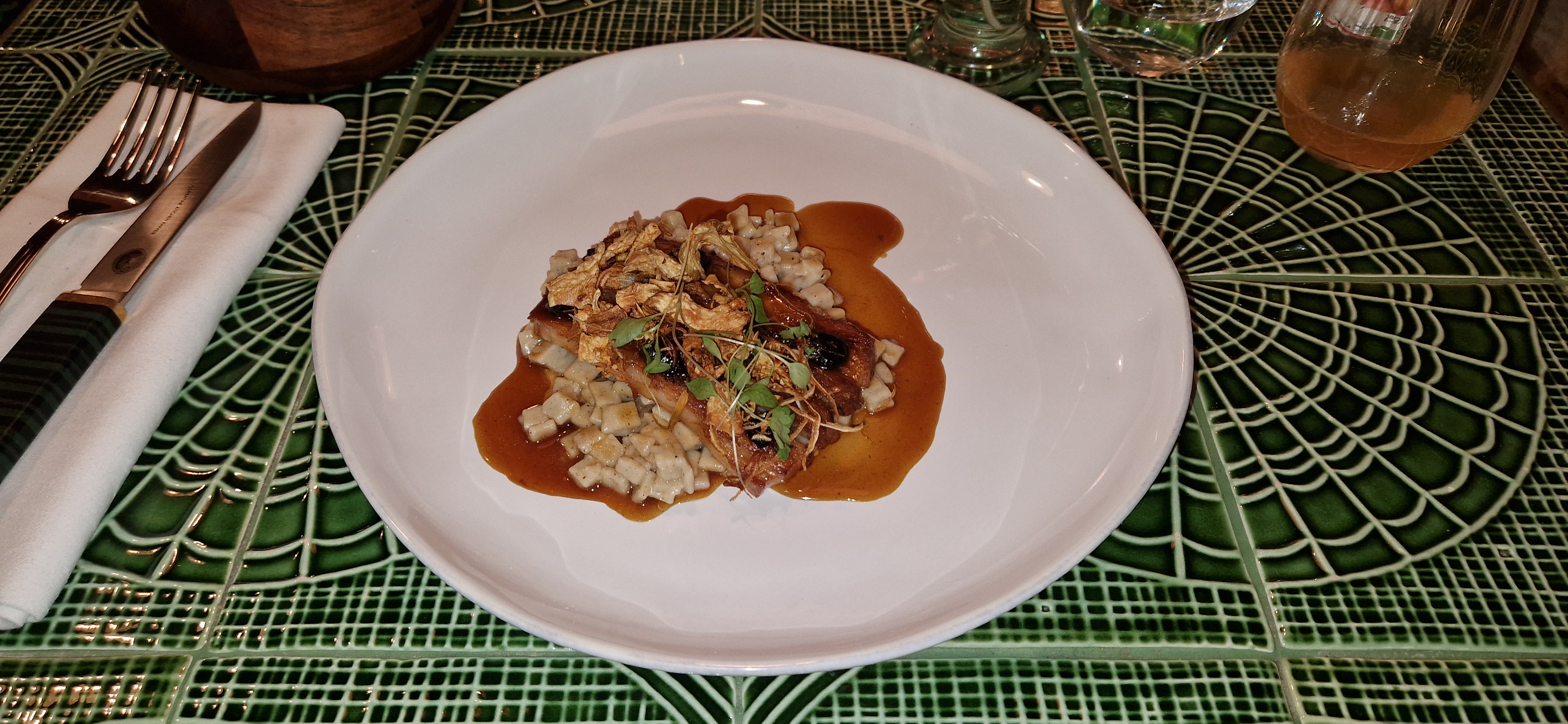 Tout d'abord c'est un beau restaurant avec un concept de cuisine ouverte, le personnel est au petit soin et enfin les plats sont bons et beaux. Les ingrédients sont de qualité et même le choix de la vaisselle n'est pas laissé au hasard. Niveau prix, le rapport est plus que correct. À notre arrivée, notre table n'était pas encore prête et on nous a fait patienter dans le salon de l'hôtel qui porte le même nom et qui se trouve la porte d'à côté. Une agréable surprise ! En résumé : un véritable plaisir!