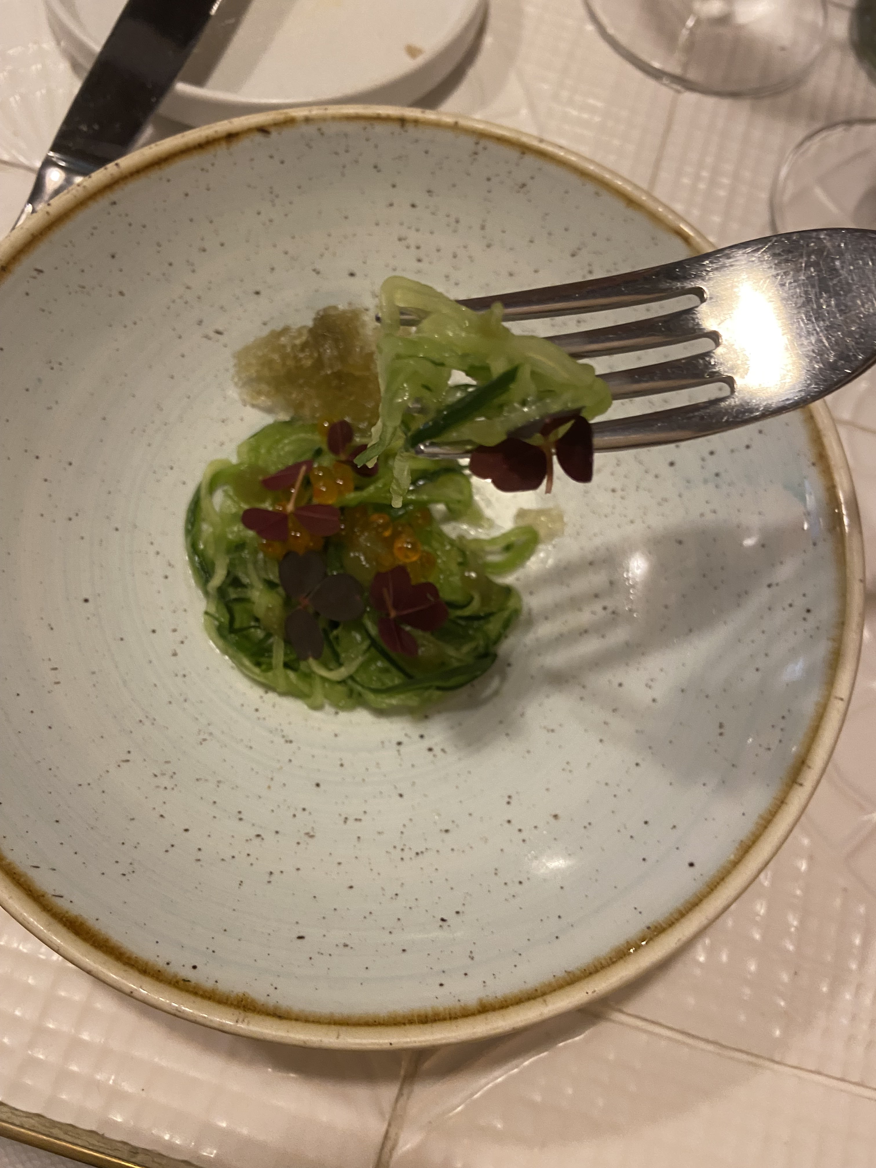 Vraiment un souvenir qui restera gravé à jamais ! C'était la première fois que nous nous rendions dans un restaurant de ce type et le personnel était d'une gentillesse et d'une bienveillance incroyable qui nous a tout de suite mis à l'aise (ce qui n'est pas toujours le cas dans ce genre de restaurants). Et bien sûr, tout était délicieux et original ! Sans parler du magnifiquecadre qui est intimiste et chaleureux ! Une adresse que je garderai en tête !!