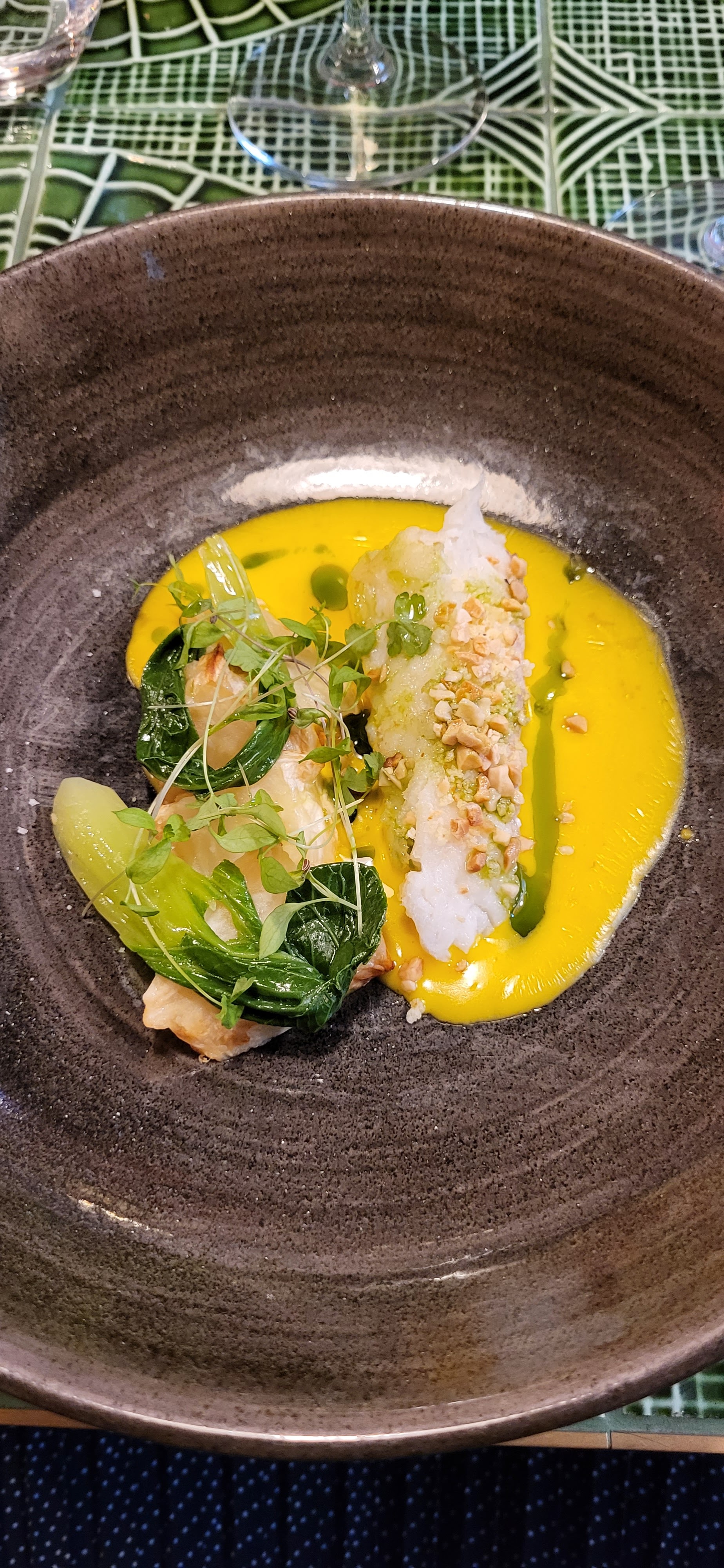 J’avais choisi ce restaurant pour un dîner entre amis après avoir vu la présentation de la cuisine proposée et les photos du restaurant. Les attentes étaient donc élevées. Environnement agréable et accueillant. La cuisine est excellente, félicitations au chef. Excellente présentation des plats, belles combinaisons d’ingrédients d’excellente qualité avec un excellent résultat final. La carte des vins riche et variée. Impossible de ne pas en trouver un à votre goût. Malheureusement, le service n’a pas été à la hauteur de tout cela, je dirais même très mauvais. Mis à part le sommelier, le service a été embarrassant, avec des plats jetés sur la table (table en céramique!), des phrases standard répétées automatiquement sans réel intérêt pour le client, aucun effort pour se rappeler qui avait commandé quoi, etc. Pour 4 personnes ne devrait pas être difficile et dans un restaurant comme celui-ci devrait être la norme. Comment est-il possible d’avoir un déséquilibre aussi évident entre la bonté de la cuisine et la qualité du service en salle? Dommage, car ce que nous avons goûté était vraiment bon. J’espère que mon commentaire sera considéré comme une opportunité d’amélioration.