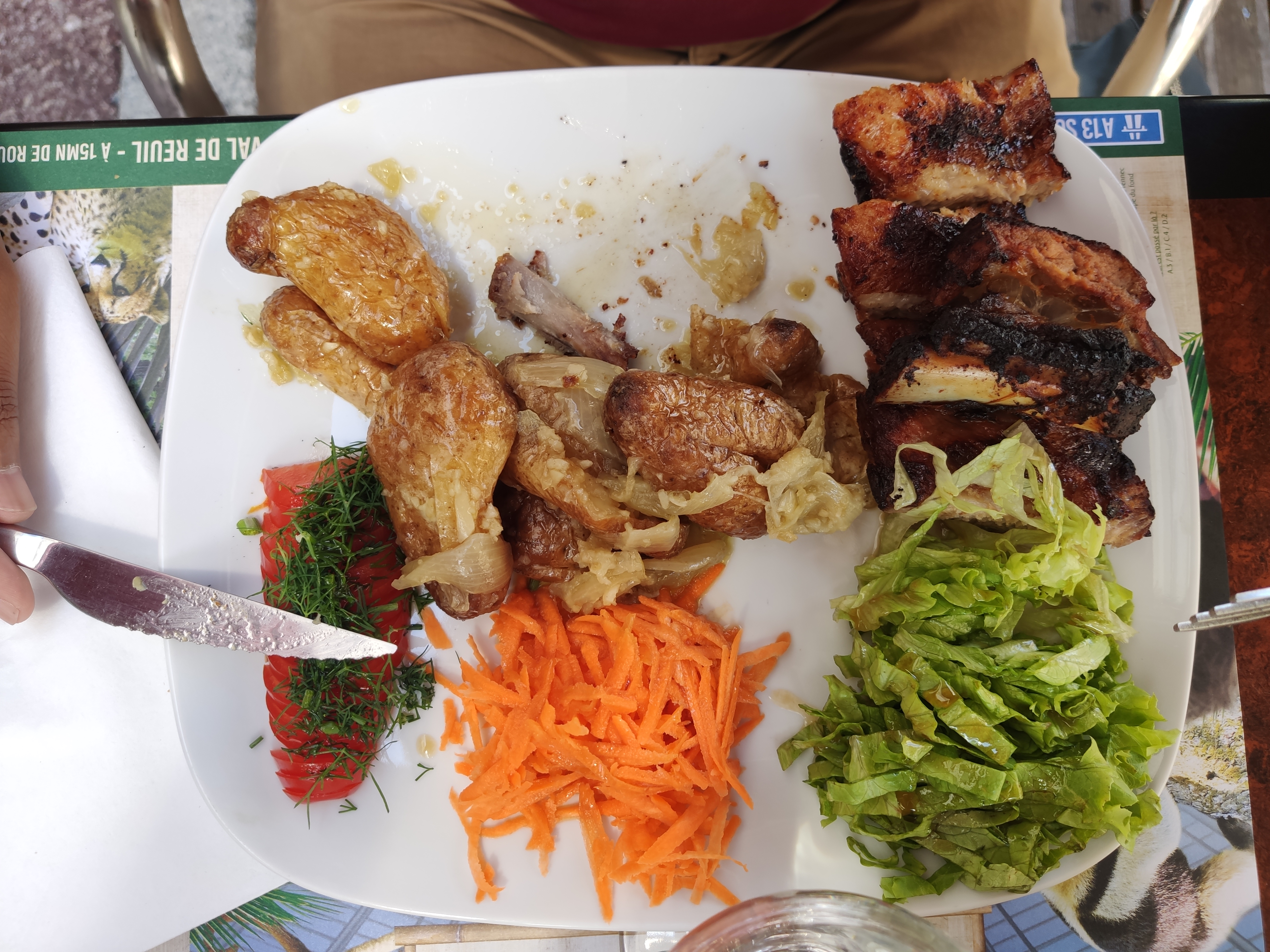 Dsl pour la photo j'y ai pensé après avoir entamé mais très bien présenté, savoureux travers de porc grillé avec salade et pommes de terres. Patron très sympa 👌 Je conseille!