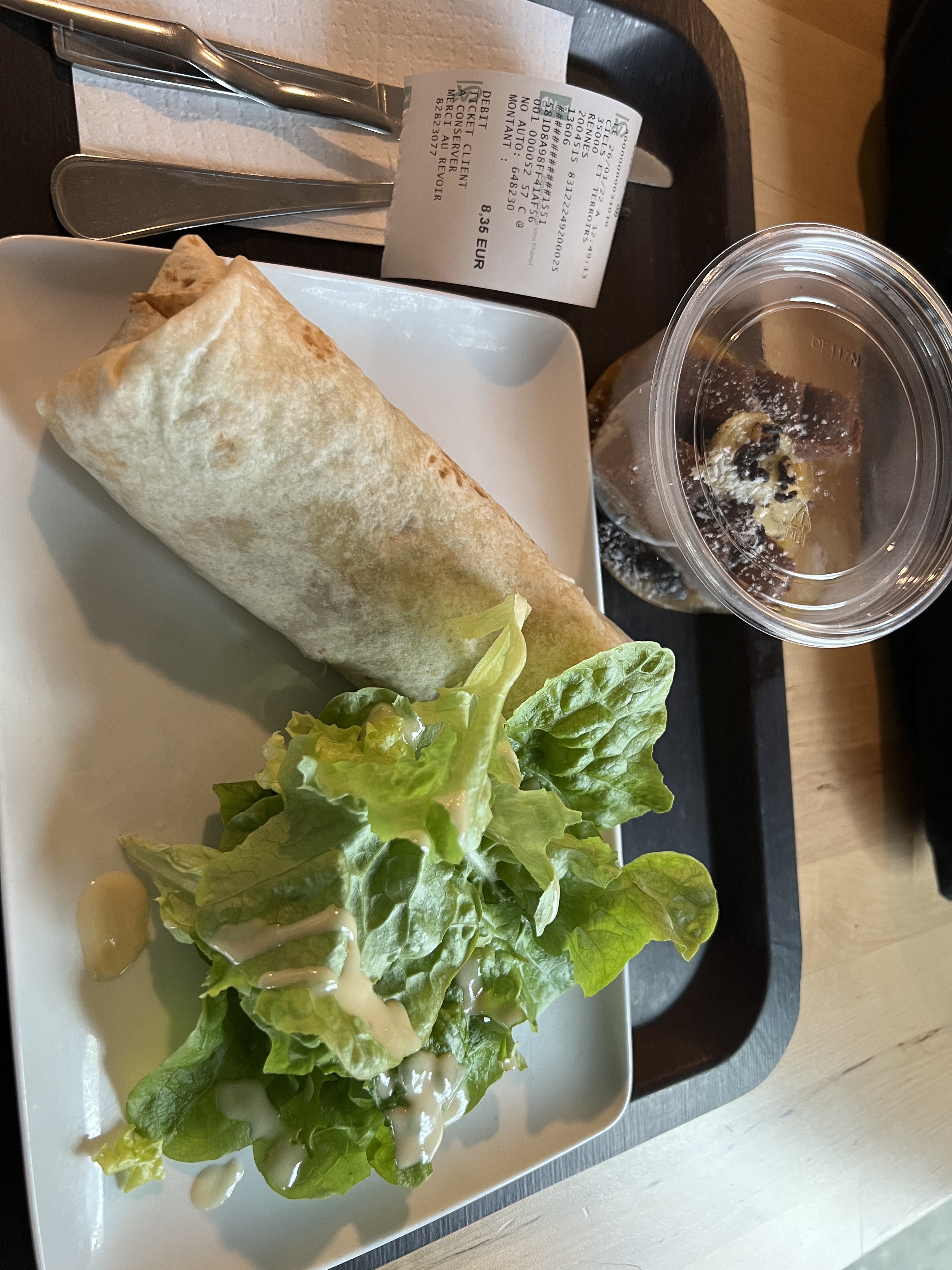 Je déjeune à la cantine, je récupère mon snack toujours très satisfaite 😉
