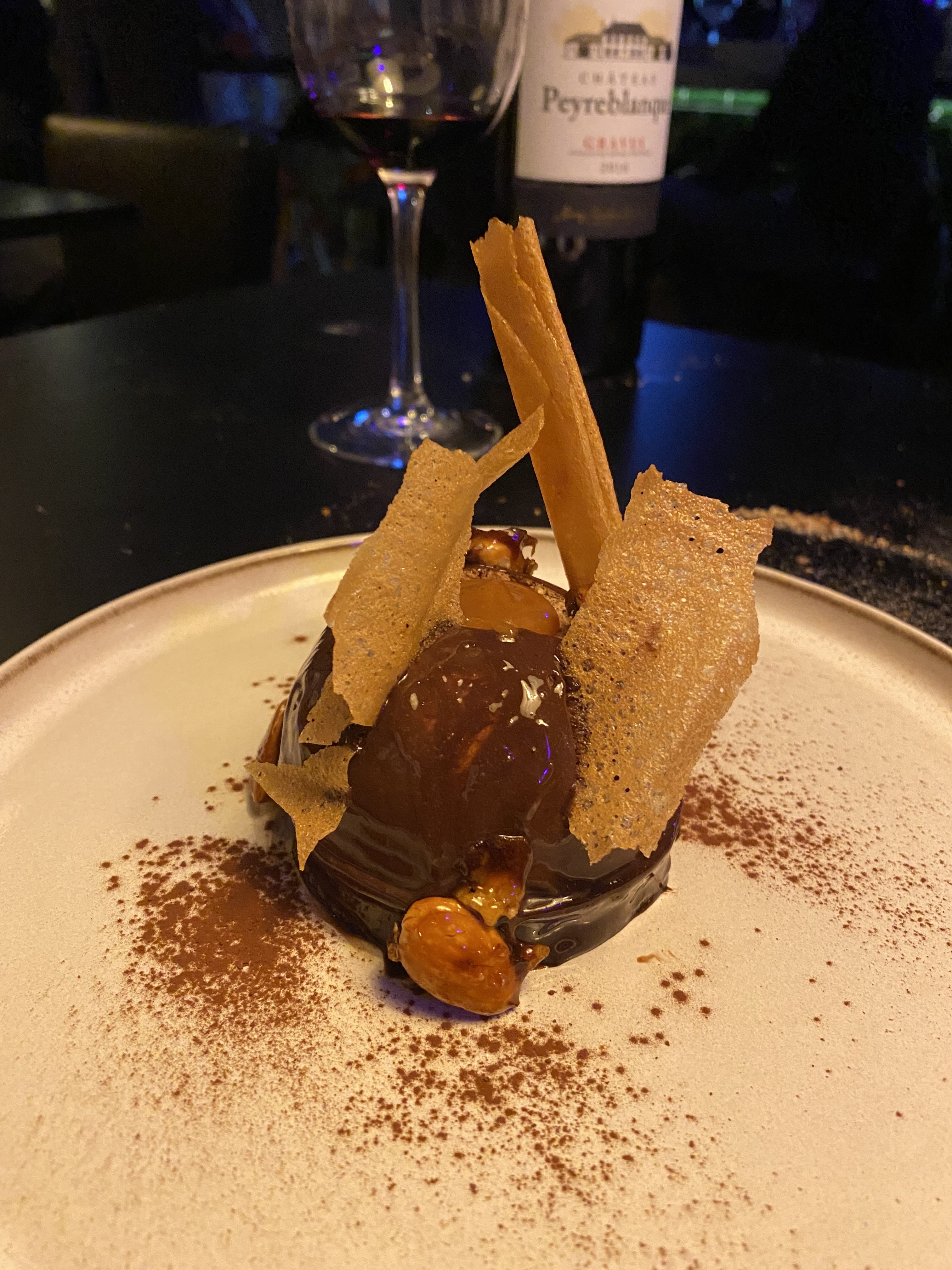 Un bistrot branché, apprécié des Bordelais, se transformant en bar en fin de soirée. Contrairement aux restaurants voisins, la nourriture était assez quelconque, peu savoureuse. La présentation est peu attractive. L'arôme, la texture et le goût étaient tous les trois pauvres, qu'il s'agisse du Turbot (filet meunière) ou du Filet de Bœuf. Le poisson était sec, la sauce desséchée et sans consistance. Le plat qui se présente comme une tarte aux pommes était constitué de pommes de terre, mais il était lui aussi très décevant. Le tourteau était réussi : yuzu râpé, radis et pommes granny smith. Je n'ai même pas pris la peine de prendre un dessert.