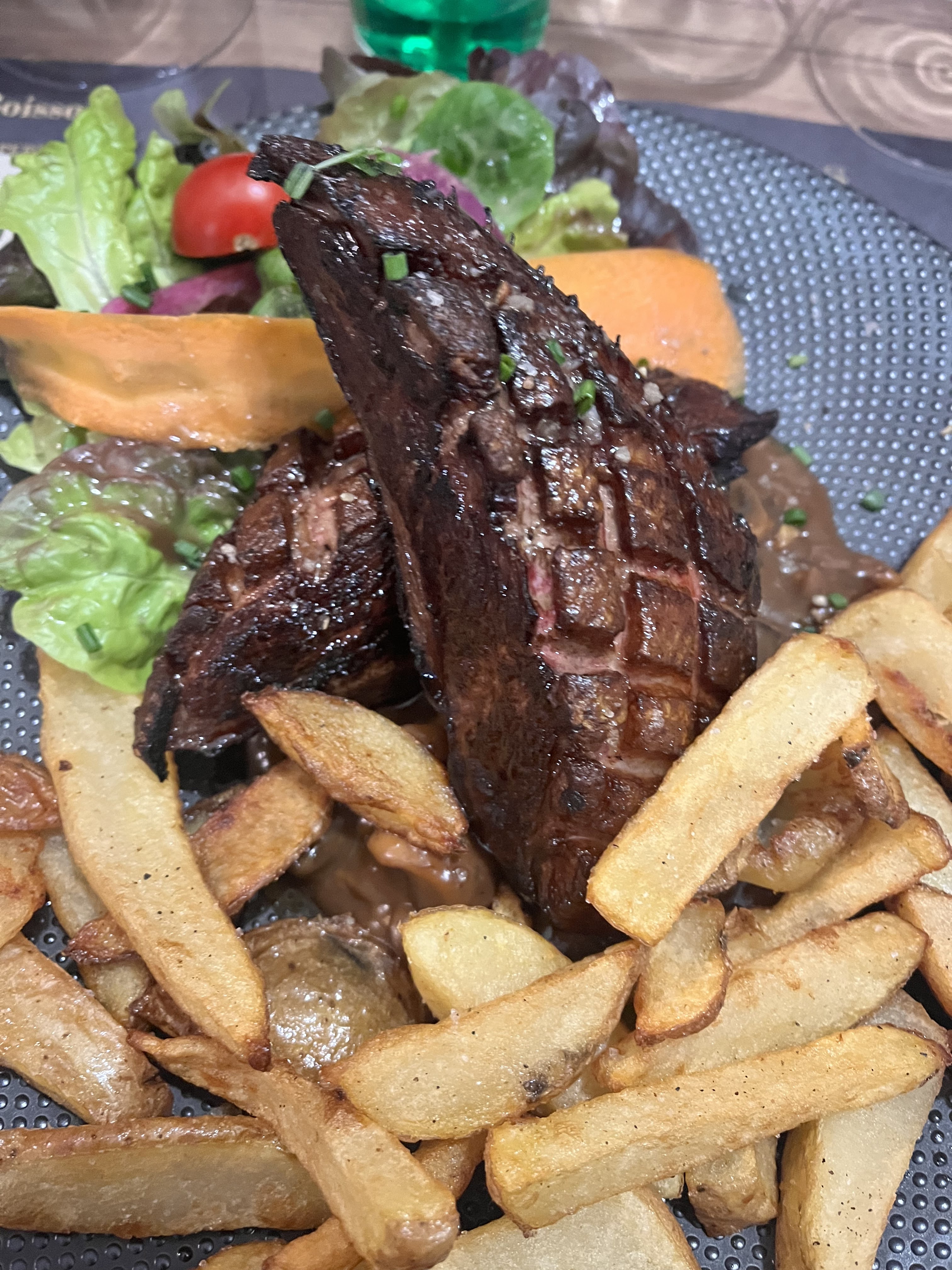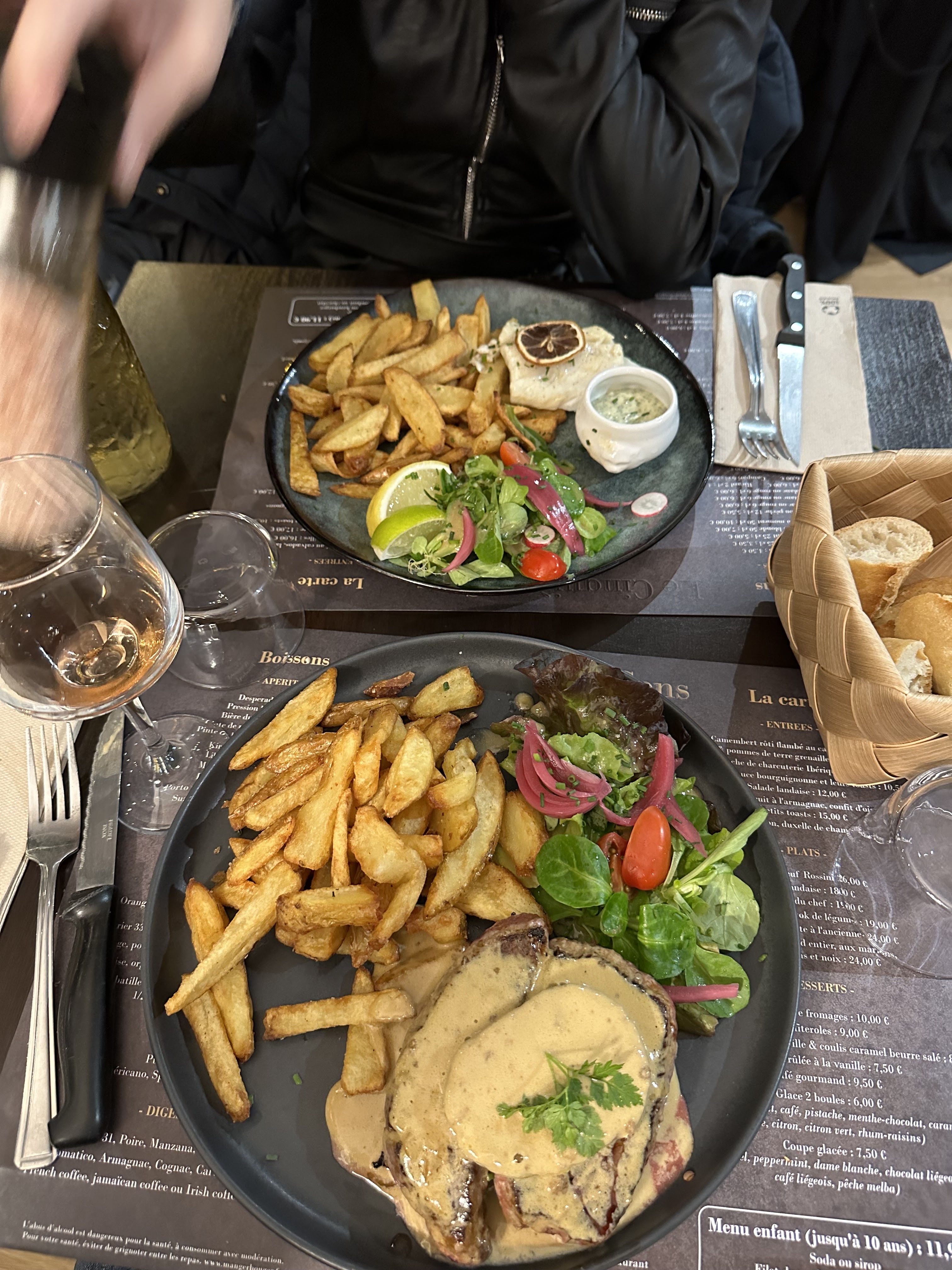 Endroit sympa et chaleureux, service impeccable. Malgré le monde, nous n'avons pas trop attendu. Assez bon rapport qualité prix. La sauce du magret était top 👌... j'ai pris un fondant chocolat aussi, il est coulant au cœur, vraiment bon 😍