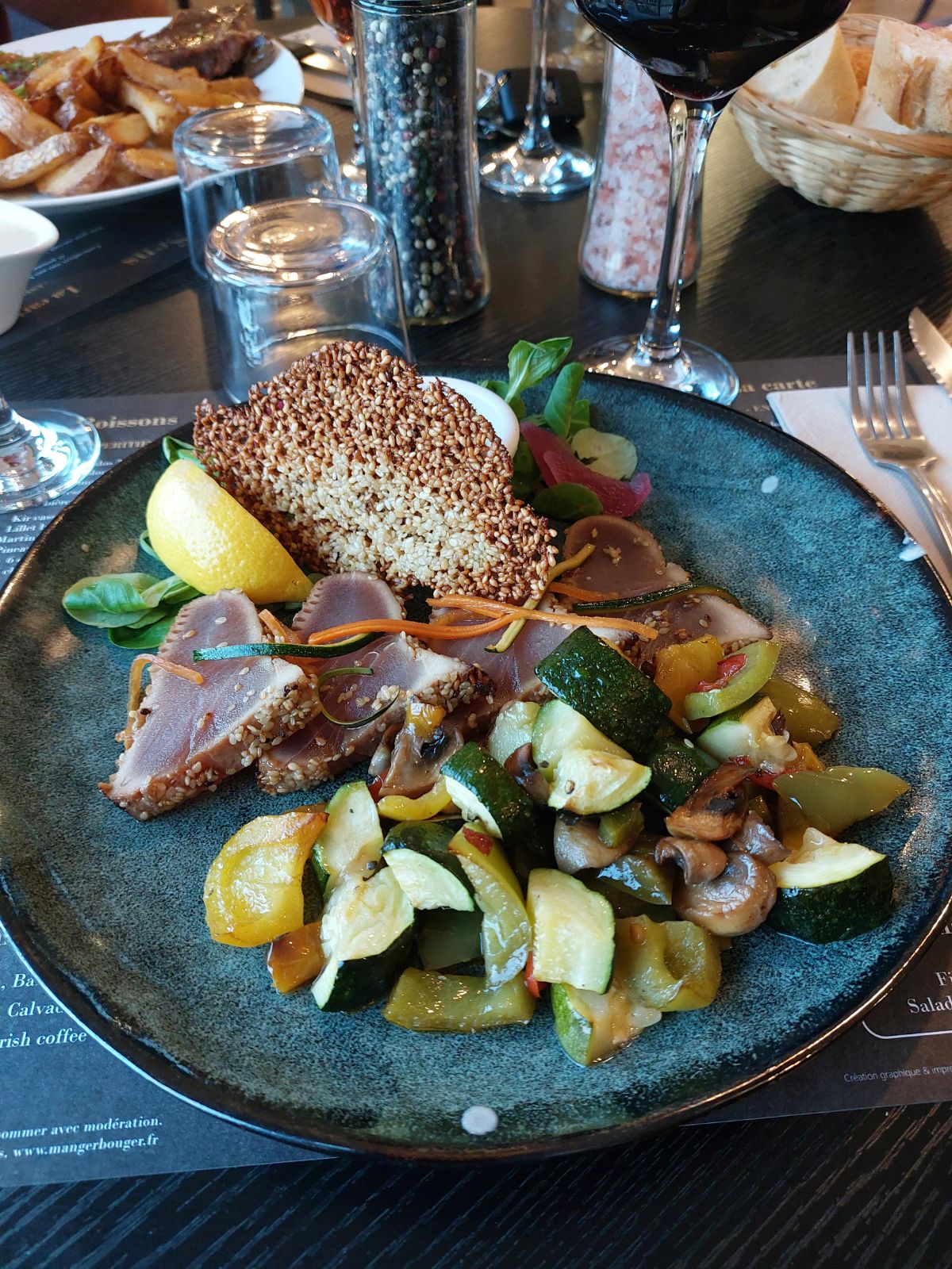 Beaucoup de plaisir à découvrir l'endroit et surtout la carte. Nous nous sommes régalés ! A titre personnel, j'ai adoré le magret (entier, hein, l'assiette est bien copieuse !) et mes camarades de table de même avec les différentes offres de poissons disponibles (le tataki est apparemment un délice entre autres !). Bref, hâte d'y retourner et un conseil aux curieux : réservez ! (histoire d'éviter de venir à l'improviste et de constater que c'est complet).