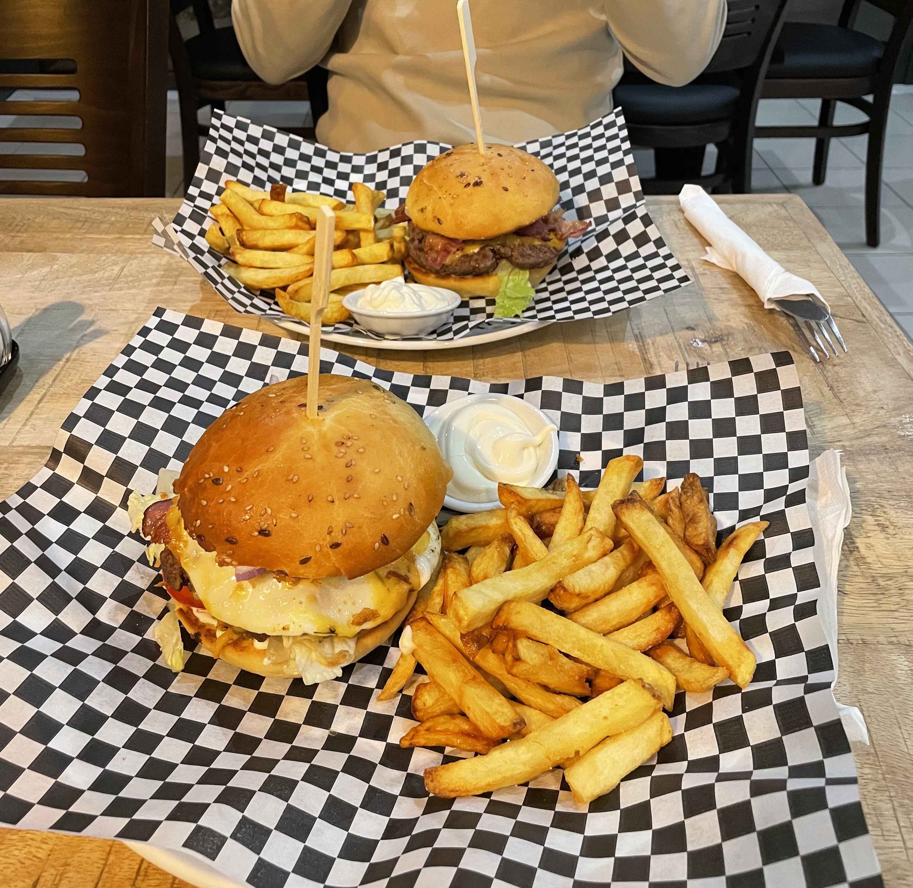 3 Motards. Arrivé le 25.06.23 (Dimanche) vers 13.25 pour une pause midi. Le chef nous acceuil simphat. Je demande s'il y avait encore moyen de boire et de manger quelque chose. Il me dit qu'il ferme a 13.30. la cuisine est fermée, mais nous pouvons boire quelque chose. Ok on commande les boisson.Le chef amène les boisson en nous disant qu'il pourrait nous faire des Cheesburger mais sans frites car le friteuse est dèja nettoyé. 8 minutes plus tard 3 jolie Cheesburger bien complet se présentent sur notre table et on s'y met a les savourer. Merci Chef pour votre engagement et votre proffessionalisme et au plaisir la prochaine fois