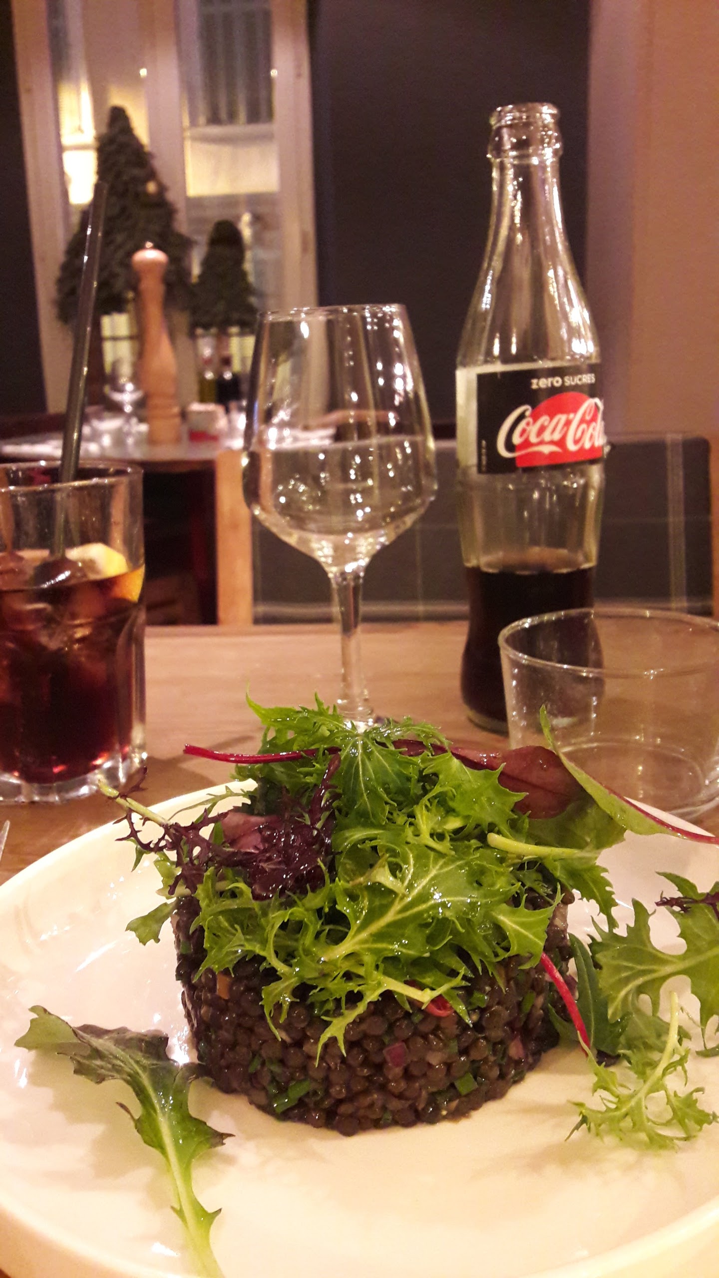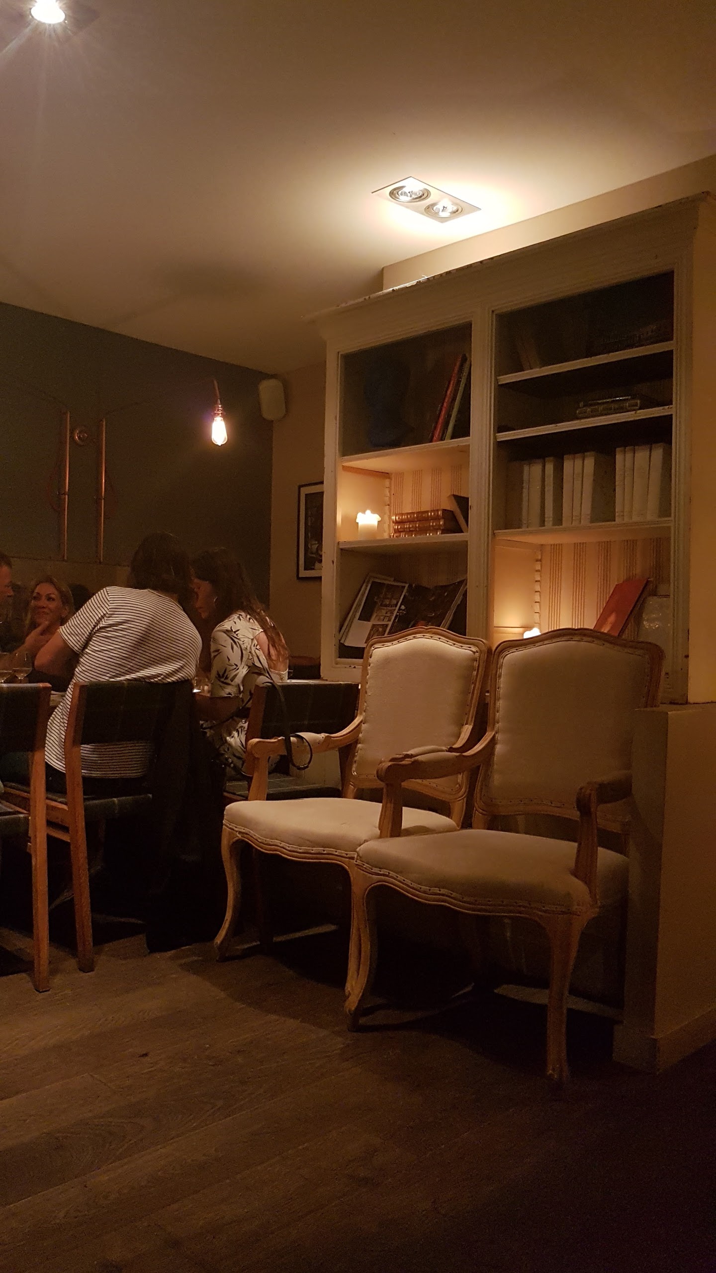 Une ambiance vraiment géniale (j'espère manger sur la table centrale un de ces jours :D) ! Des patrons efficaces et sympathiques. Une carte qui suit les saisons, et qui est maitrisée. Un excellent rapport qualité prix ! Pour patienté on nous a amené des petits champignons délicieux ! assaisonnés comme il faut et encore fermes comme je les aime ! Nous avons partagé des entrées avec nos amis : rillettes de sardines (miam !), salade d'endives noisettes figues chèvre (assaisonnement au top !) et foie gras (un tout petit peu jeune). J'ai testé la côte de boeuf de mon mari, à se rouler par terre tellement elle était tendre et délicieuse ! Mon tartare au couteau, un régal ! (avec le petit lit de copeaux de parmesan... Mmmmmmm !) Et pour couronner le tout, les desserts sont aussi bien maitrisés que le reste ! Tarte citron meringuée, croquant praliné chocolat, crème de marron et baba au rhum.. On s'est aussi partagé les desserts :D Bref, je recommande vraiment chaudement cette adresse !