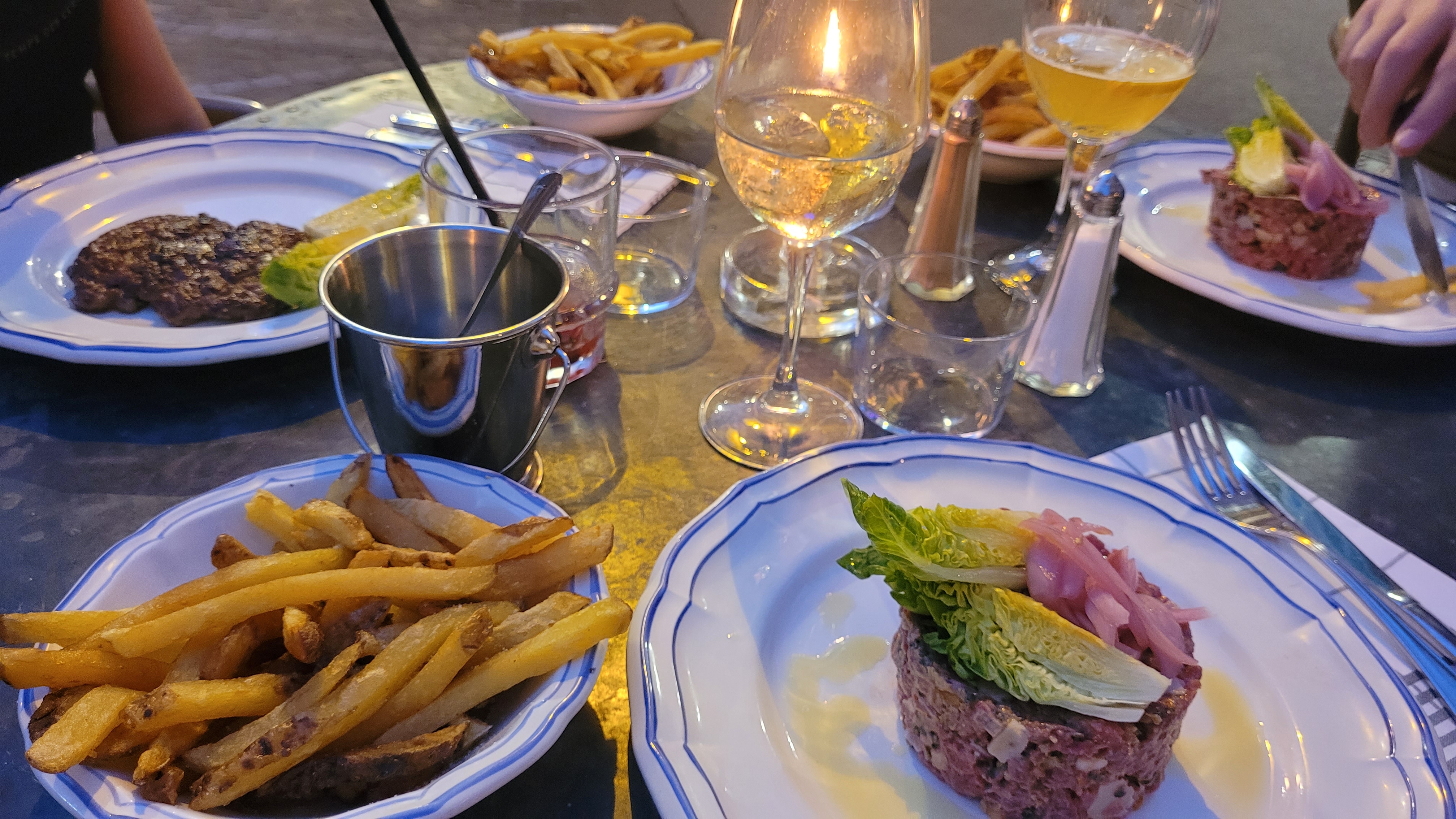 Super endroit pour manger un petit lunch (bussiness) ou pleasure avec ou sans soleil! Service très sympa, rajoute du vin quand ils ont le temps et sont très attentif en sympathique. Je conseille très fortement le tartare🥂