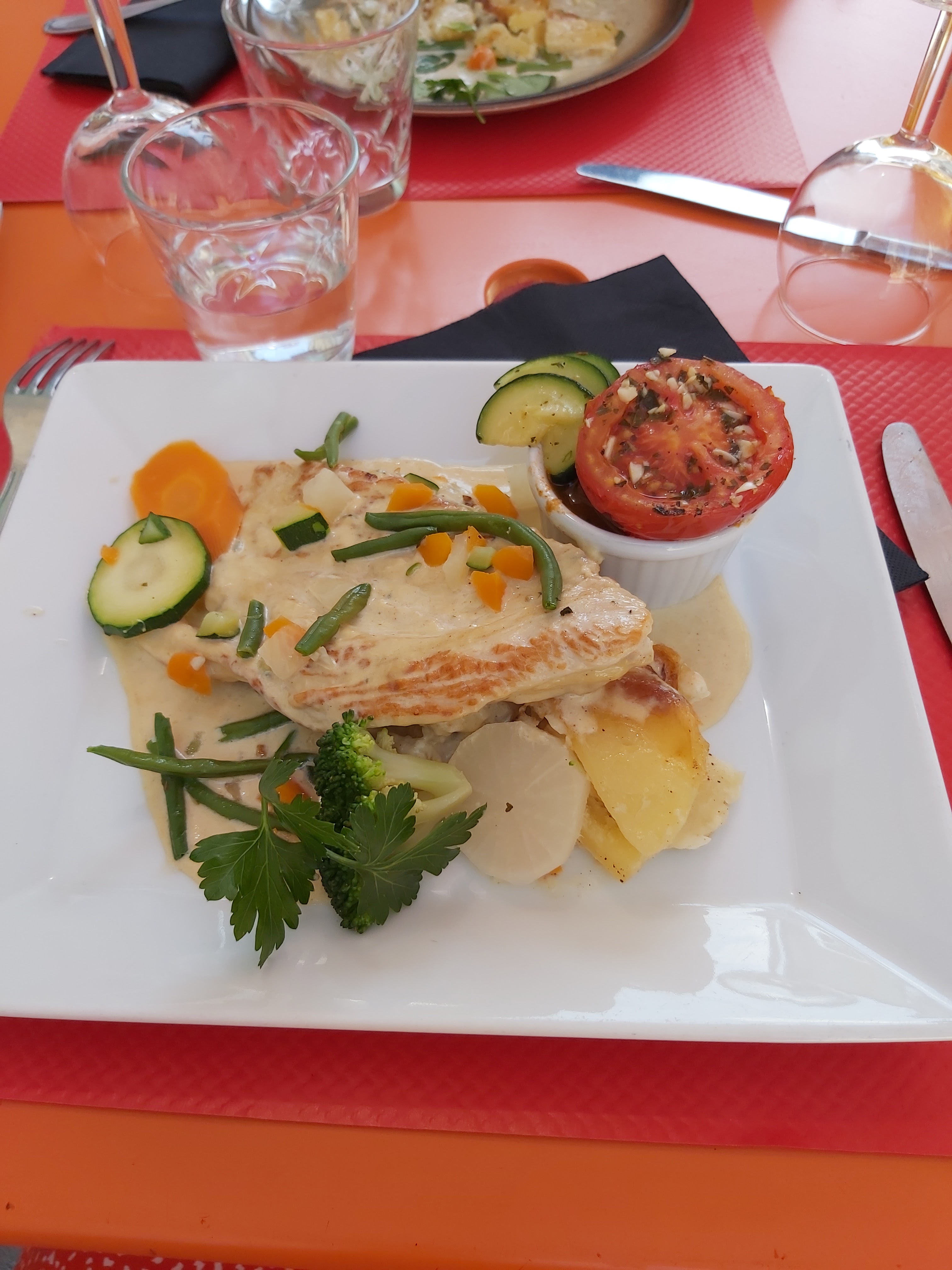 Très bien reçu, servi très vite chose très appréciable et surtout cuisiné vraiment bon comparer aux autres restaurants aux alentours . Produit frais très important à souligné plat fait sur planche limitant les choix et donc permettant une meilleure qualité de produit. À essayer vous ne serez pas déçu