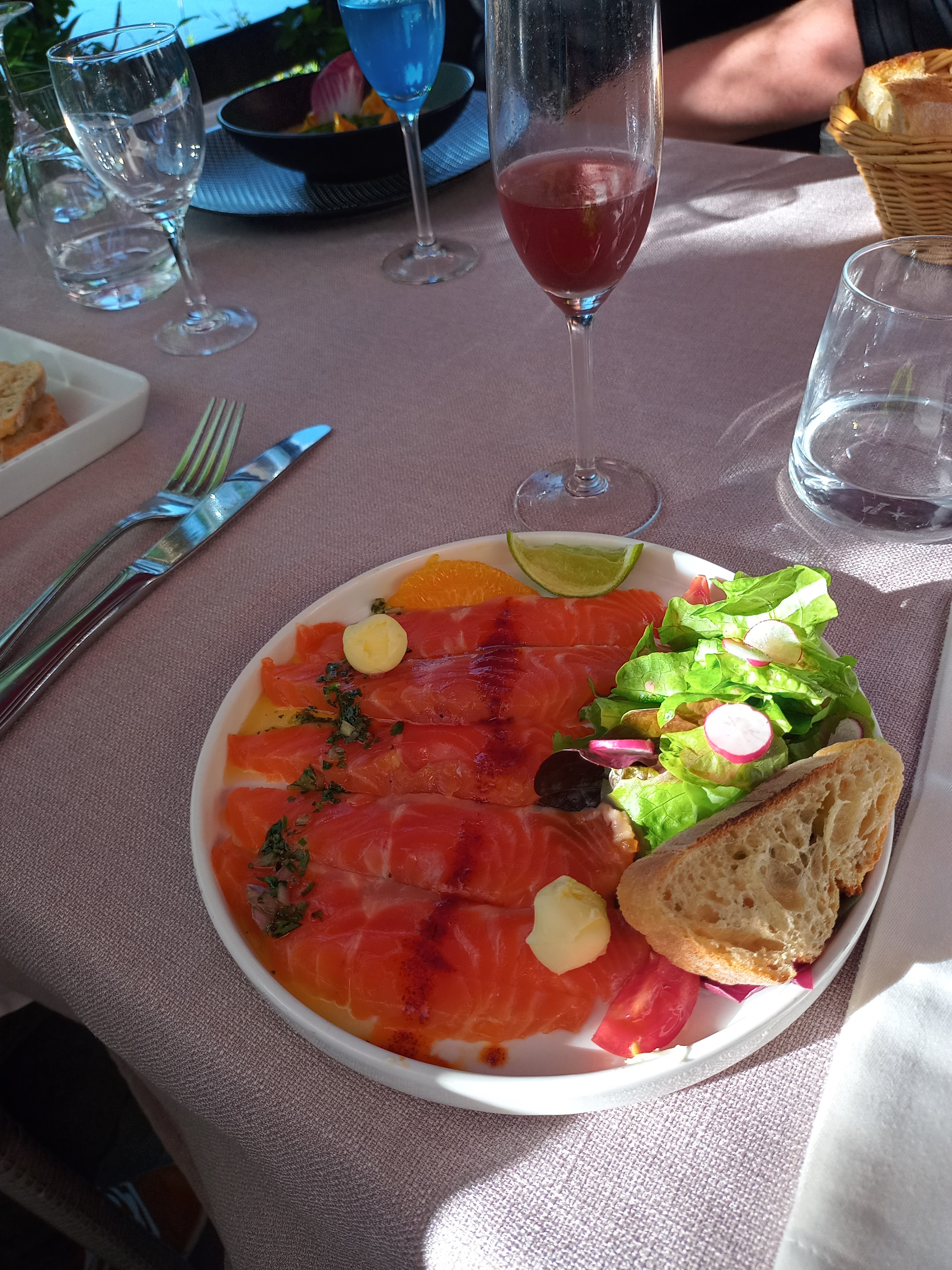 Un déjeuner en terrasse mi-octobre : un cadre superbe, des plats raffinés. Cuisine gastronomique donc ne pas s'attendre à des assiettes qui débordent. Tout était délicieux. Dernier petit détail : ils proposent une carte des cafés.