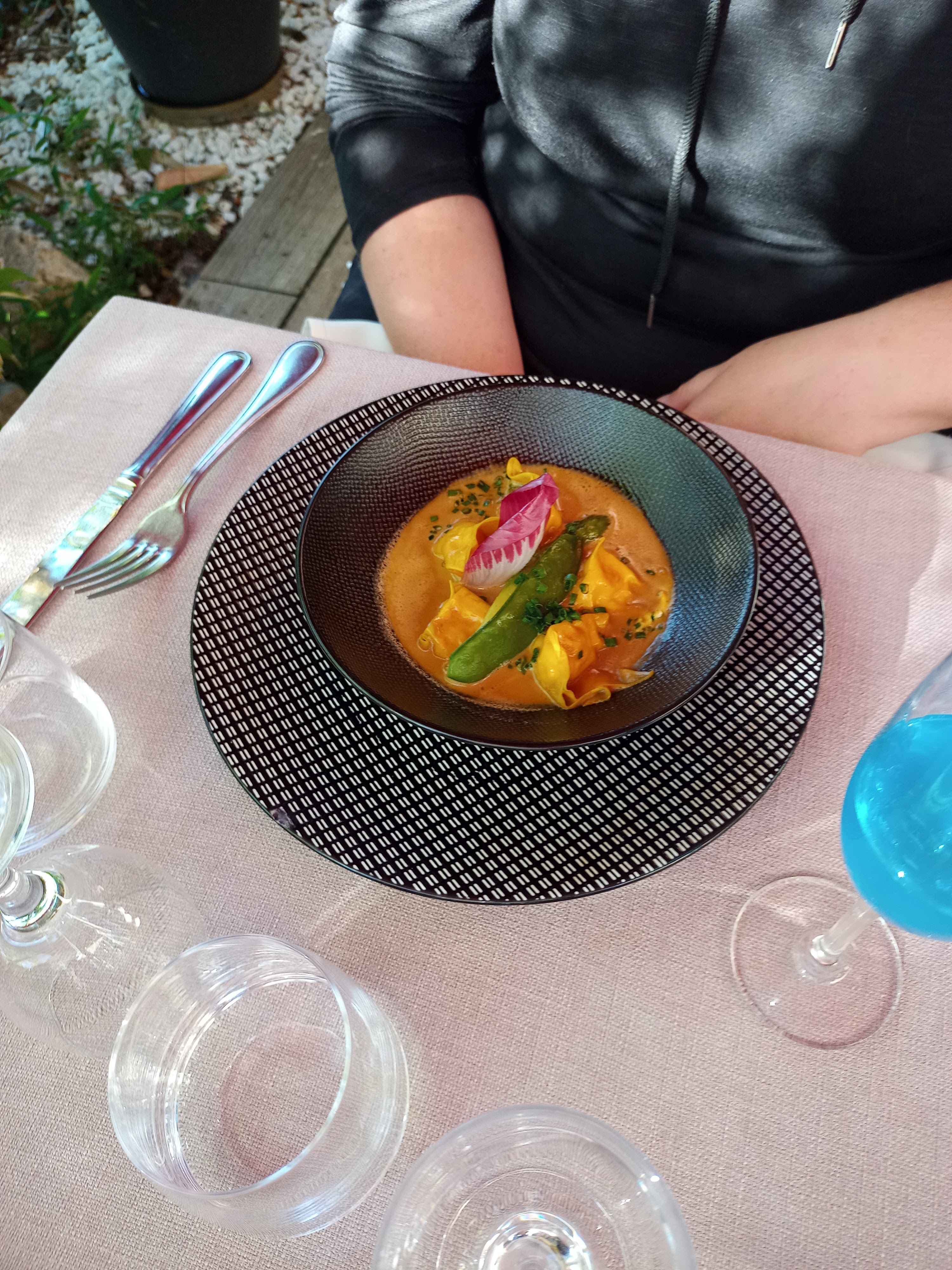 Une très très belle découverte. Une cuisine raffiné dans un lieu magnifique mais où on se sent bien. Des serveurs présents mais pas trop tôt en simplicité. J'ai passé un très bon moment et je me suis régalée. Merci