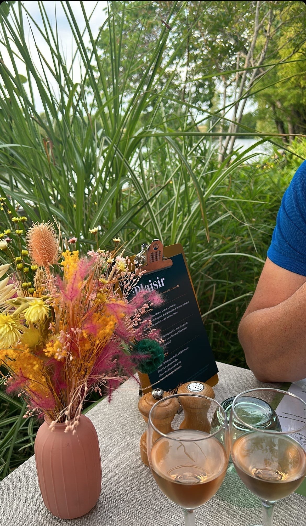 Superbe expérience. Une table à deux près de l'eau, plusieurs menus disponibles. Nous avons choisi le menu Plaisir entrée plat dessert à 26€ et un verre de Chateauneuf du Pape à 13€. Un pur régal. Tout est fait maison bien sûr, le service est efficace (un peu mécanique au début). Une soirée réussie.