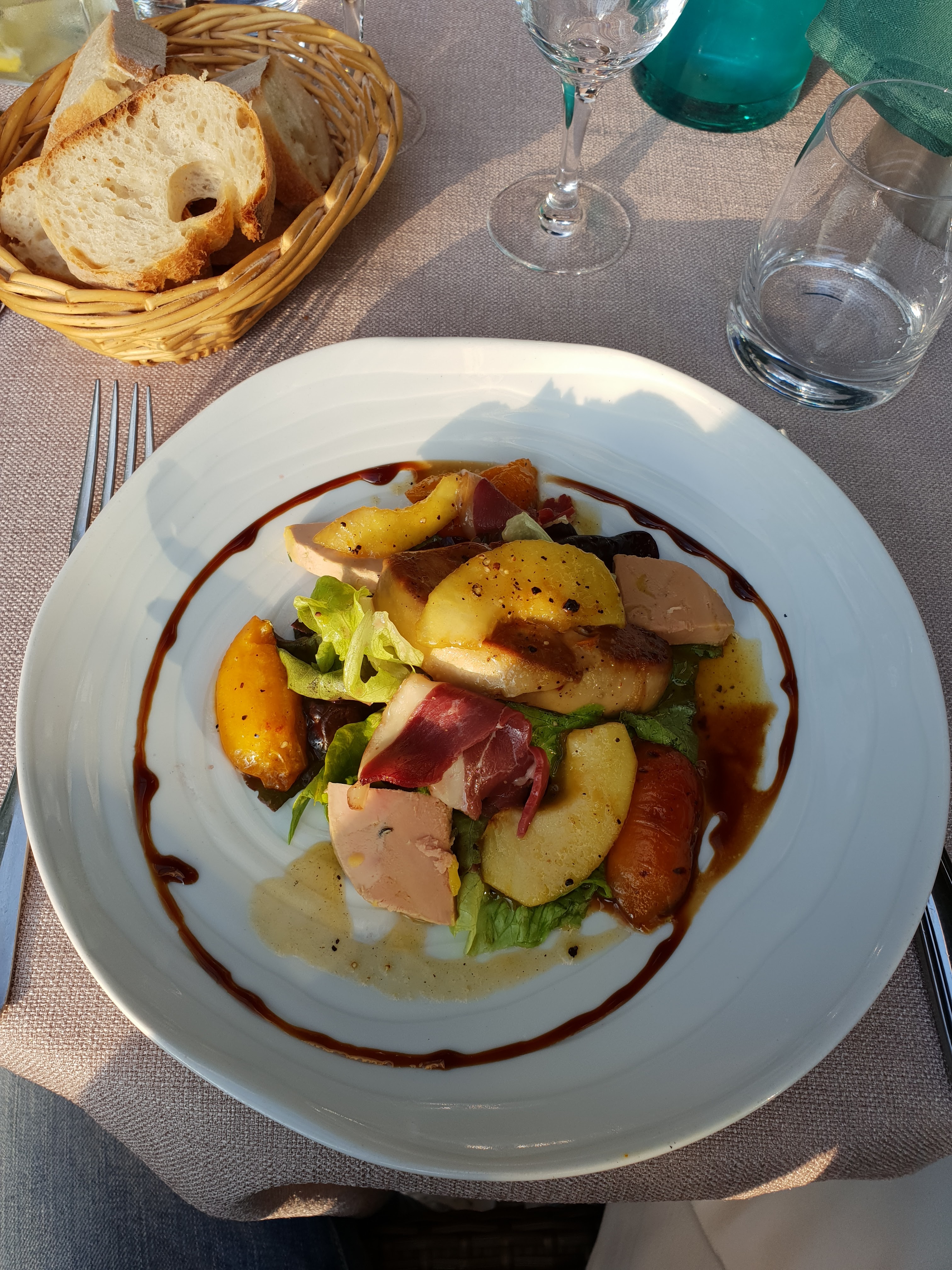 Cadre agréable en extérieur Mauvais rapport qualité prix, et surtout quantité prix. On ressort avec la faim. Beaucoup de suppléments sur les menus... Excellent foie gras mais mal accompagné, dommage. L’idée est là mais l’exécution n’y est pas :/