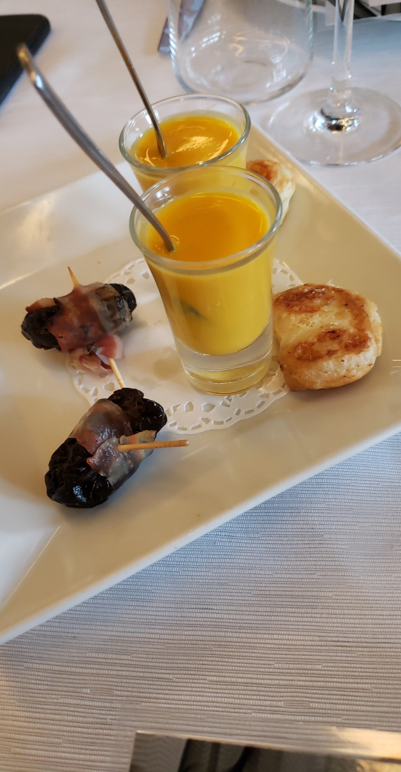 Je recommande ce restaurant pour sa bonne cuisine et ses saveurs, de petites critiques comme une sauce un peu trop liquide à mon goût pour la beuchelle (ou peut-être à disposer dans l'assiette autrement), un soufflé grand-marnier très légèrement mousseux encore, une lotte légèrement trop cuite qui aurait dû rester nacrée mais ce sont de simples détails qui ne remettent en question les goûts, un personnel professionnel réactif et très sympathique, une terrasse bien aménagée et un intérieur classe même si l'extérieur fait partie de l'architecture pouvant faire penser au délire des années 70/80. Je recommande vivement cet établissement 👍