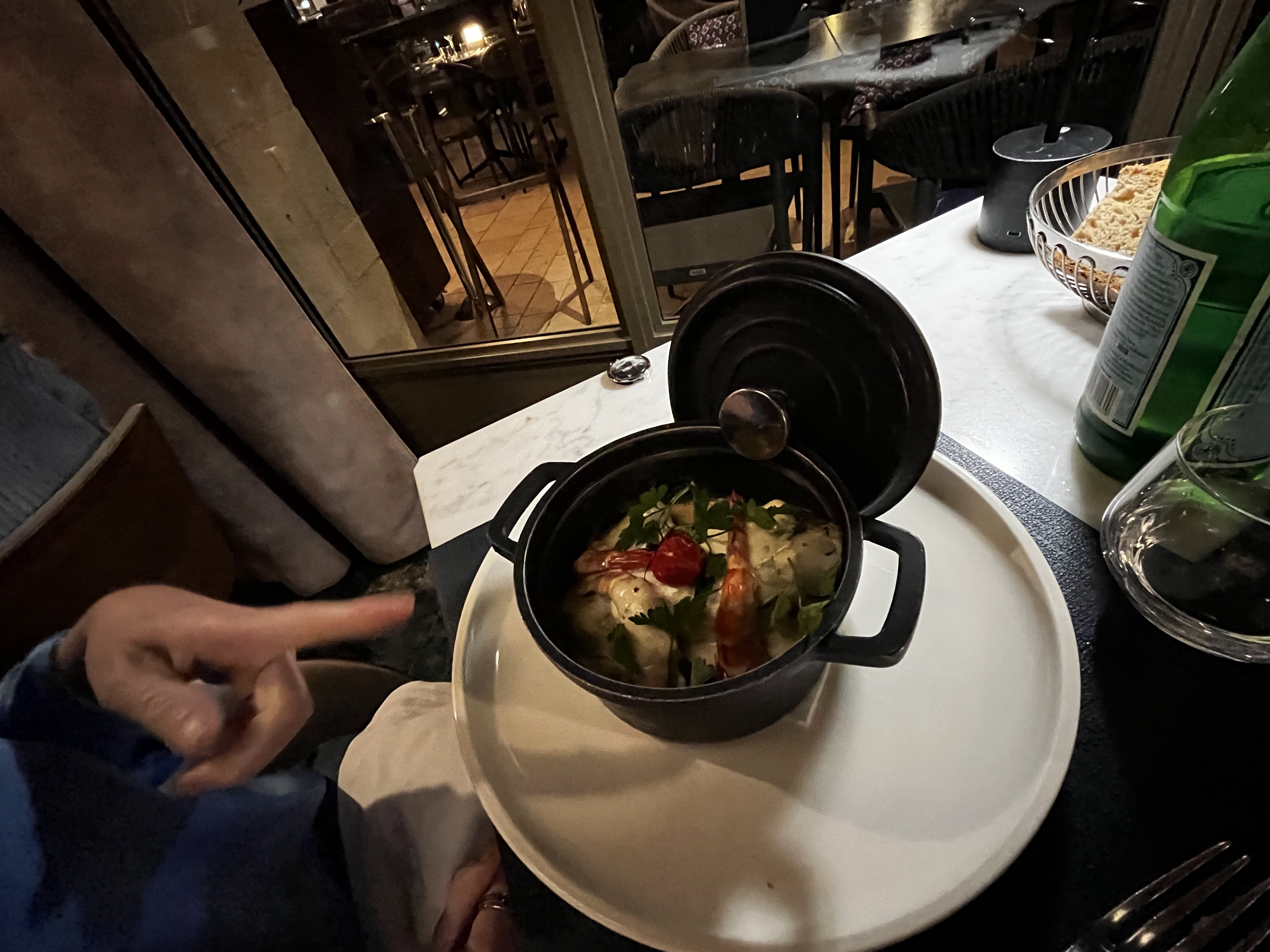 Il y a une multitude de restaurants à proximité de notre hôtel mais j'avais envie de poisson. Je suis tellement content que nous soyons tombés sur cet endroit car nous étions très satisfaits de la nourriture. Le poisson était frais et parfaitement cuit et le vin était tout aussi délicieux. Le service était excellent. C'était un peu cher mais ça vaut le coup pour la qualité de la nourriture, l'ambiance et l'excellent service (vraiment arrangeant avec un petit bambin grincheux).