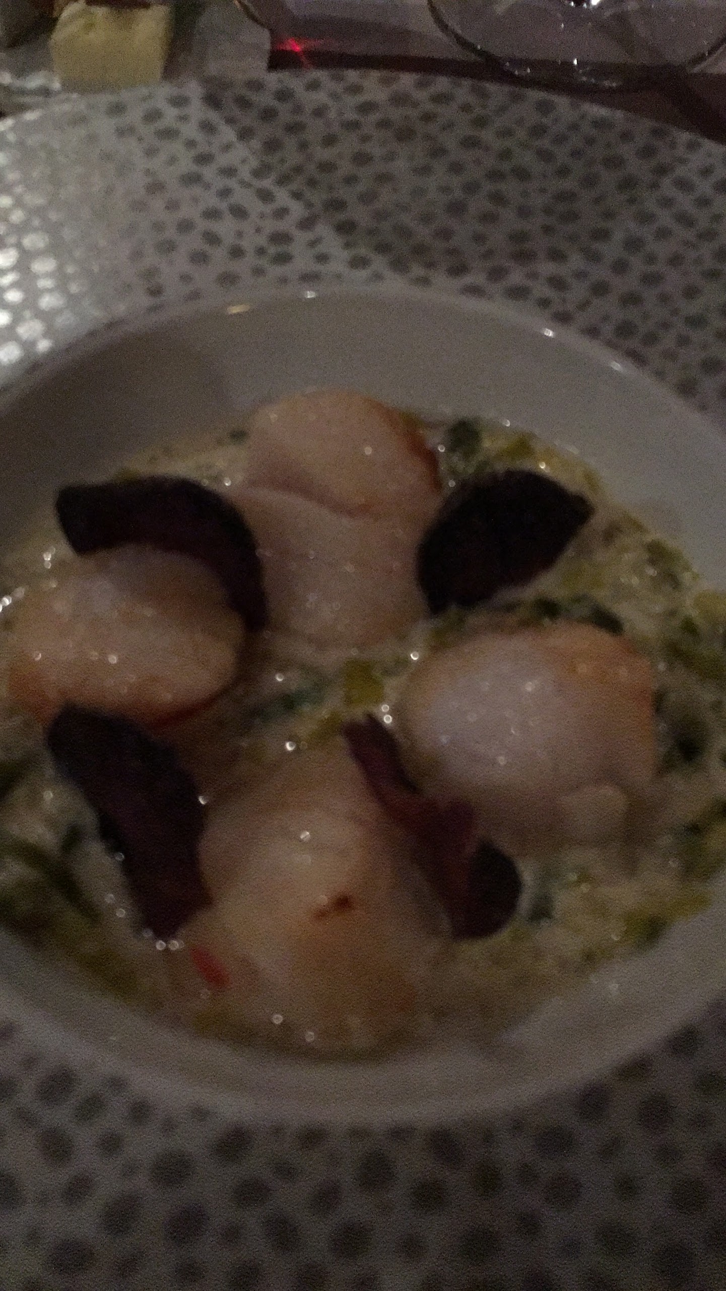 Pétoncles et côtes levées 👌🏾Excellente cuisine et vins - réservez d'abord.