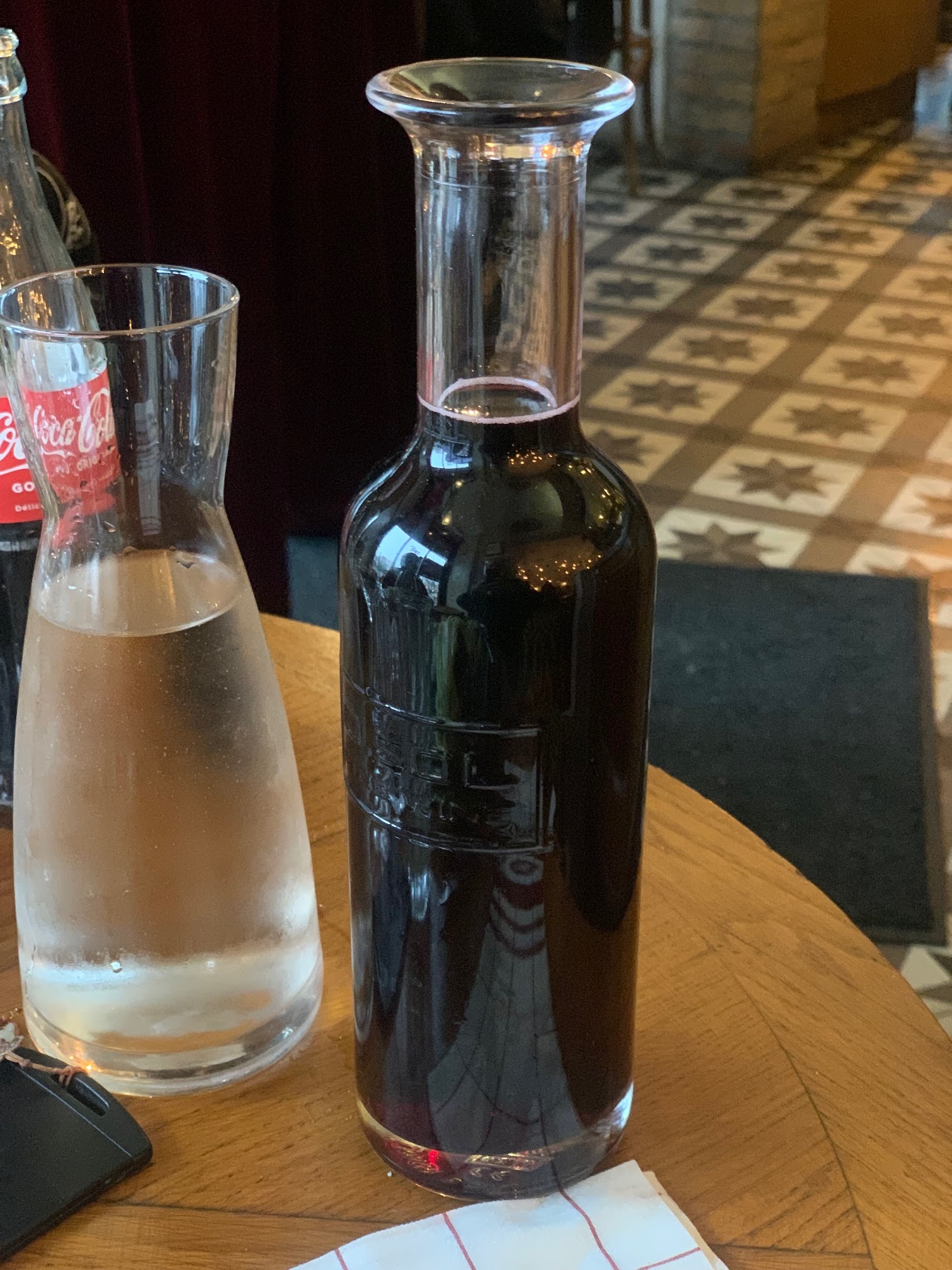 Plat très moyen 18€ un peu cher Bon vin Emplacement, distribution des tables « nul »