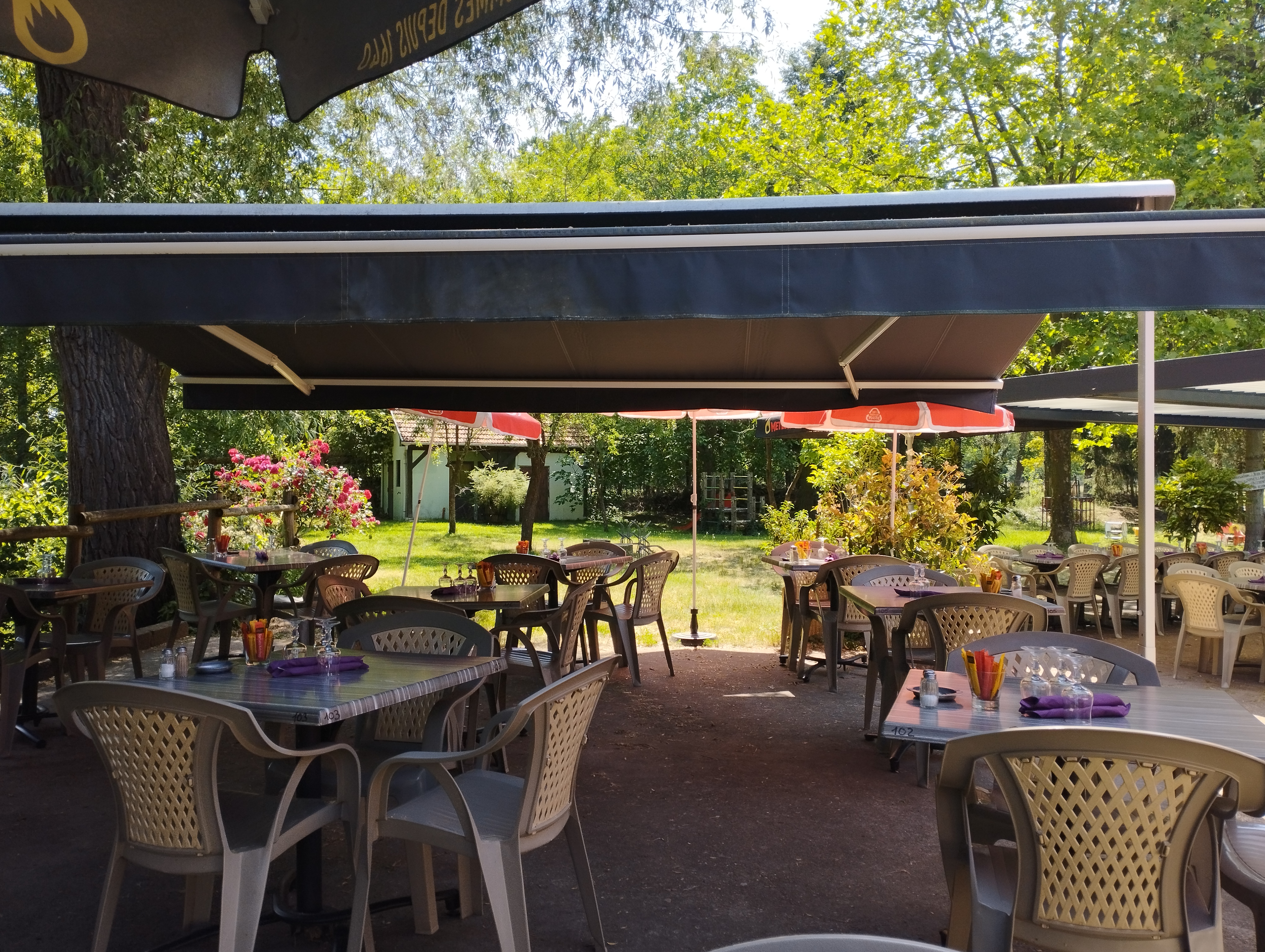 Très bon restaurant, belle terrasse, verdure à volonté avec petit parc pour les petits . Au calme et parking . Accès pour les personnes à mobilité réduite. On peut venir que se désaltérer, mais en dehors des heures du repas , sinon , il faut manger ,car il est souvent complet .